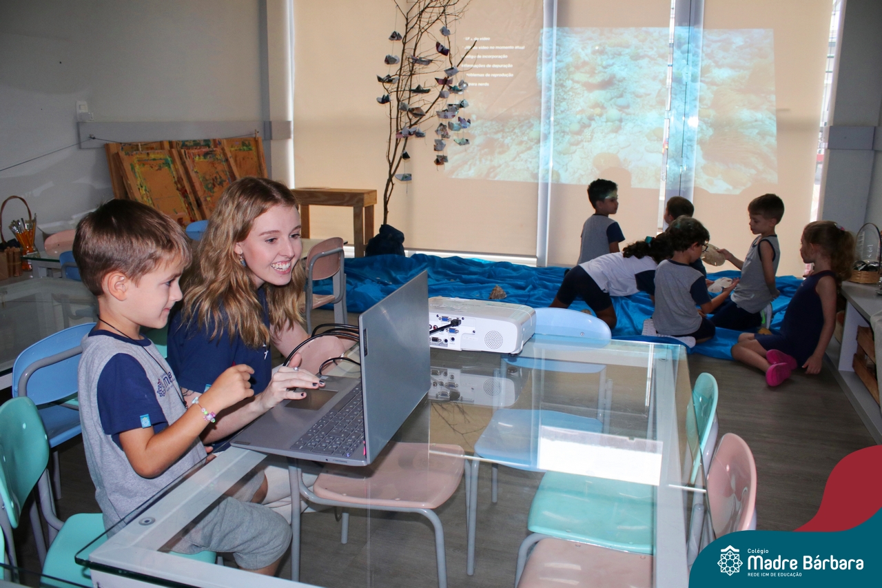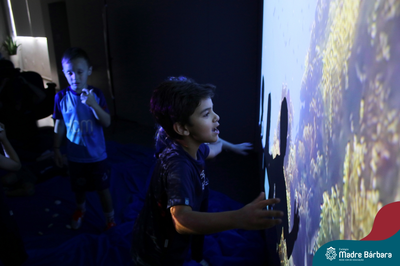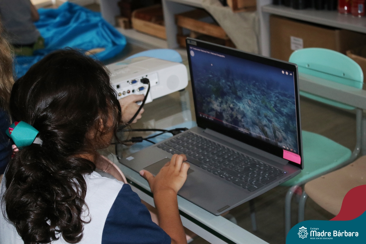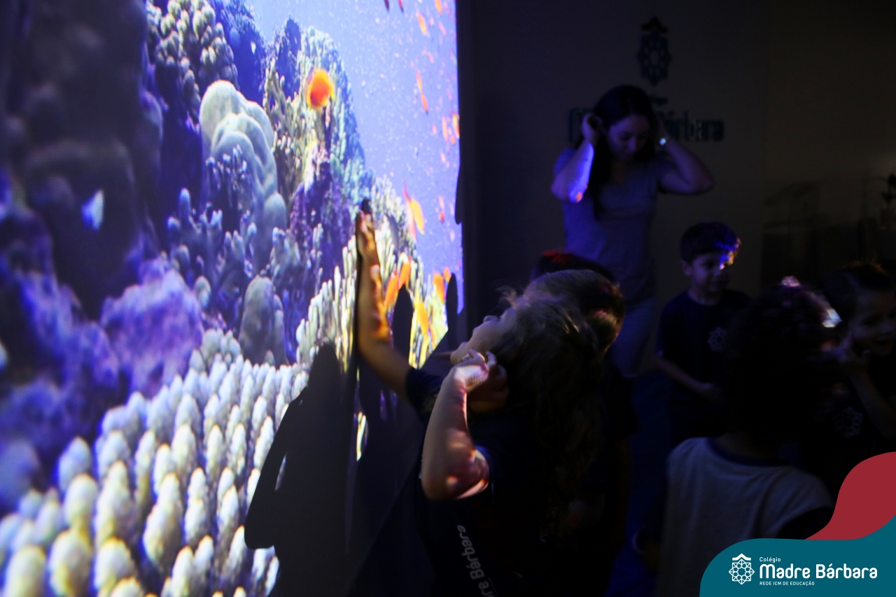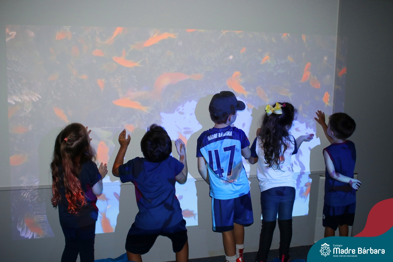 As crianças do Nível 5D foram convidadas a experienciar, sentir e ouvir os encantos do mar a partir do interesse que surgiu após algumas vivências do projeto de acolhida.