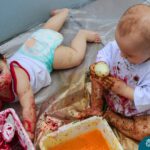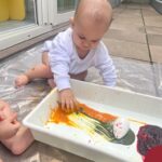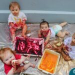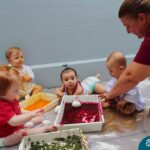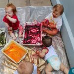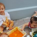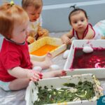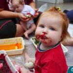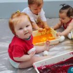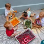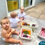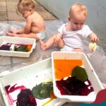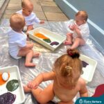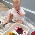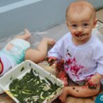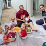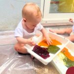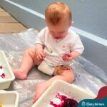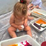 Os bebês do Nível 1A ficaram responsáveis pela pintura das casquinhas dos ovos que estão decorando a árvore em frente à sala. A produção contou com muita alegria, integração, contato, textura e uma delícia de sabores! Com “tinta natural”, os bebês puderam explorar as cores e experimentar a tinta de cenoura, beterraba e de erva-mate.