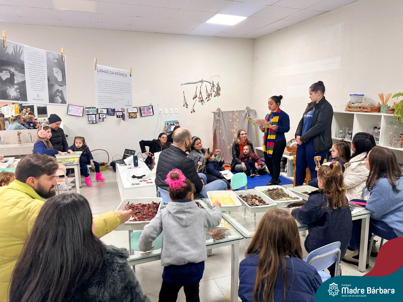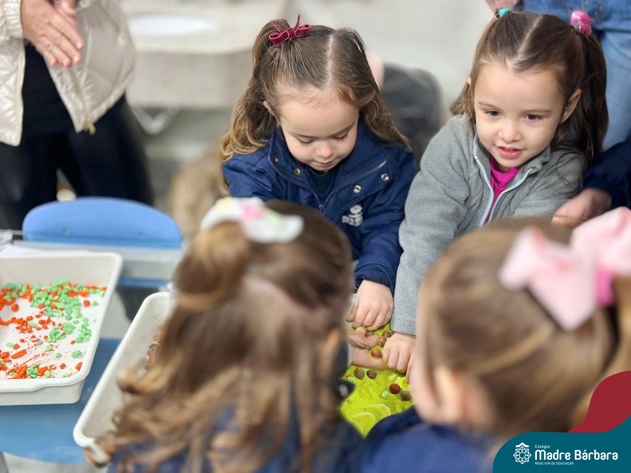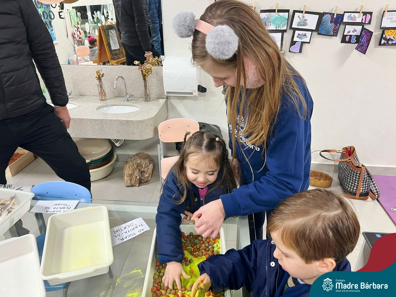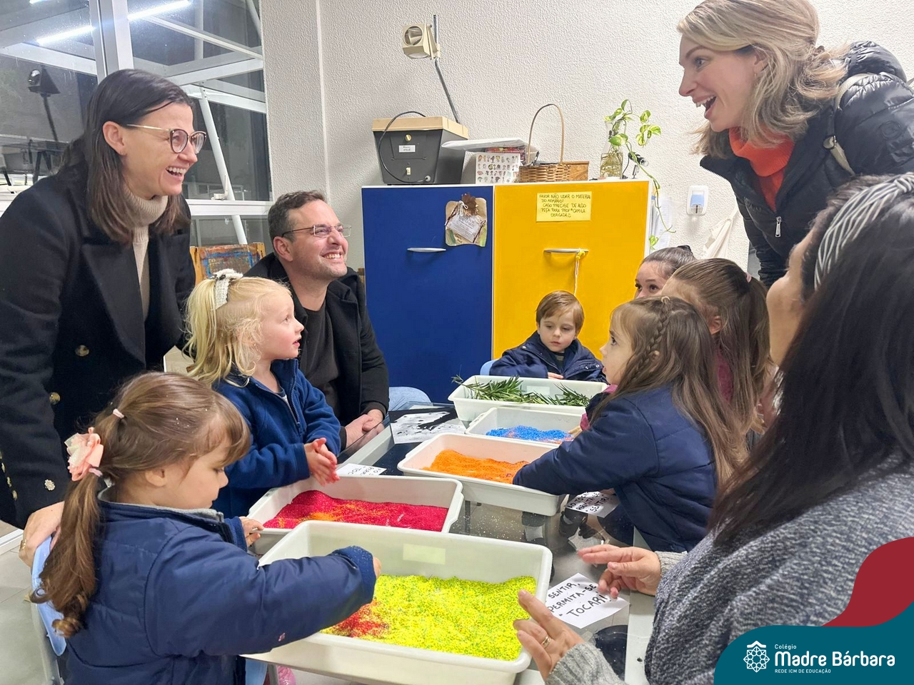 Na quinta-feira (03.07) um momento cheio de sensações e afetos foi vivenciado no Nível 3C a partir do projeto “Arte na Palma da Mão”. Famílias e crianças exploraram materiais sensoriais que fizeram parte das descobertas do projeto e, ao final, se emocionaram com a história “O Menino que Via com as Mãos”. Um encontro para sentir, tocar e ser tocado… com arte, amor e presença.