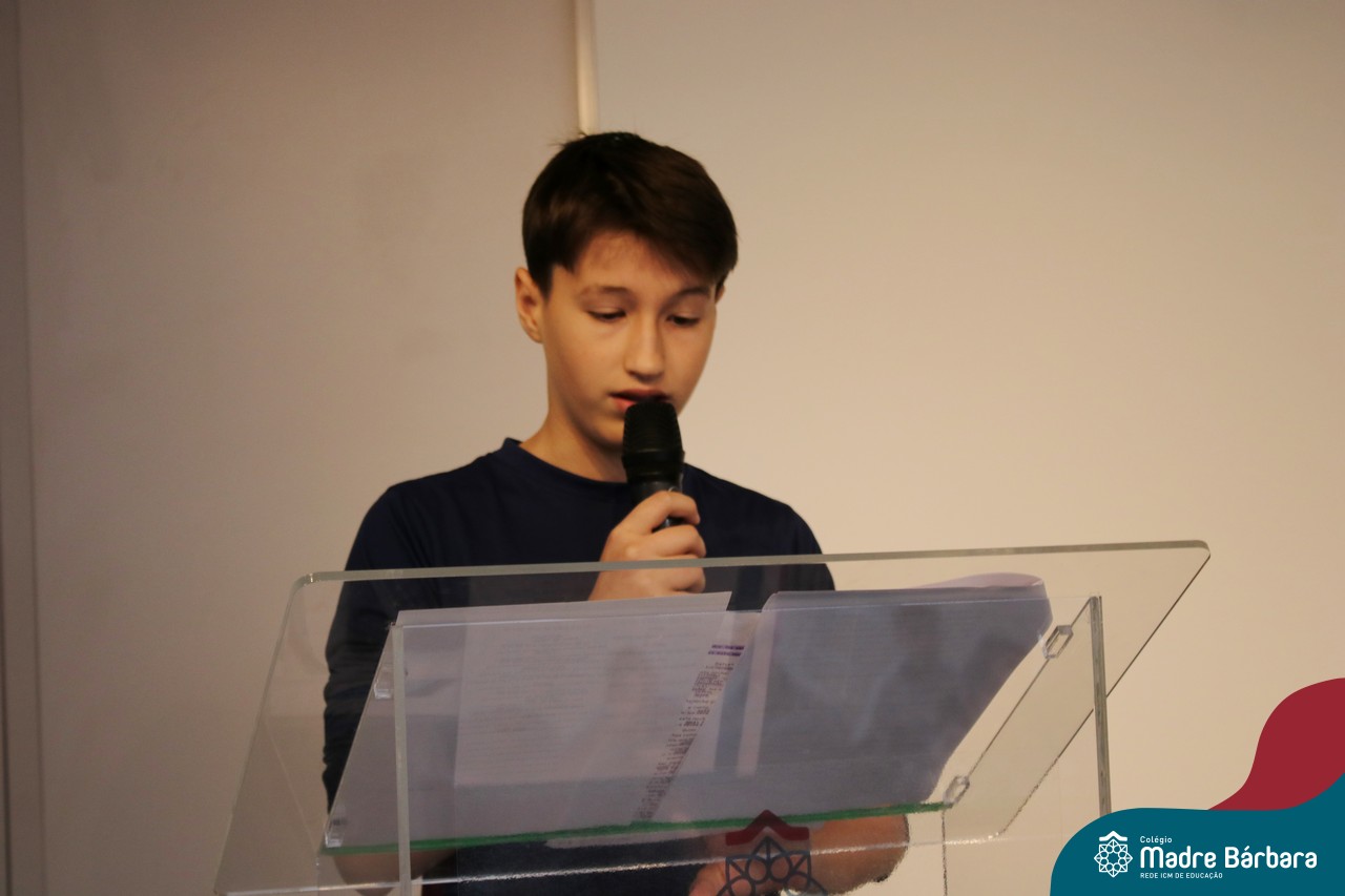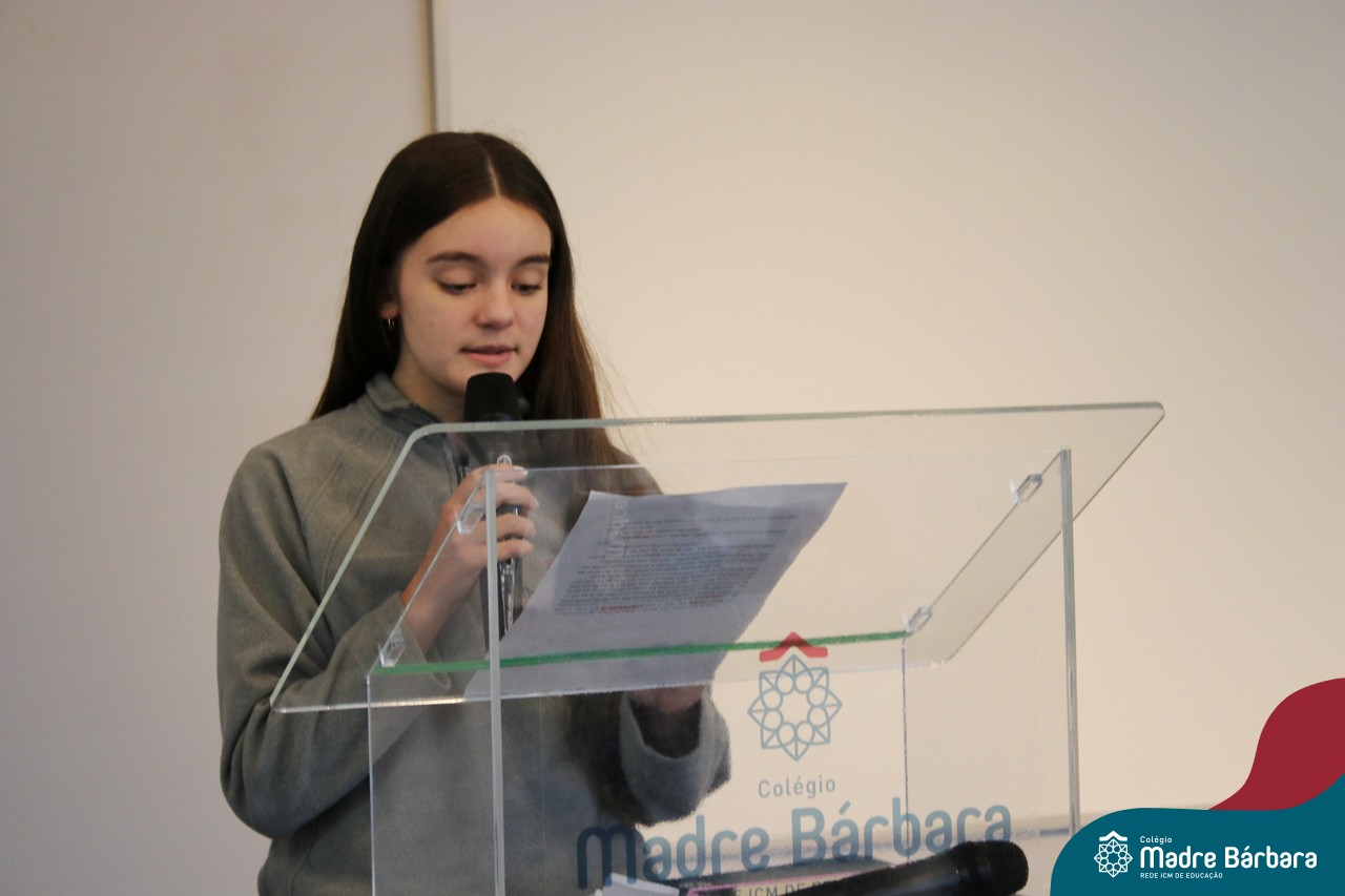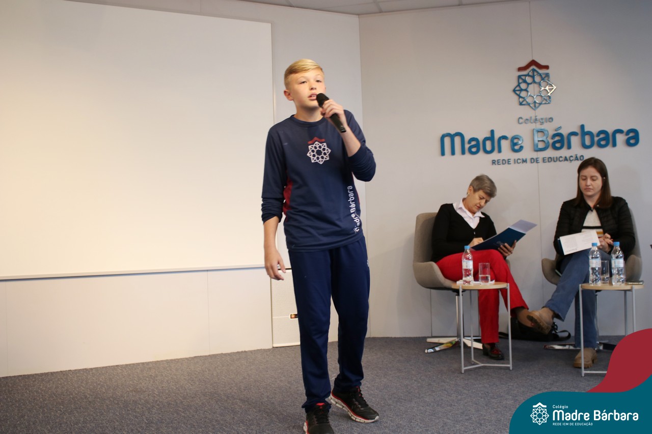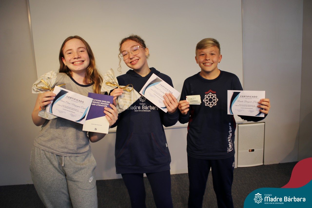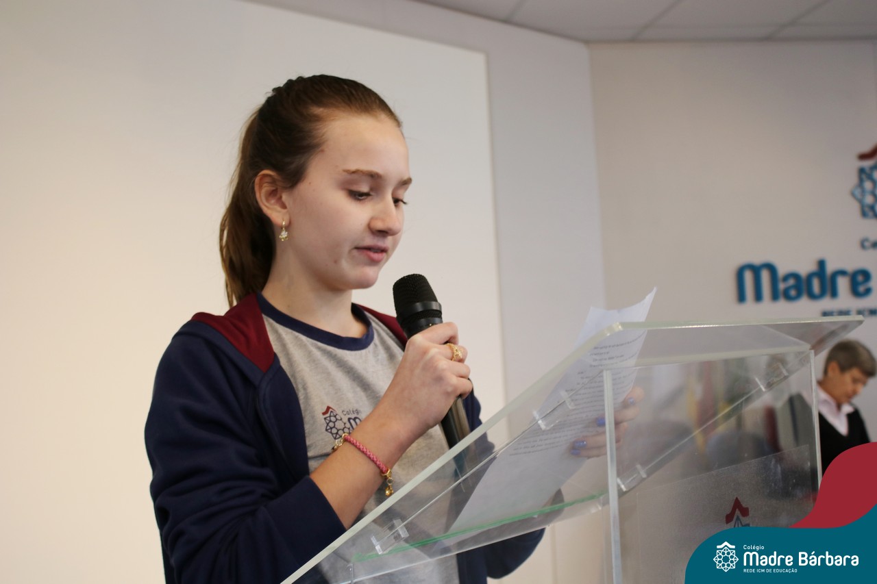 Sabendo da importância de valorizar a prática de oratória e leitura, que são de extrema importância para o desenvolvimento dos alunos, tanto no âmbito acadêmico quanto pessoal, ocorreu, na manhã desta sexta-feira (25.08) o VI Concurso de Leitura em Línguas Espanhola e Inglesa para os alunos dos 8ºs e 9ºs anos e o II Recital de Poesias em Língua Portuguesa e Inglesa, para os alunos dos 6ºs anos. O evento contou com a participação de jurados externos, os quais o Madre Bárbara agradece o apoio e dedicação. Parabéns as professoras Beatriz Freire, Carolina Werlang e Franciele Winck.