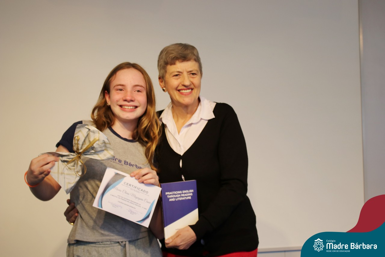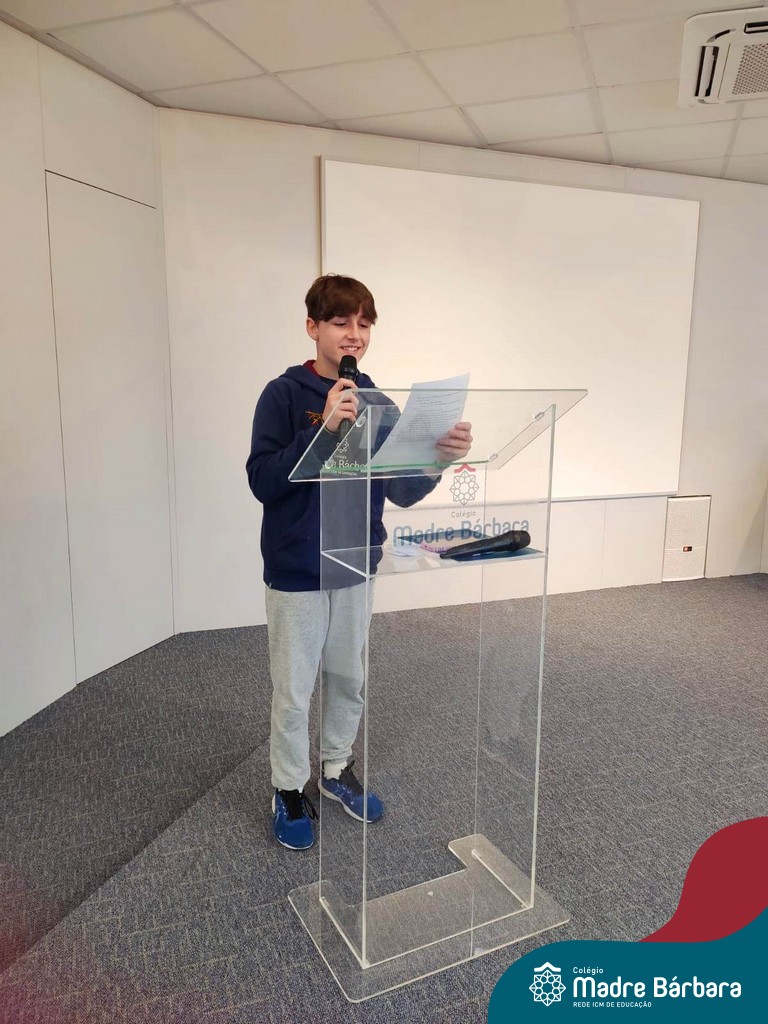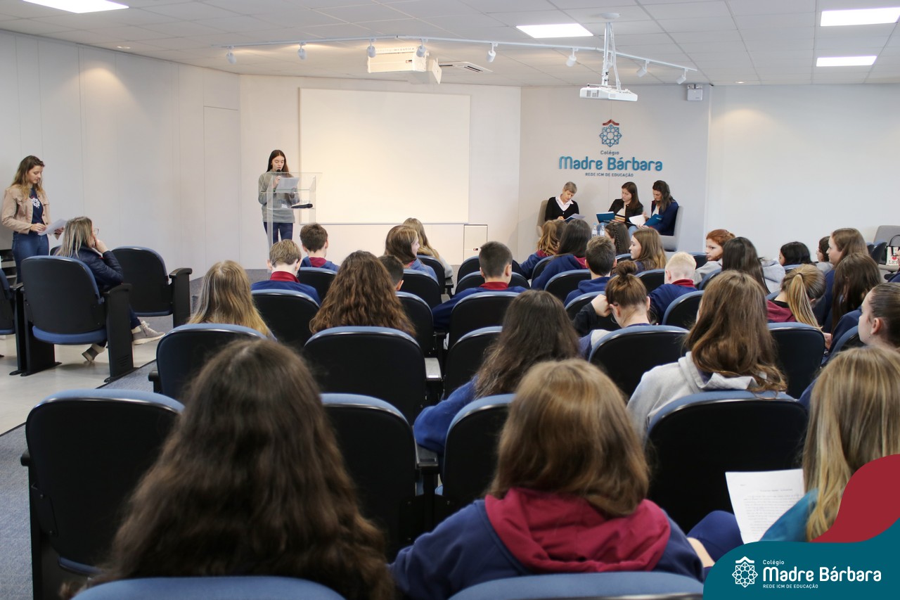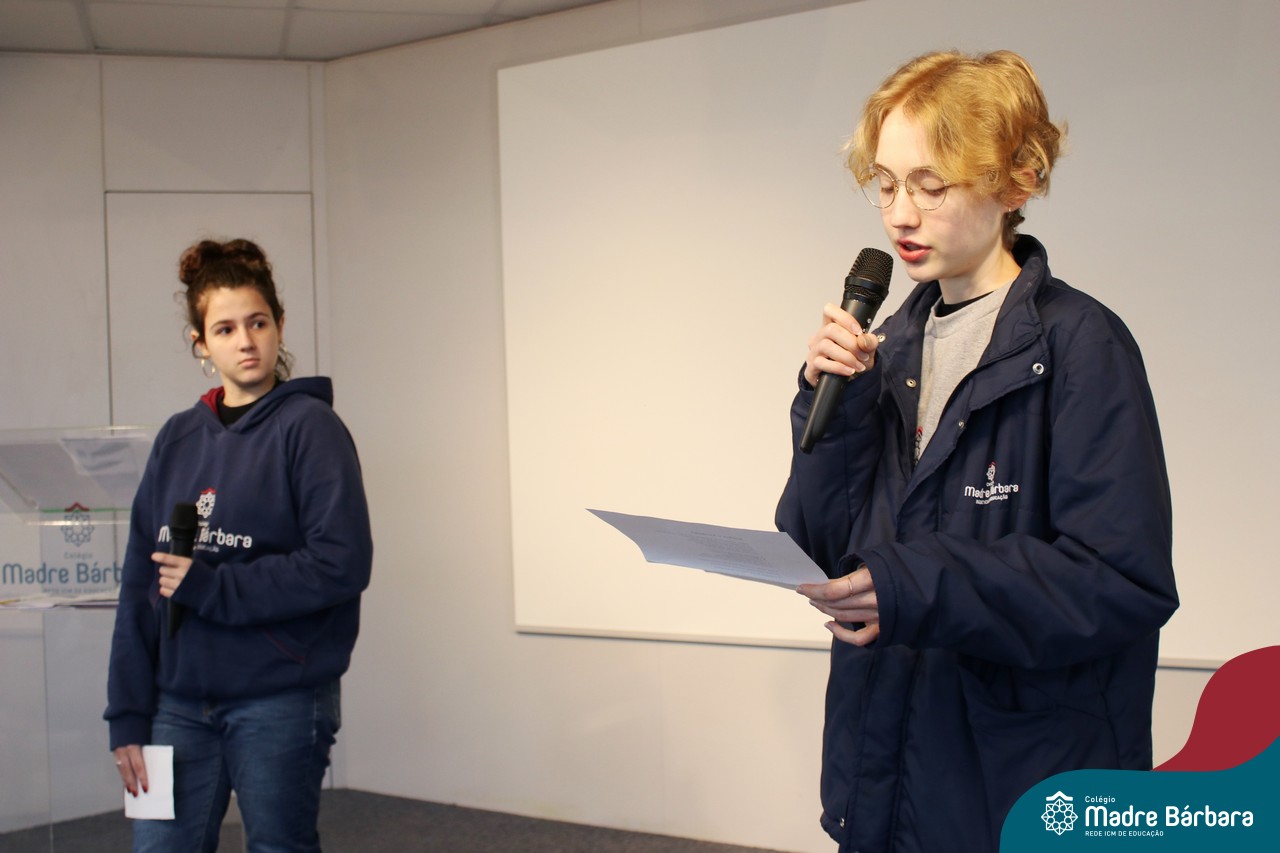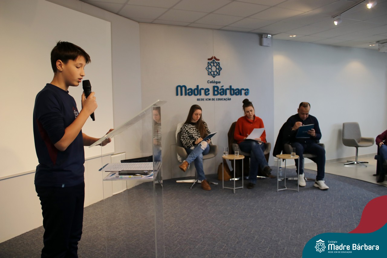 Sabendo da importância de valorizar a prática de oratória e leitura, que são de extrema importância para o desenvolvimento dos alunos, tanto no âmbito acadêmico quanto pessoal, ocorreu, na manhã desta sexta-feira (25.08) o VI Concurso de Leitura em Línguas Espanhola e Inglesa para os alunos dos 8ºs e 9ºs anos e o II Recital de Poesias em Língua Portuguesa e Inglesa, para os alunos dos 6ºs anos. O evento contou com a participação de jurados externos, os quais o Madre Bárbara agradece o apoio e dedicação. Parabéns as professoras Beatriz Freire, Carolina Werlang e Franciele Winck.