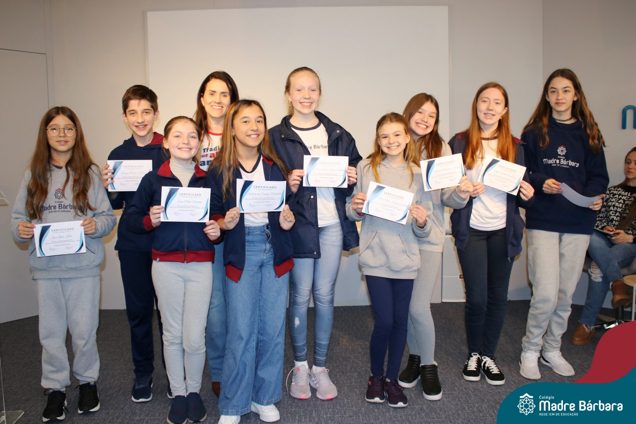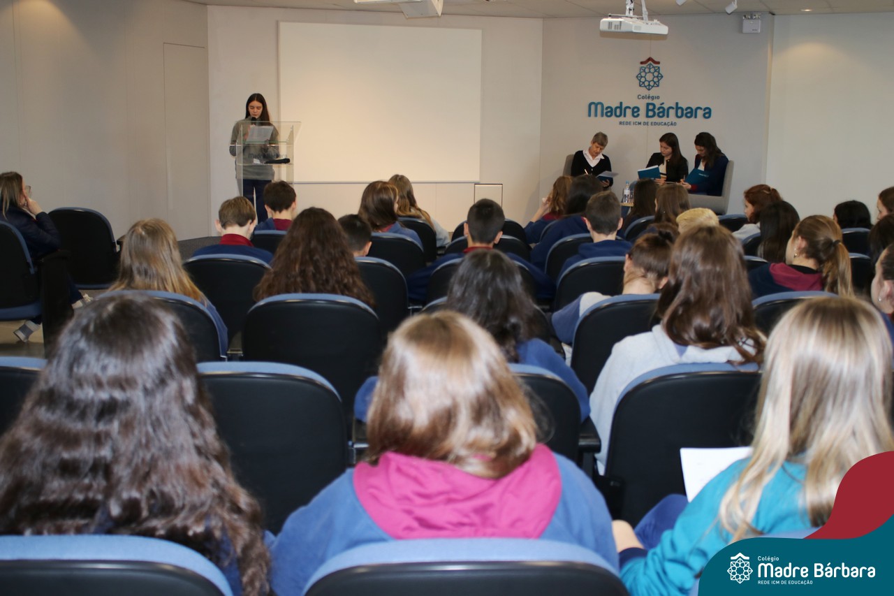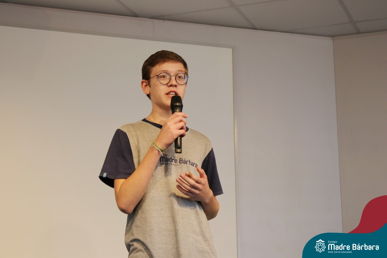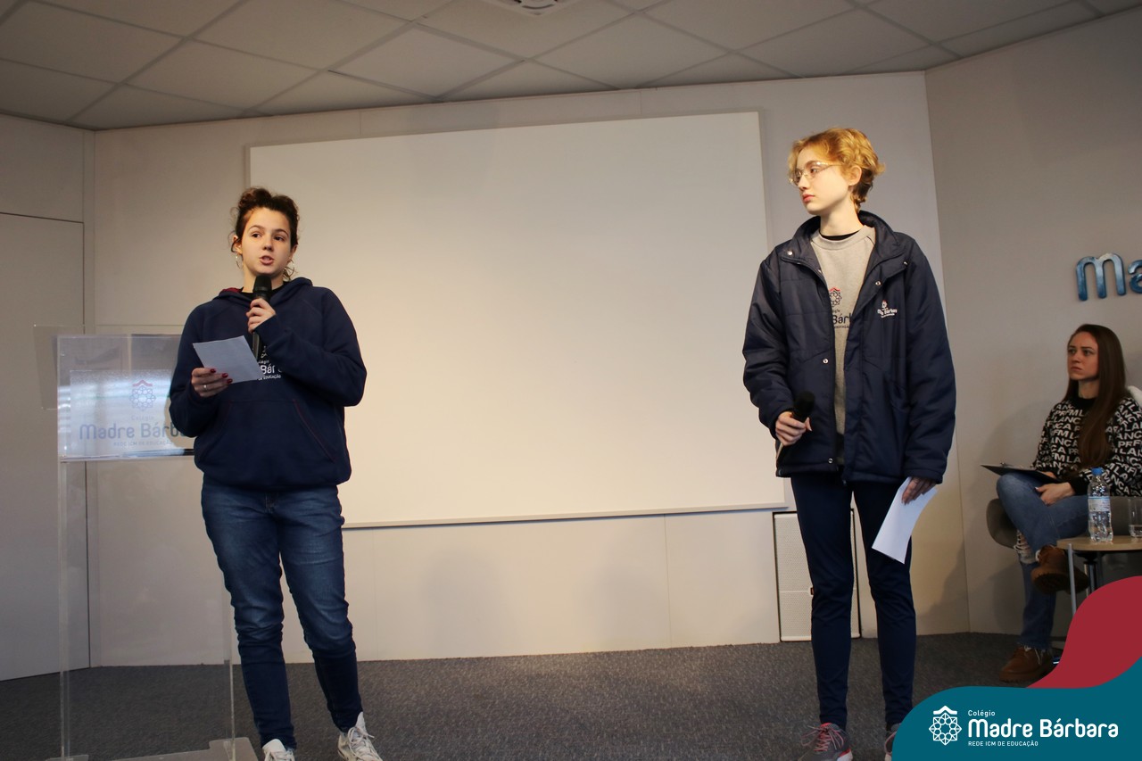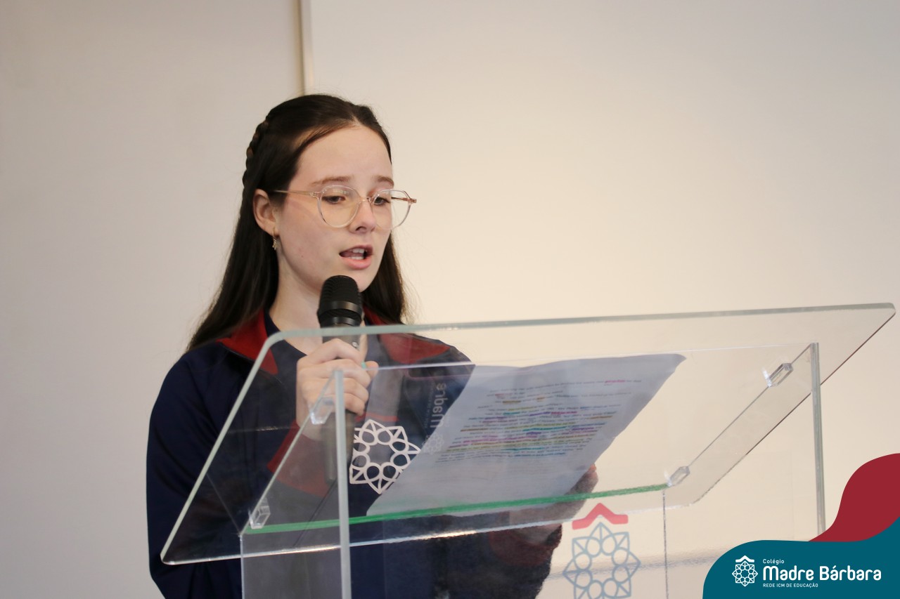 Sabendo da importância de valorizar a prática de oratória e leitura, que são de extrema importância para o desenvolvimento dos alunos, tanto no âmbito acadêmico quanto pessoal, ocorreu, na manhã desta sexta-feira (25.08) o VI Concurso de Leitura em Línguas Espanhola e Inglesa para os alunos dos 8ºs e 9ºs anos e o II Recital de Poesias em Língua Portuguesa e Inglesa, para os alunos dos 6ºs anos. O evento contou com a participação de jurados externos, os quais o Madre Bárbara agradece o apoio e dedicação. Parabéns as professoras Beatriz Freire, Carolina Werlang e Franciele Winck.