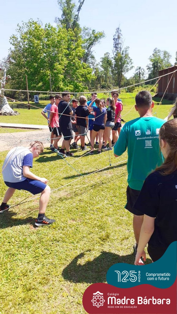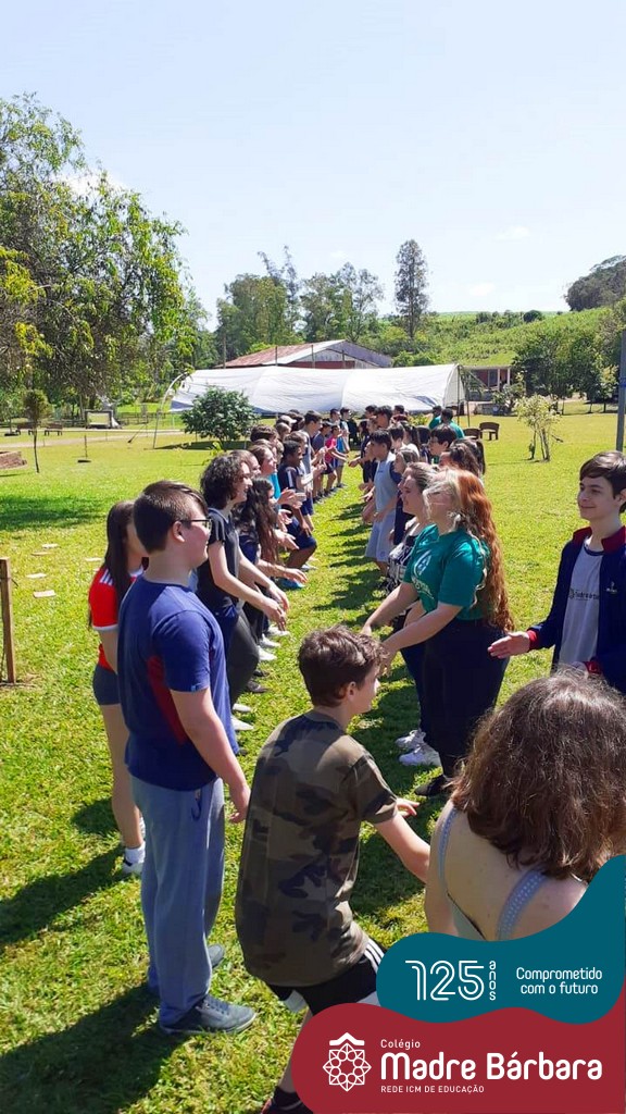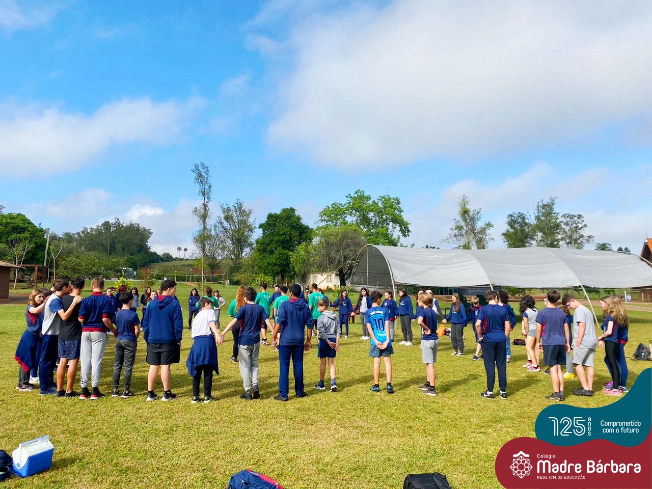 Na última terça-feira (25.10), os estudantes do 8º ano do Ensino Fundamental Anos Finais do Colégio Madre Bárbara, acompanhados das professoras Caroline Heberle (Geografia) e Juciane Sehn (História), e do monitor Rodrigo Finkler, excursionaram ao Sítio Moinhos do Campo, em Bom Retiro do Sul, num programa repleto de aventuras, autoconhecimento, espírito de liderança, protagonismo e sobretudo, convivência de grupo. A proposta da viagem de estudos insere-se no Programa O Líder em Mim, desenvolvido no 8º ano, e teve por objetivo oportunizar aos estudantes o contato com o ambiente e os desafios dos jogos colaborativos, a tomada de decisões, a habilidade do relacionamento e o trabalho integrado entre corpo e mente. Foi um dia de grandes aprendizagens e de muito envolvimento dos alunos, e com certeza marcará a trajetória escolar de nossos estudantes!
