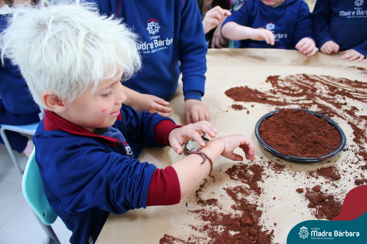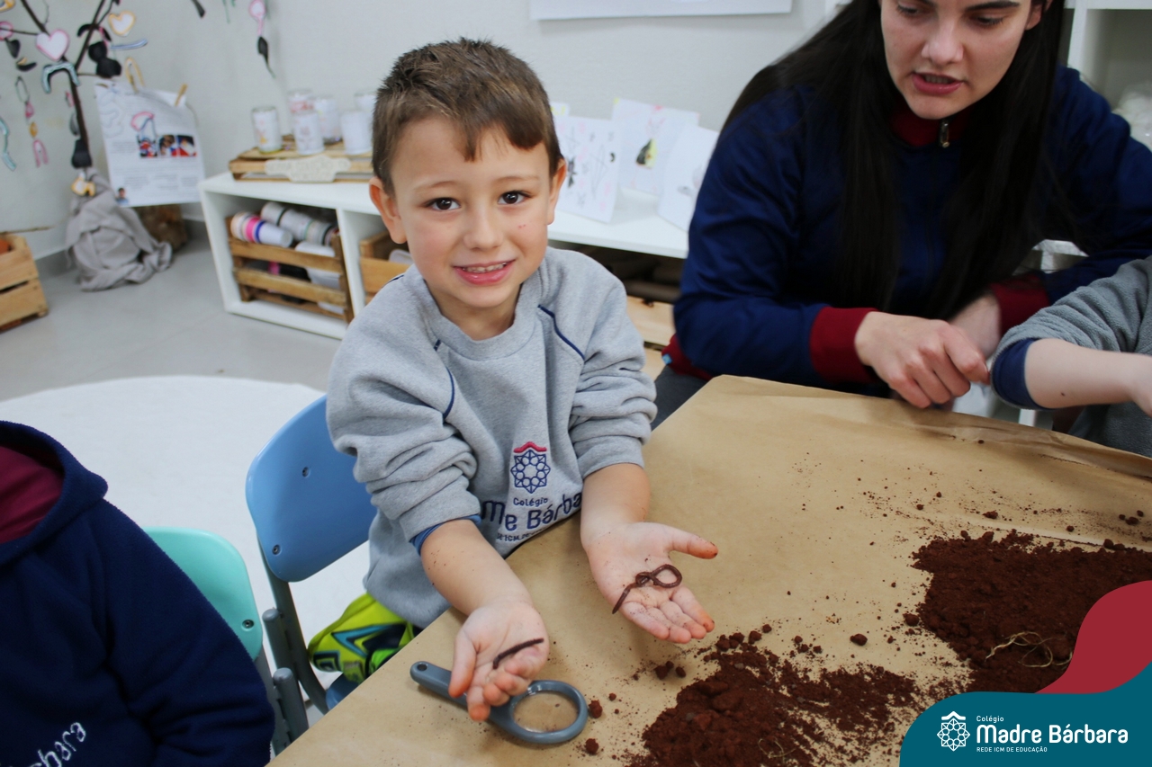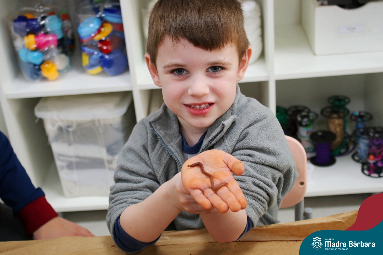 O Nível 4C está desenvolvendo o projeto “Vida de minhoca”. A proposta desse projeto surgiu a partir da curiosidade das crianças ao perceber um buraquinho no chão do pátio da nossa escola. As crianças ficaram olhando e mexendo no buraco e assim foram surgindo alguns apontamentos: “Deve ser a casinha da minhoca”, “Acho que sim, a minhoca faz buracos na terra.”, “Será que a minhoca mora aqui?”,… E assim foram surgindo algumas hipóteses e vários questionamentos sobre esse bichinho. Iniciamos o projeto realizando pesquisas no ateliê e observando as minhocas de perto. Será um incrível projeto de investigação sobre a vida da minhoca.