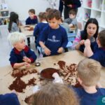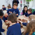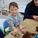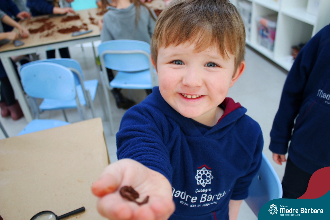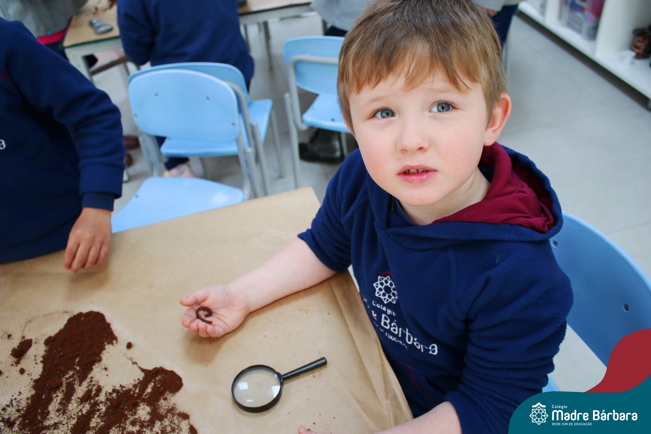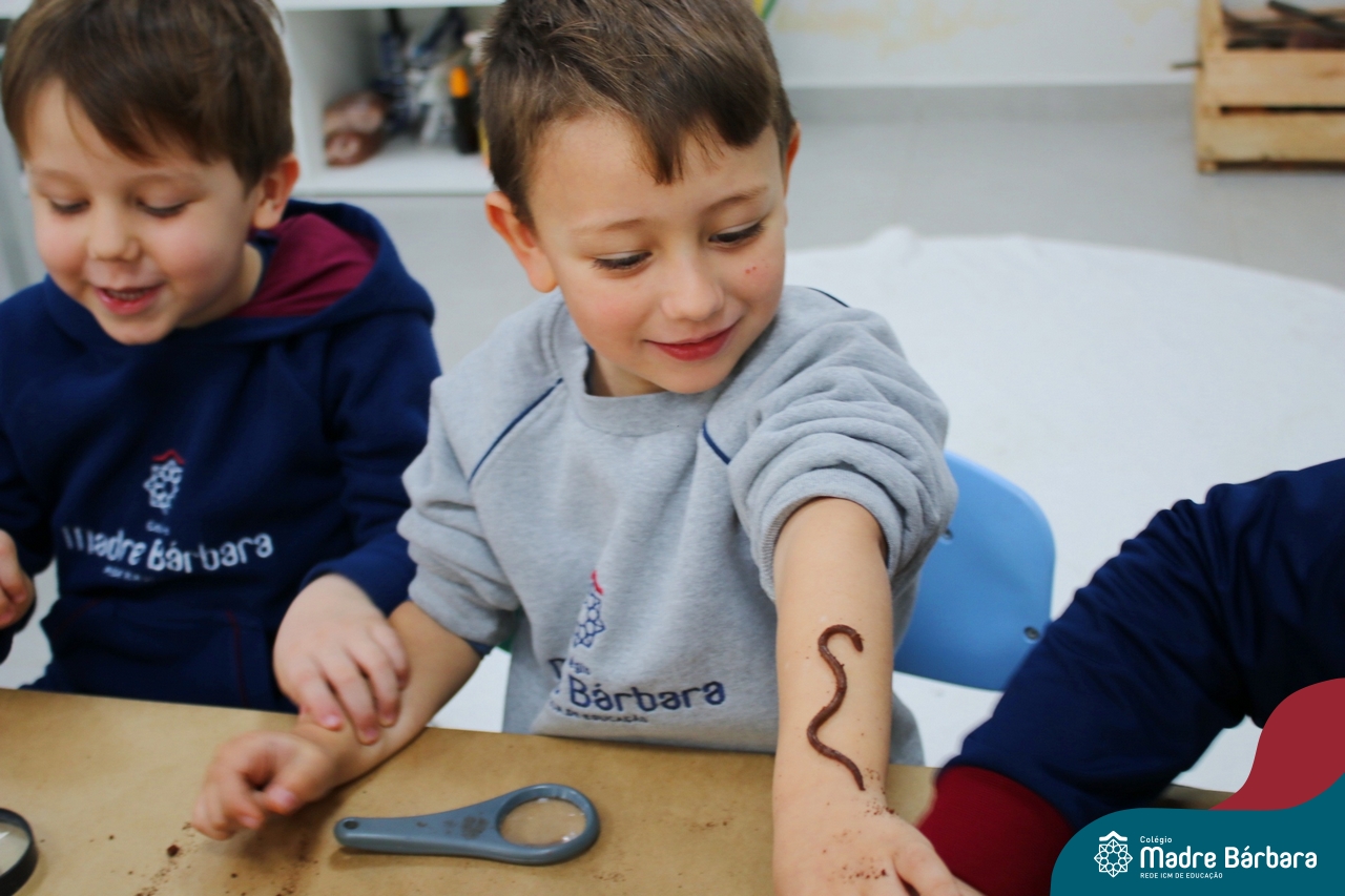 O Nível 4C está desenvolvendo o projeto “Vida de minhoca”. A proposta desse projeto surgiu a partir da curiosidade das crianças ao perceber um buraquinho no chão do pátio da nossa escola. As crianças ficaram olhando e mexendo no buraco e assim foram surgindo alguns apontamentos: “Deve ser a casinha da minhoca”, “Acho que sim, a minhoca faz buracos na terra.”, “Será que a minhoca mora aqui?”,… E assim foram surgindo algumas hipóteses e vários questionamentos sobre esse bichinho. Iniciamos o projeto realizando pesquisas no ateliê e observando as minhocas de perto. Será um incrível projeto de investigação sobre a vida da minhoca.