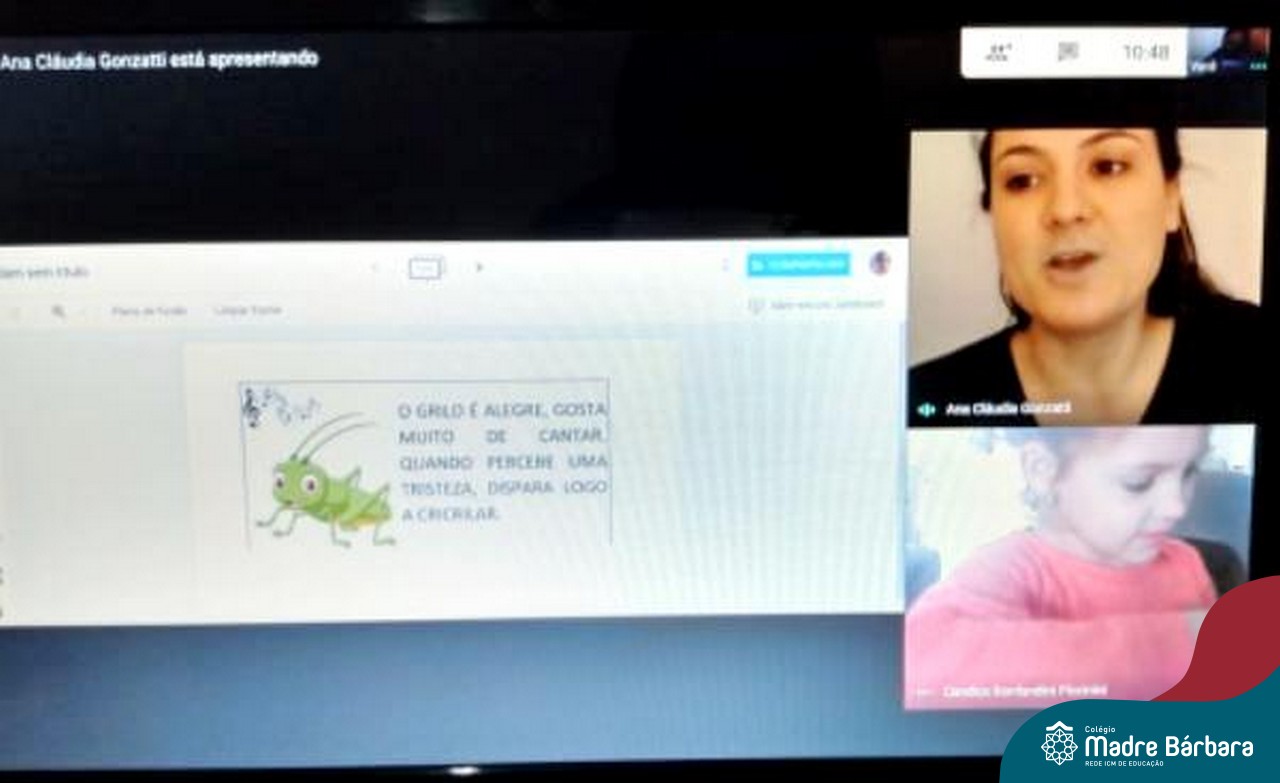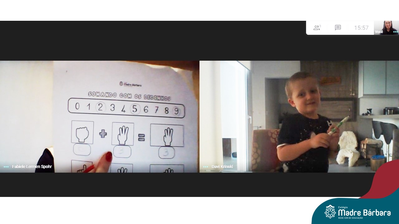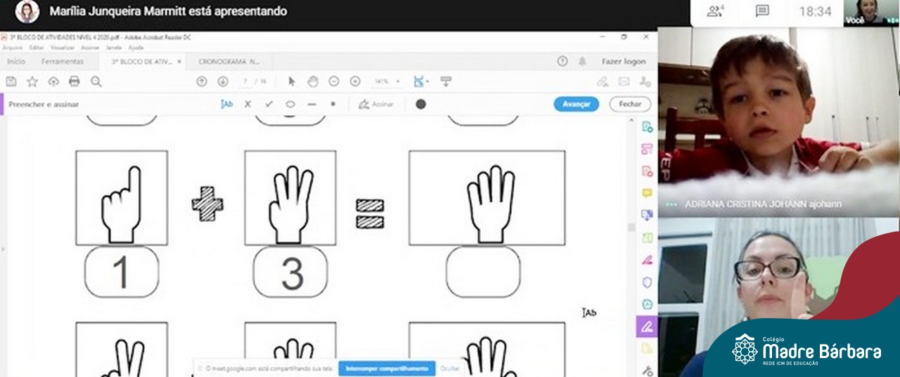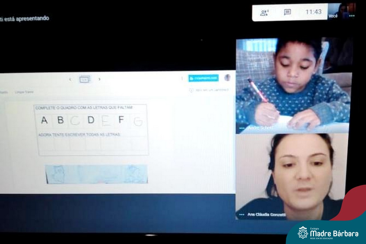 Os Níveis 4 e 5 da Educação Infantil, estão vivenciando na última semana de cada mês, encontros muitos especiais, as “Videochamadas Individuais” através da plataforma do Google Meet. Nestes encontros, as professoras desenvolvem situações de aprendizagem que corroboram ao desenvolvimento integral da criança, sendo possível acompanhá-las de forma individual, bem como, possibilitando o fortalecimento dos vínculos afetivos. Nesta semana o Nível 4 trabalhou a linguagem lógico-matemática através de situações lúdicas com os números. Já o Nível 5 oportunizou vivências muito significativas com a linguagem da escrita ao utilizarem o caderno. Nas demais semanas do mês as videochamas são organizadas em grupos de até 6 crianças.
