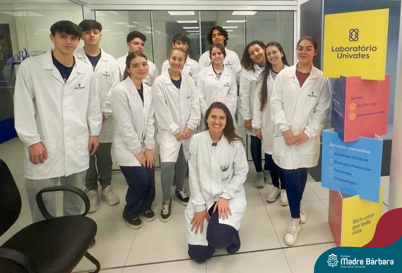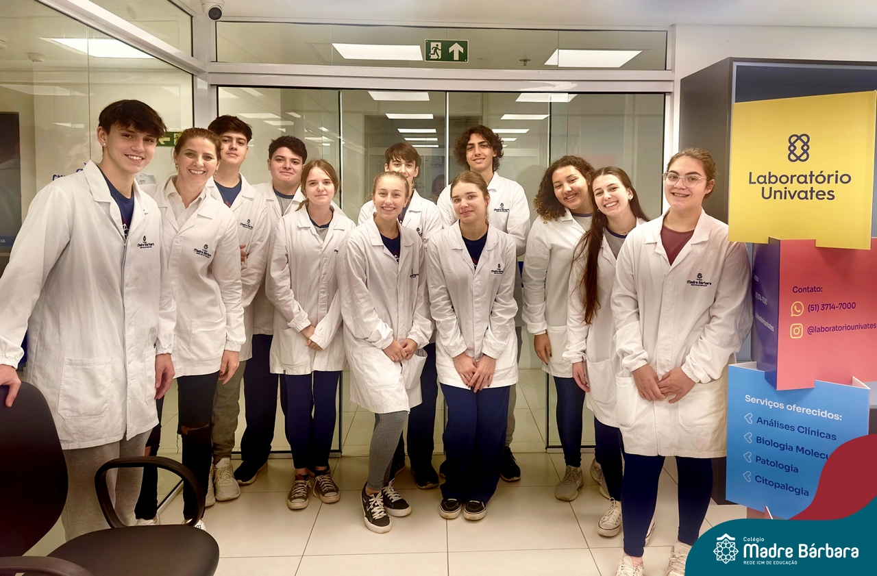Na última semana, um grupo de estudantes do 2º ano do Ensino Médio do Colégio Madre Bárbara – Rede ICM realizou visitação ao Laboratório de Análises da Univates, junto ao Hospital Bruno Born (HBB). Na visita, puderam entender mais sobre os diagnósticos a partir de testes rápidos, os ⁠meios de cultura para identificação de patógenos e doenças, os ⁠processos de coleta e identificação e os tipos de amostras a partir de ⁠tecnologias, recursos e equipamentos necessários que completam a identificação e análise. A visita complementa o estudo que é realizado junto a eletiva Imunologia e Saúde Publica, com a Professora Ângela Lenz.