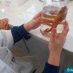Na tarde do dia 20.05, a turma do Nível 4C foi visitar o laboratório de ciências da natureza para realizar uma prática sobre anatomia do peixe. A experiência foi muito enriquecedora, pois puderam observar de perto as estruturas internas e externas de um peixe, como as brânquias, nadadeiras e escamas. Com o auxílio de instrumentos e orientações, manusearam com cuidado e aprenderam muito, sanando algumas das curiosidades das crianças. A vivência prática ajudou a complementar a nossa pesquisa do projeto, tornando o aprendizado divertido e significativo.