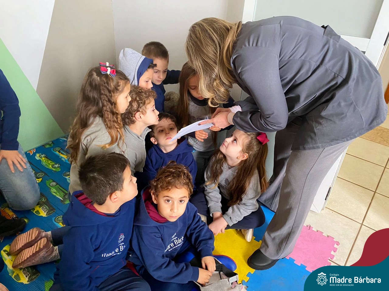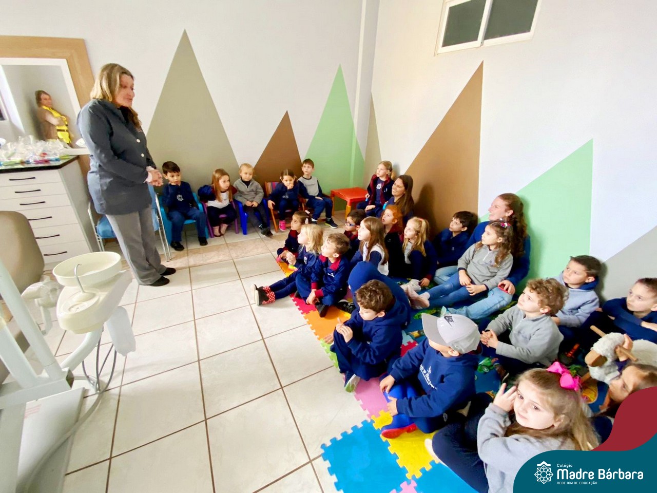 Na quinta-feira, 29 de junho, a turma do 5D, acompanhada da professora Jéssica e monitora Eduarda, realizaram uma visita a Clínica Odontológica Dental Clin! Na oportunidade, realizaram uma roda de conversa com a doutora Janara Feldens! Foi um momento enriquecedor e que, com certeza, ficará na memória afetiva das nossas crianças! Agradecemos o acolhimento, a receptividade, afeto e o carinho da mamãe do Antônio e do Miguel, Janaína Feldens e equipe em nos receber!