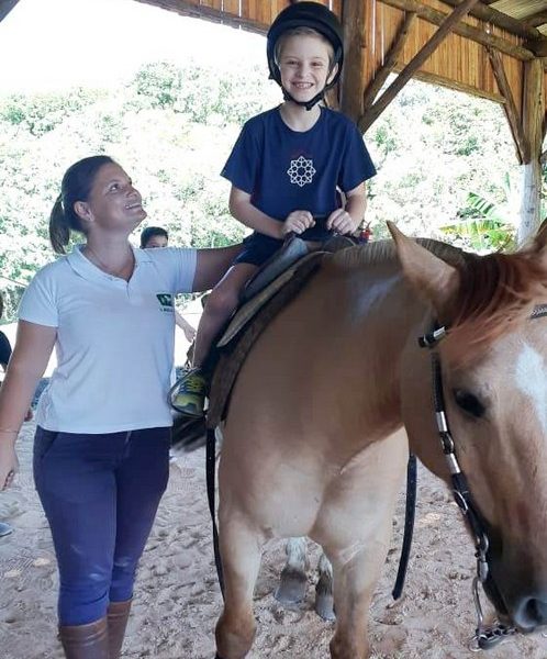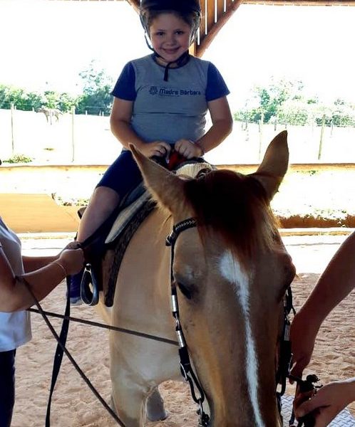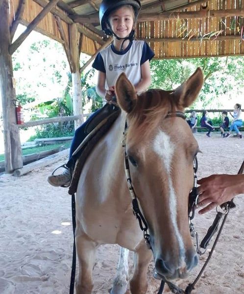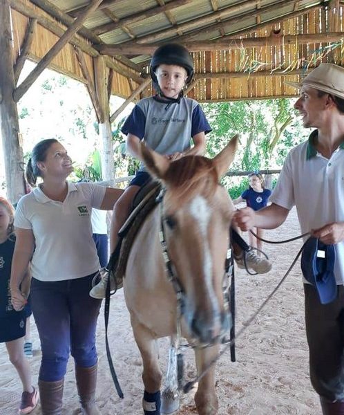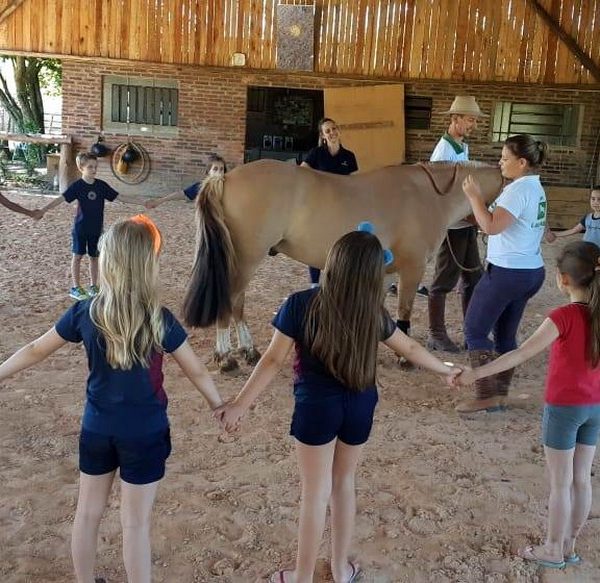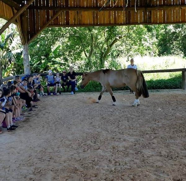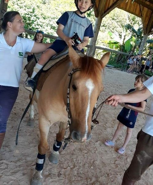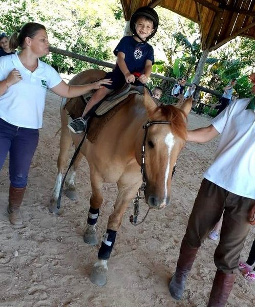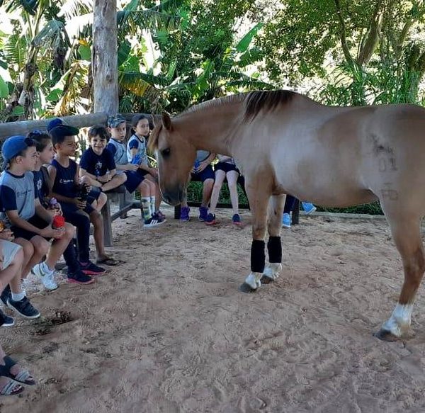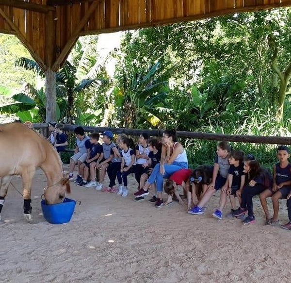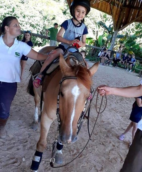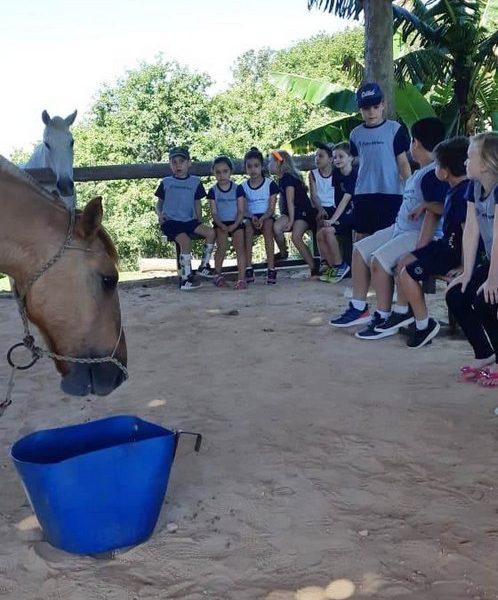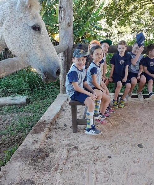 Na última sexta-feira, dia 06.12, a turma 14 encerrou suas pesquisas iniciadas na Mostra Científico-Pedagógica: “O fantástico mundo dos cavalos”, visitando o Instituto Lado a lado Equoterapia, localizado em Cruzeiro do Sul. O objetivo da proposta, foi sair da teoria e mostrar a Equoterapia na prática. A montaria foi muito esperada pelos alunos. O trabalho proposto em equipe fez com que cada um tivesse: atenção, respeito, paciência, auto controle e carinho. Após cada aluno montar no cavalo, ajudaram a dar ração onde coletivamente serviram o pote com um punhado de ração. Foi uma tarde divertida, com vivências encantadoras e muito aprendizado.