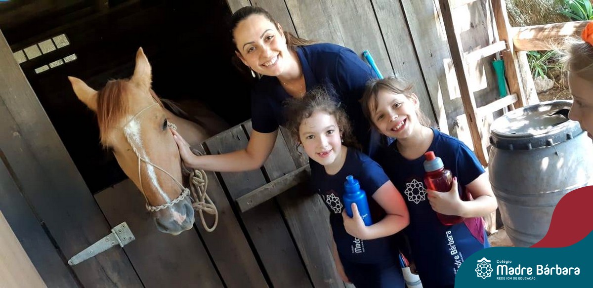 Na última sexta-feira, dia 06.12, a turma 14 encerrou suas pesquisas iniciadas na Mostra Científico-Pedagógica: “O fantástico mundo dos cavalos”, visitando o Instituto Lado a lado Equoterapia, localizado em Cruzeiro do Sul. O objetivo da proposta, foi sair da teoria e mostrar a Equoterapia na prática. A montaria foi muito esperada pelos alunos. O trabalho proposto em equipe fez com que cada um tivesse: atenção, respeito, paciência, auto controle e carinho. Após cada aluno montar no cavalo, ajudaram a dar ração onde coletivamente serviram o pote com um punhado de ração. Foi uma tarde divertida, com vivências encantadoras e muito aprendizado.