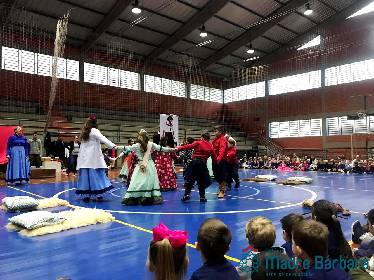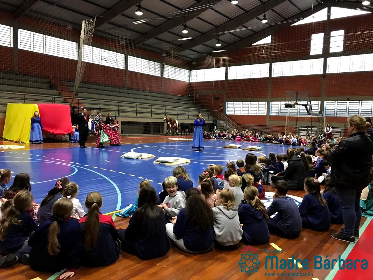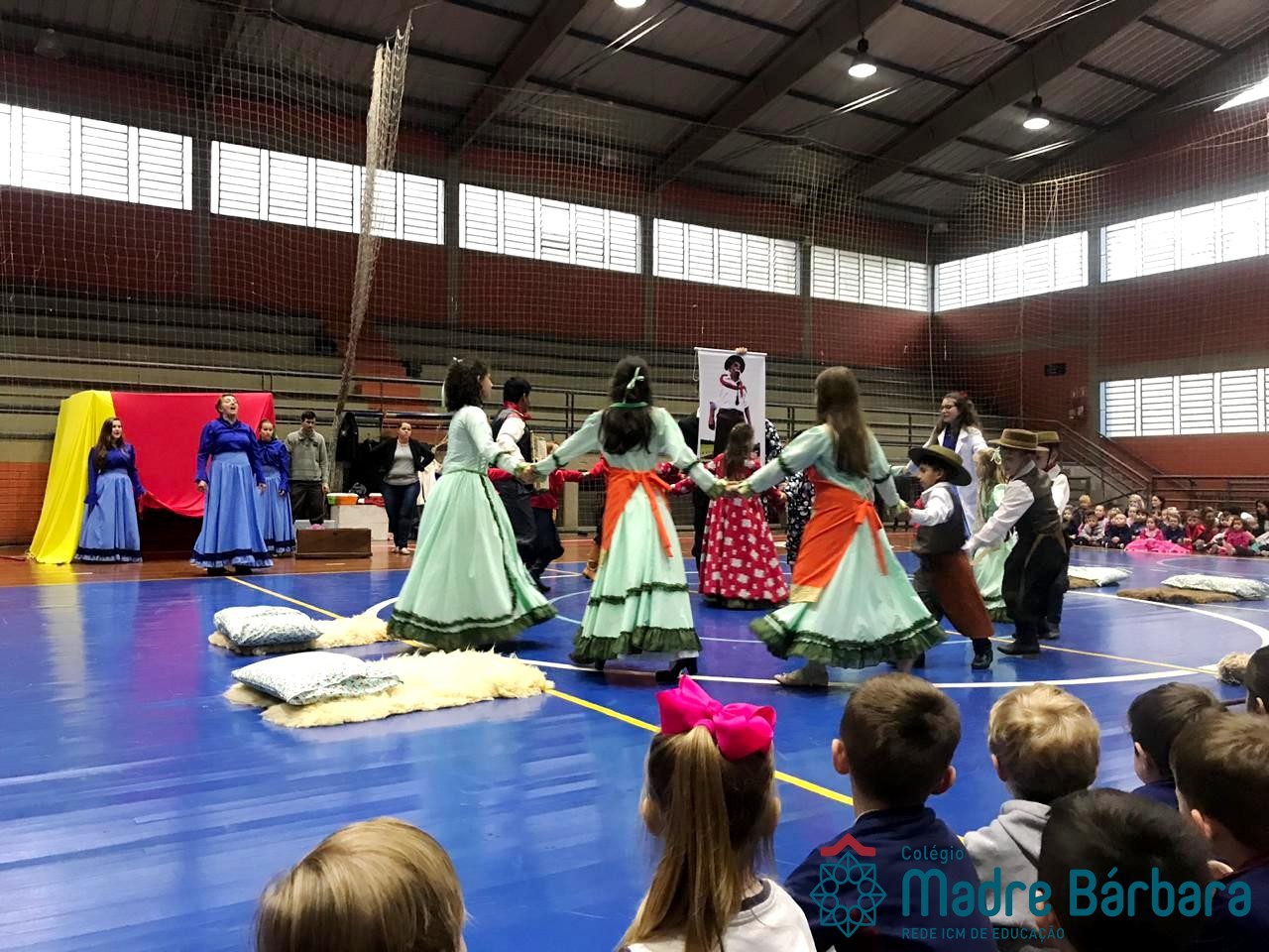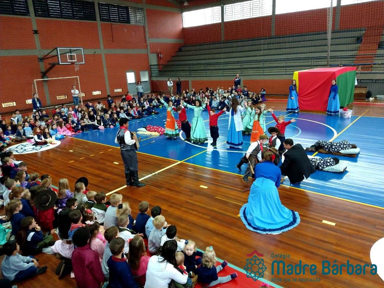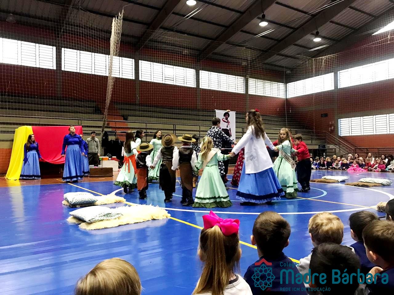 Na manhã e tarde de terça-feira (17.09) o Colégio Madre Bárbara – Rede ICM recebeu a visita da Invernada Chama no Pé de Cruzeiro do Sul. O grupo fez uma encenação na entrada e depois apresentou diversas danças gauchescas. No turno da tarde, teve também a Dança das Facas. Os alunos ficaram encantados com as músicas apresentadas e a qualidade da dança. Confira parte desses momentos.