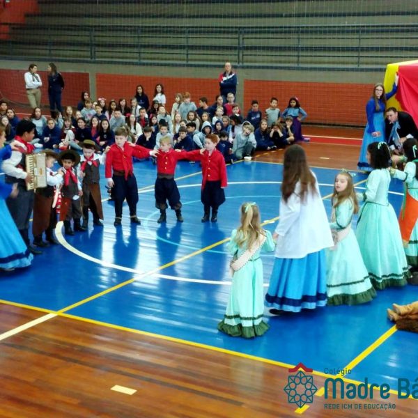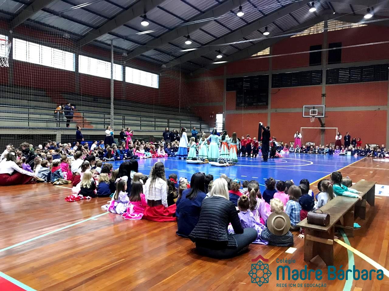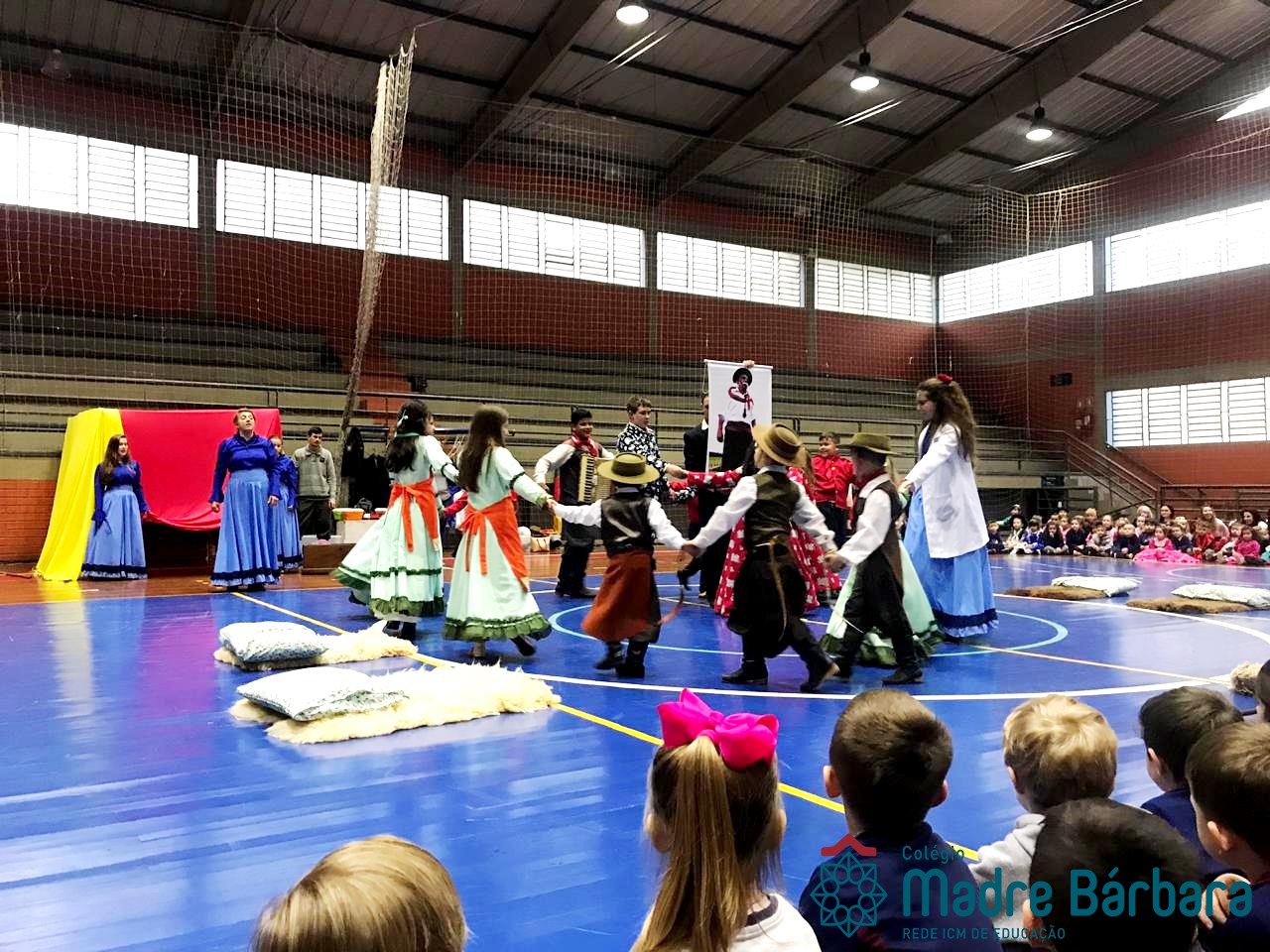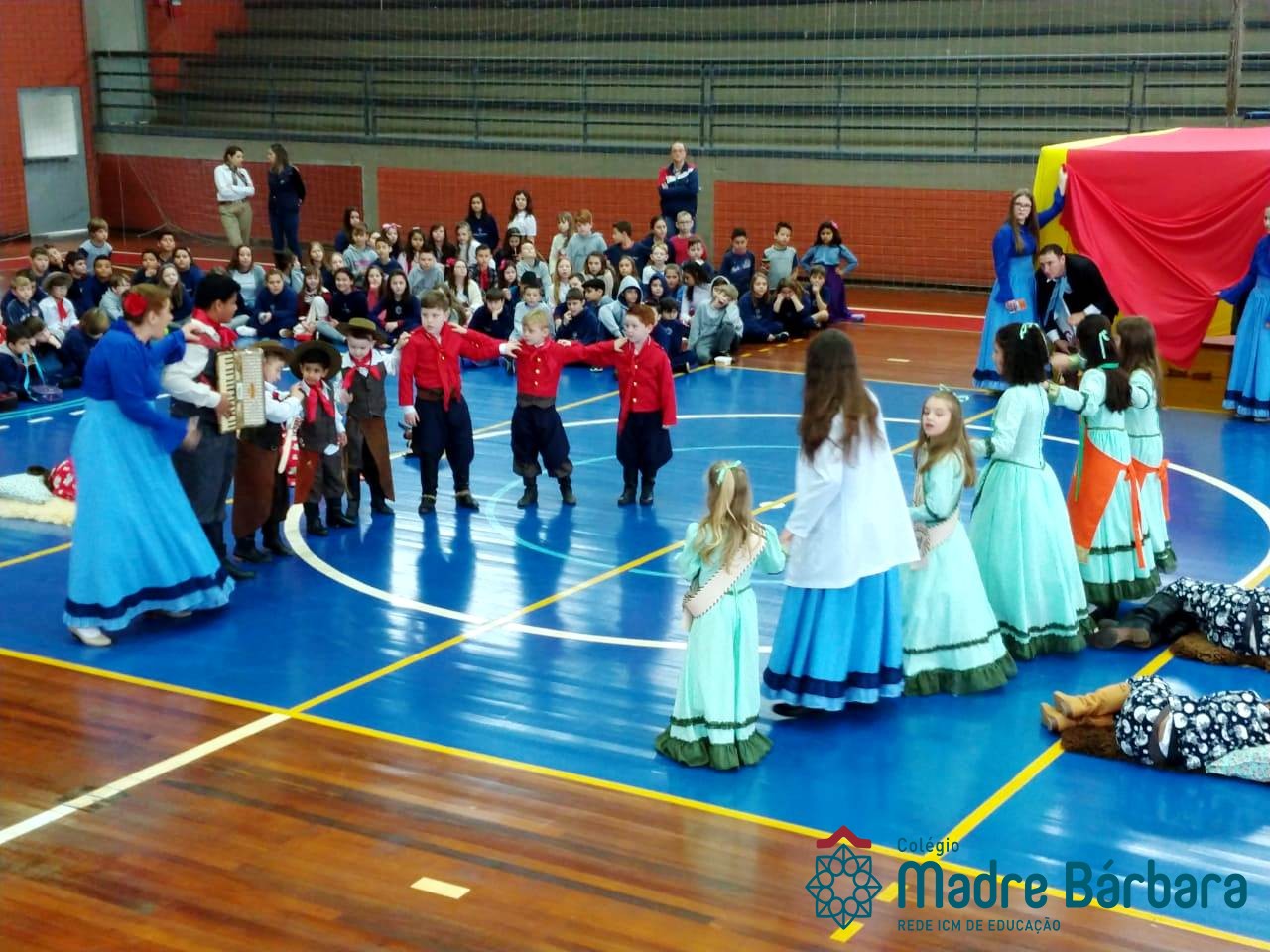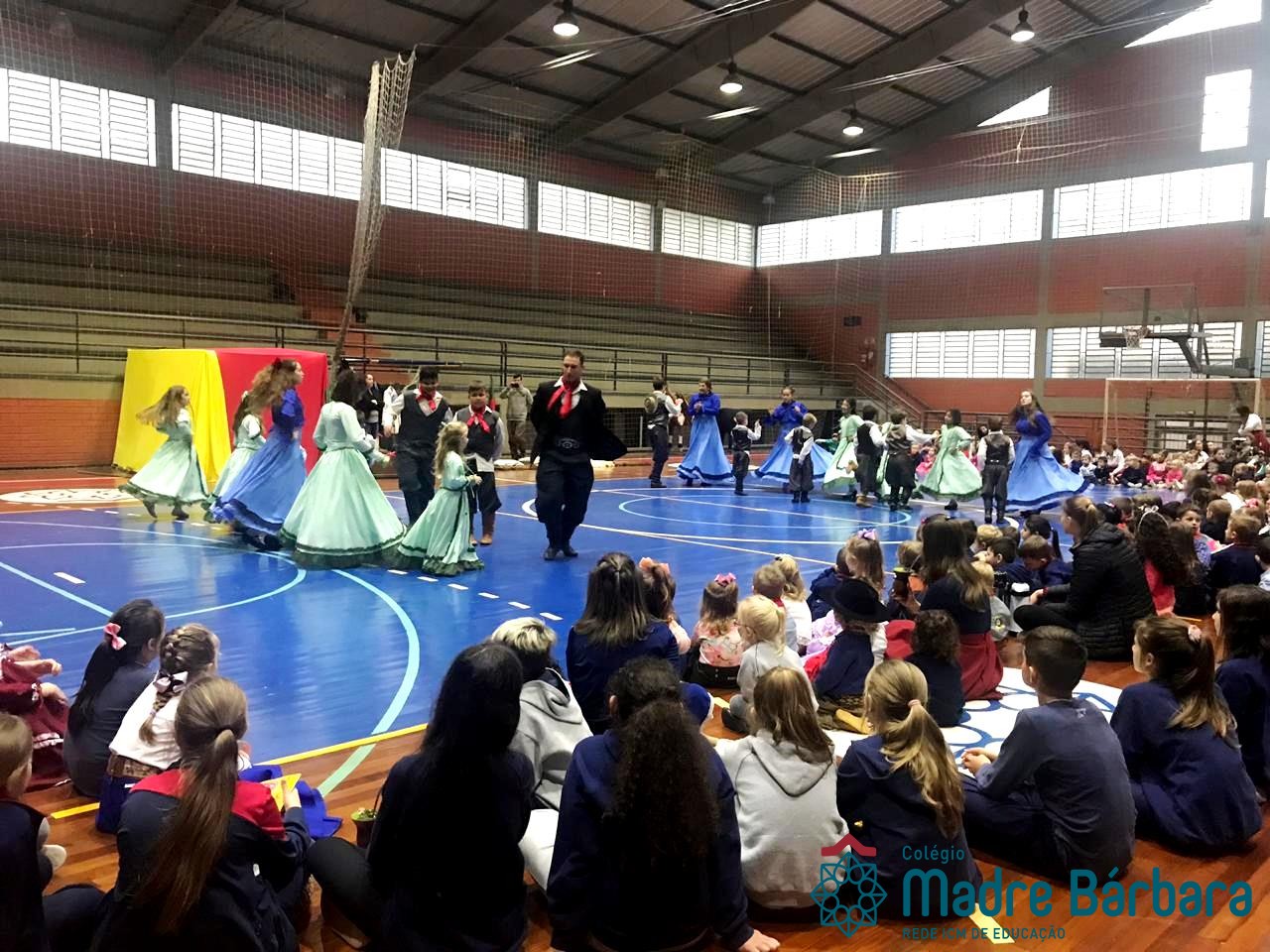 Na manhã e tarde de terça-feira (17.09) o Colégio Madre Bárbara – Rede ICM recebeu a visita da Invernada Chama no Pé de Cruzeiro do Sul. O grupo fez uma encenação na entrada e depois apresentou diversas danças gauchescas. No turno da tarde, teve também a Dança das Facas. Os alunos ficaram encantados com as músicas apresentadas e a qualidade da dança. Confira parte desses momentos.