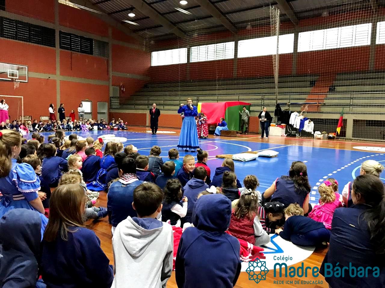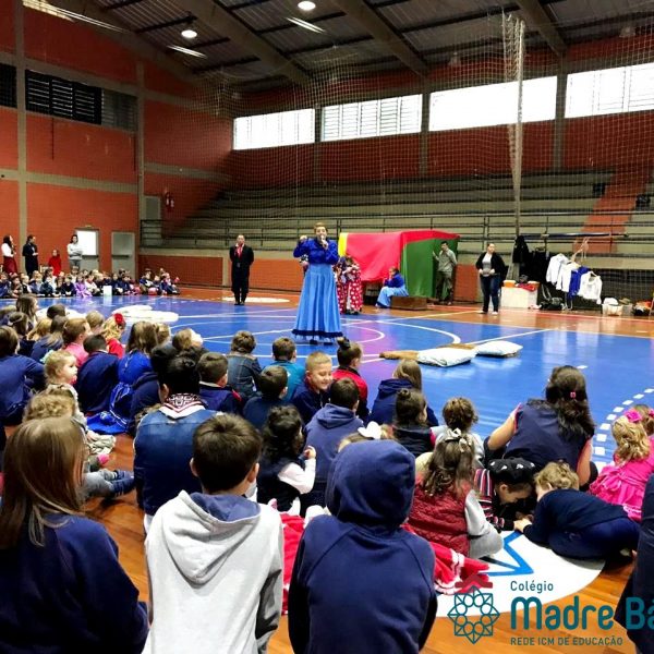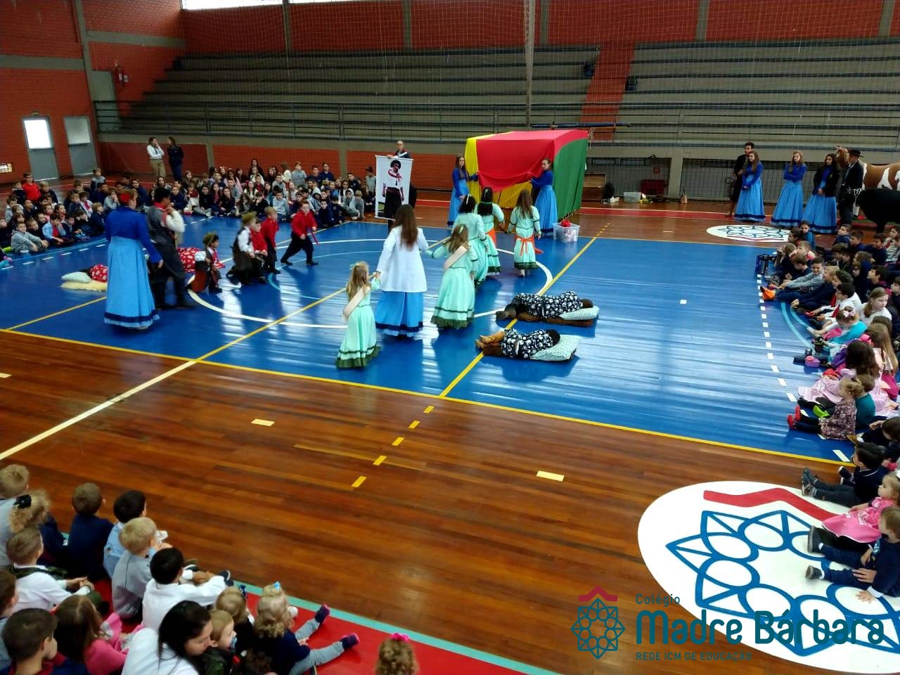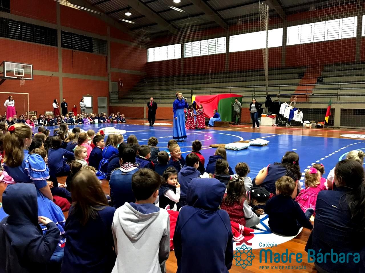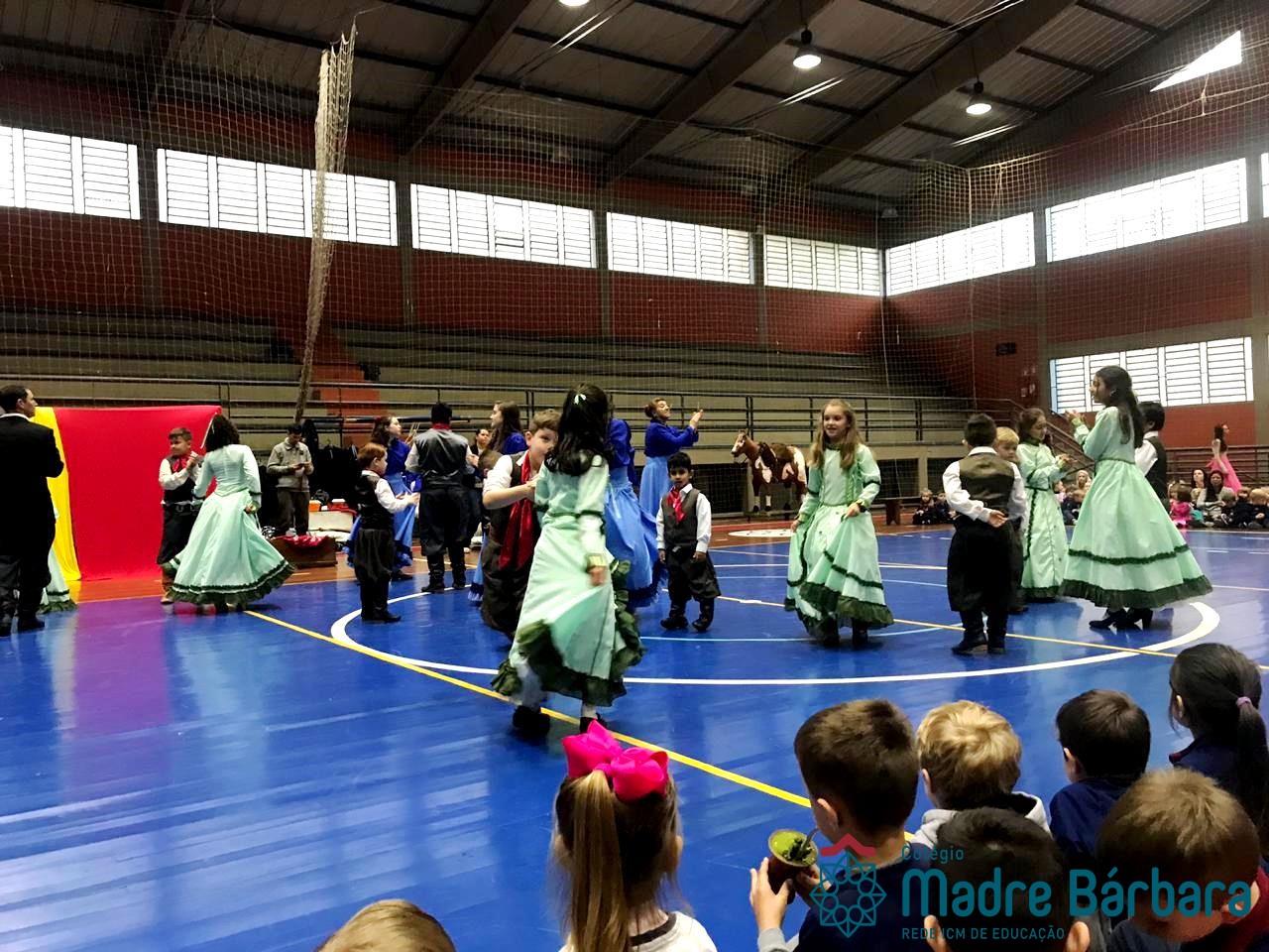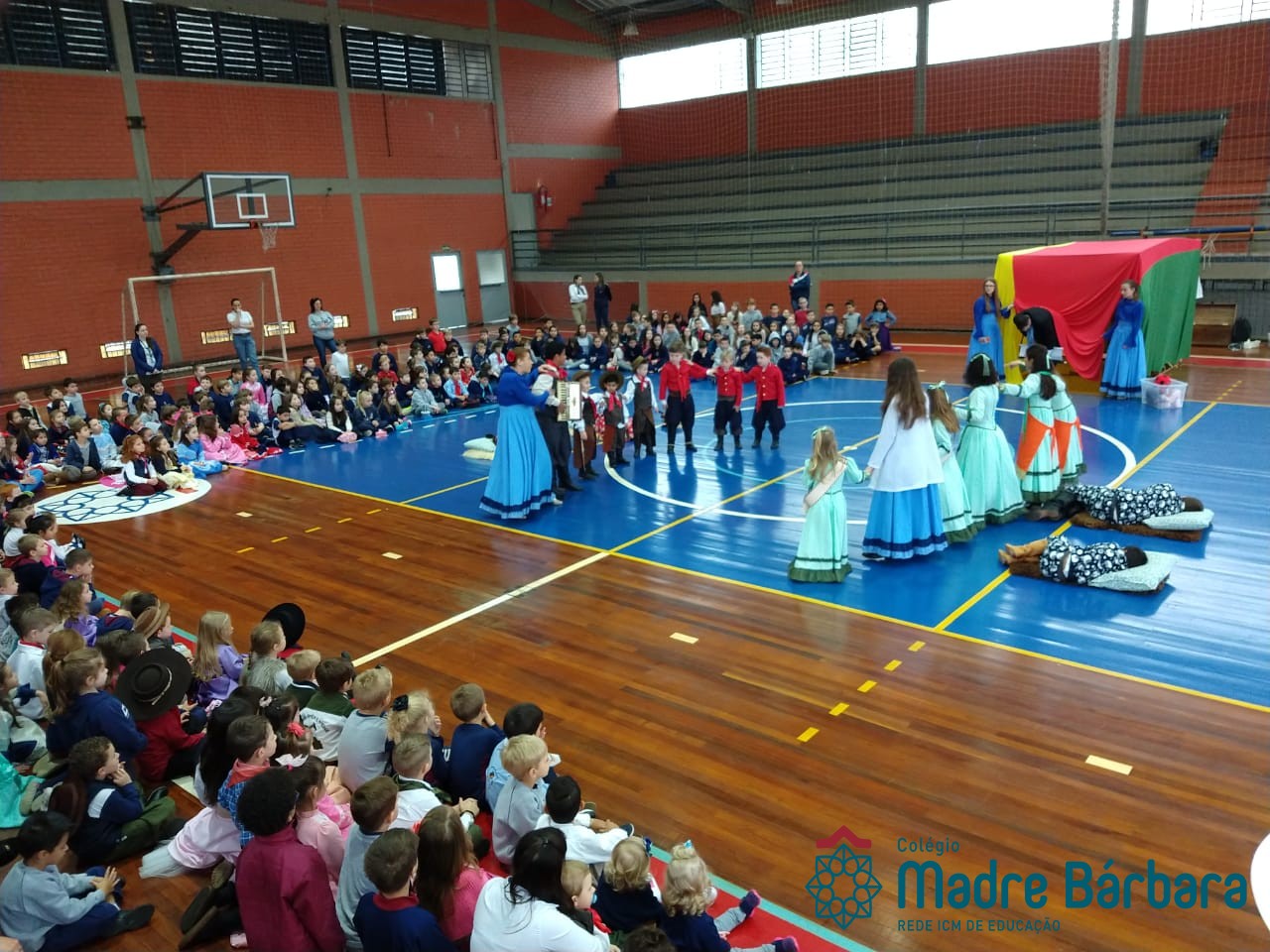 Na manhã e tarde de terça-feira (17.09) o Colégio Madre Bárbara – Rede ICM recebeu a visita da Invernada Chama no Pé de Cruzeiro do Sul. O grupo fez uma encenação na entrada e depois apresentou diversas danças gauchescas. No turno da tarde, teve também a Dança das Facas. Os alunos ficaram encantados com as músicas apresentadas e a qualidade da dança. Confira parte desses momentos.
