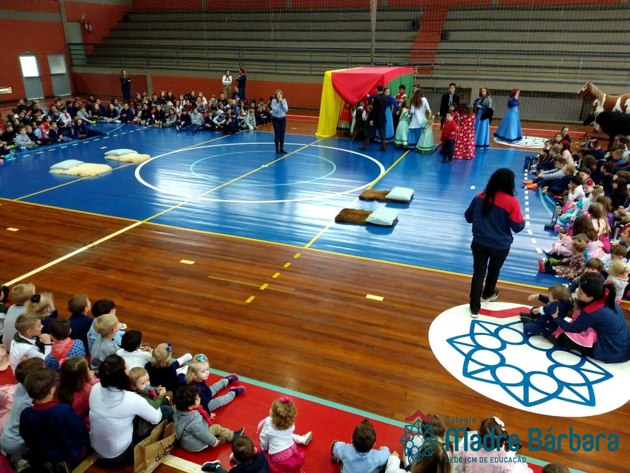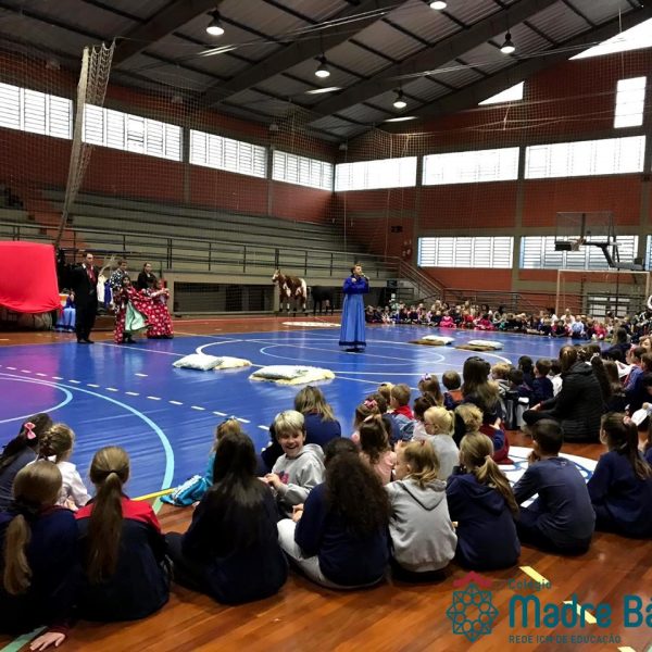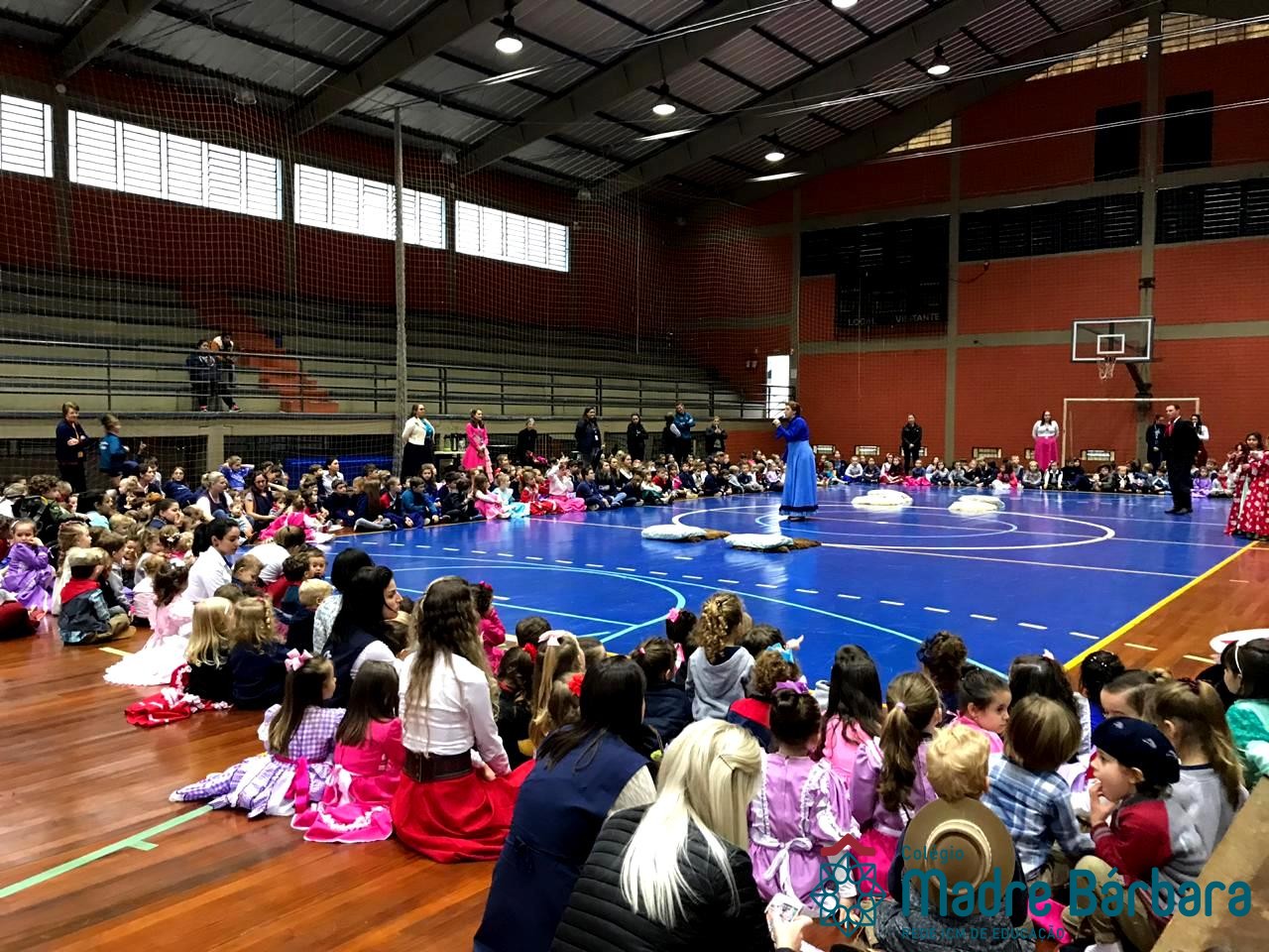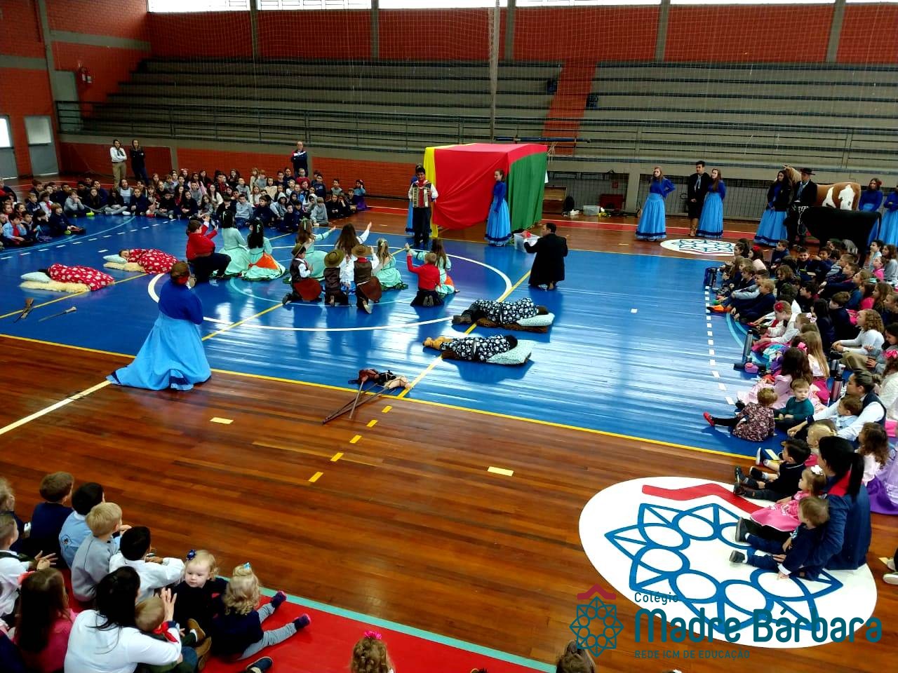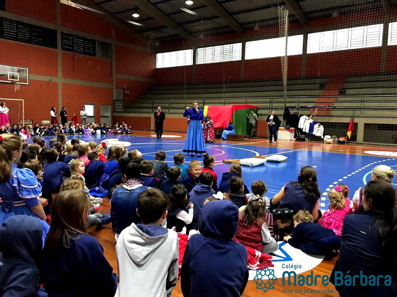 Na manhã e tarde de terça-feira (17.09) o Colégio Madre Bárbara – Rede ICM recebeu a visita da Invernada Chama no Pé de Cruzeiro do Sul. O grupo fez uma encenação na entrada e depois apresentou diversas danças gauchescas. No turno da tarde, teve também a Dança das Facas. Os alunos ficaram encantados com as músicas apresentadas e a qualidade da dança. Confira parte desses momentos.