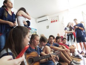 Em abril as turmas 101 e 102 do Ensino Médio visitaram o Lar de idosos Tabita, situado no bairro de Conventos, em Lajeado. Esta manhã de solidariedade programada pelos alunos anteriormente foi muito especial. Além do lanche gostoso, as alunas pintaram as unhas das vovós, todos jogaram bingo e o momento especial que alegrou, sensibilizou e emocionou os avós foi a cantoria ao som de violão e violino e as vozes dos alunos.