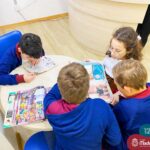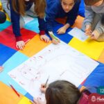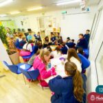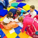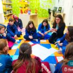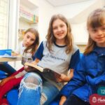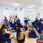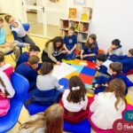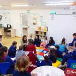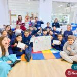 Os estudantes também participaram da hora do conto: “Contos Desenhados”, de Per Gustavsson com a bibliotecária Ketlin. Neste momento, conforme acompanhavam a história iam desenhando.