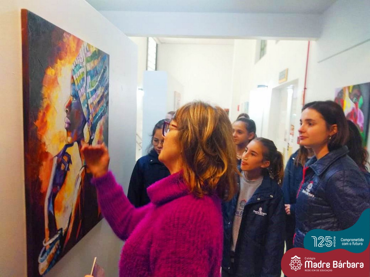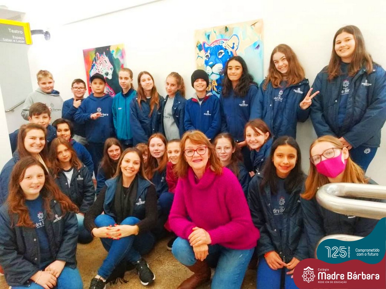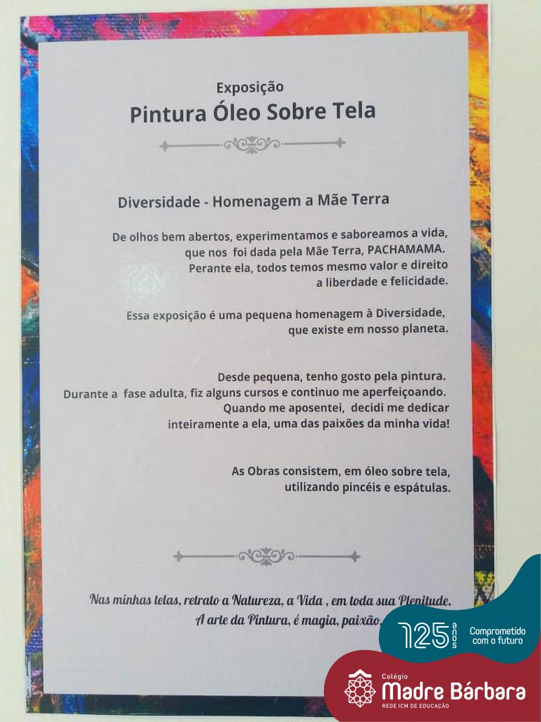 Durante o mês de setembro, os alunos dos 5ºs anos dos Anos Iniciais participaram de duas vivências muito significativas no Sesc de Lajeado. Uma delas foi a visitação e apreciação da Exposição Pachamama, obras de pintura a óleo de Sônia Johann. Nesta ocasião, as turmas tiveram o privilégio de conhecer e conversar com a artista que fez obras lindas em homenagem à Mãe Natureza.