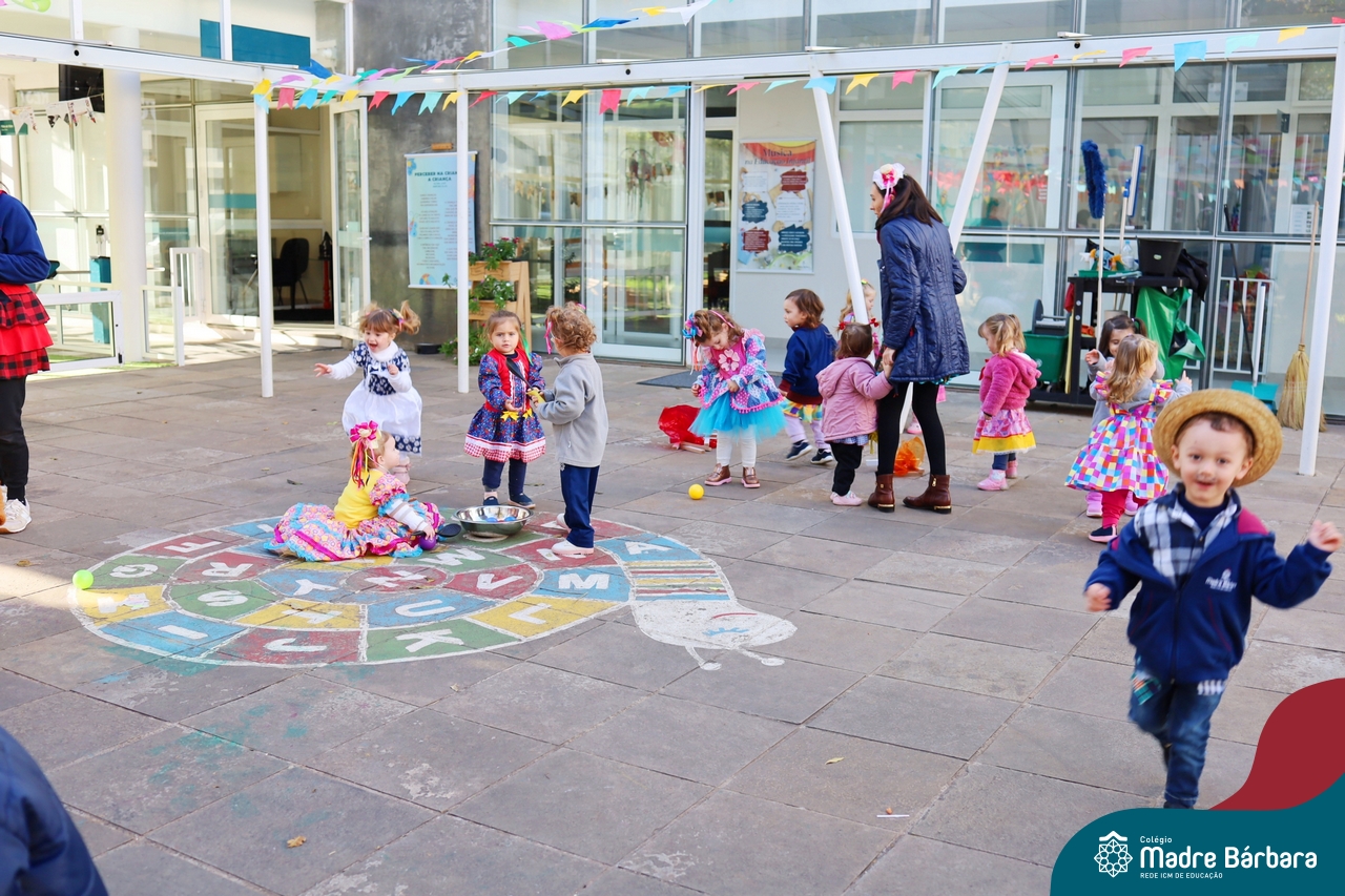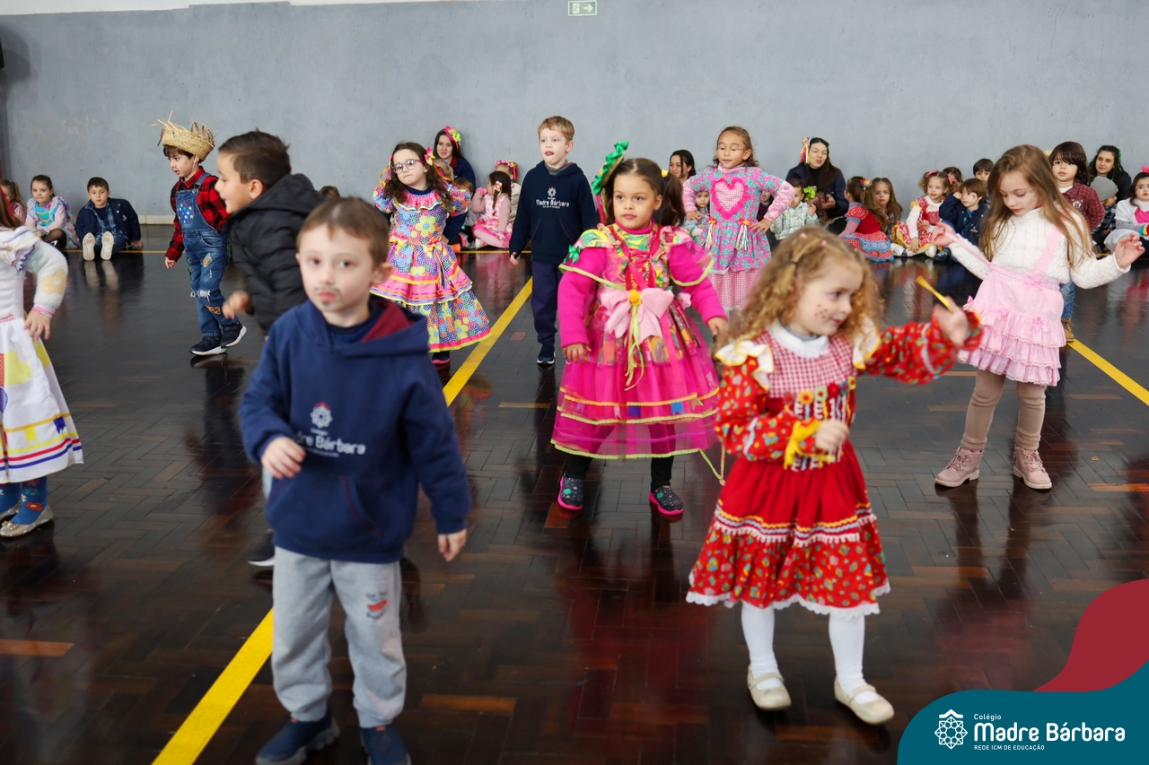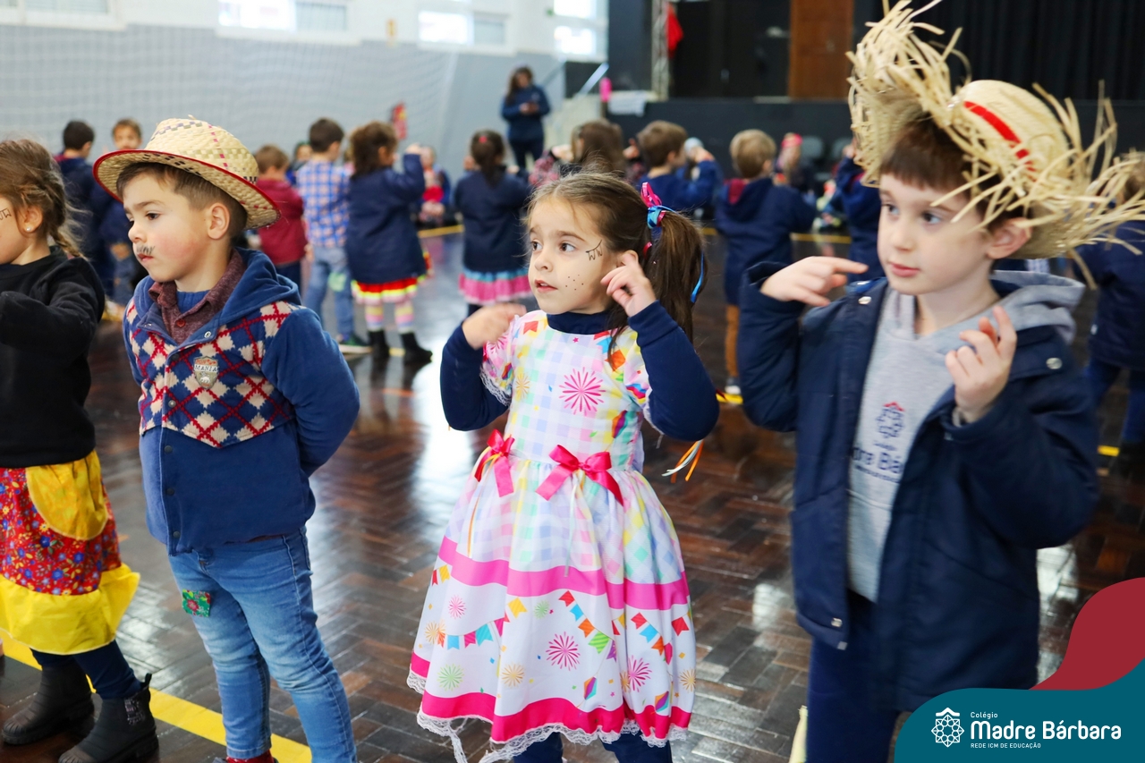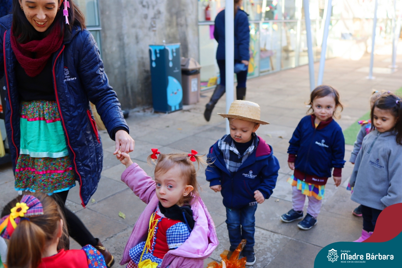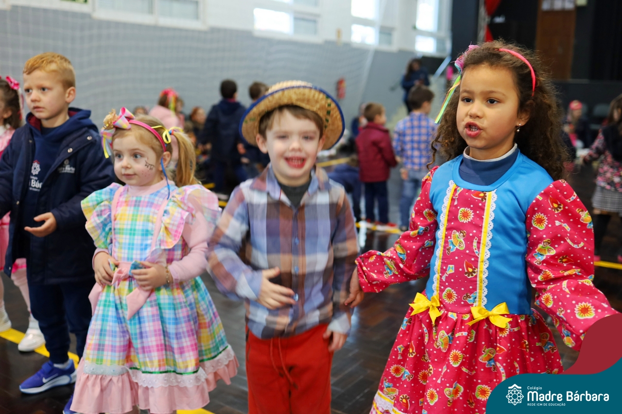 O Dia de São João foi muito celebrado no Colégio Madre Bárbara. Na Educação Infantil, ocorreu uma linda comemoração, cheia de alegria e animação! As crianças dos níveis 4 e 5 encantaram a todos com apresentações de danças juninas. Depois das danças, a festa continuou nas salas e pátios, que ficaram repletas de brincadeiras como pescaria, bola na boca do palhaço, derruba lata, entre outros momentos especiais.