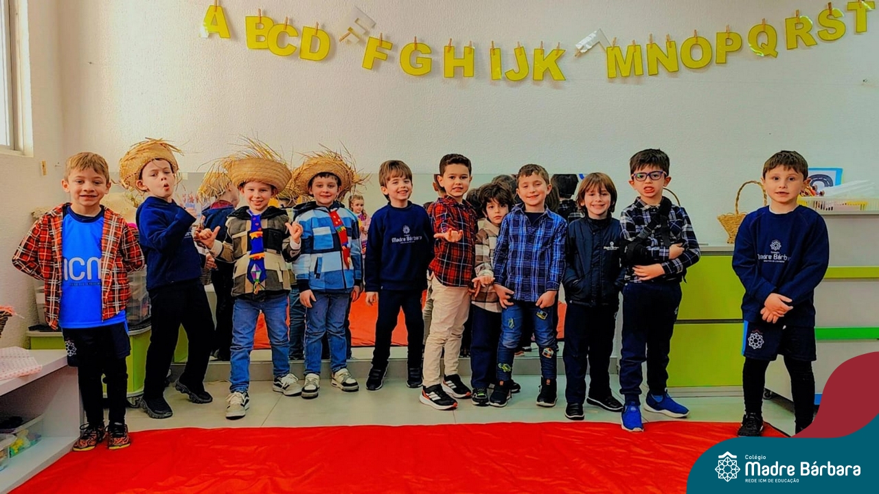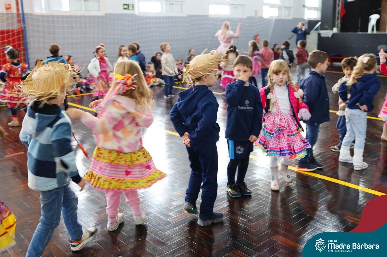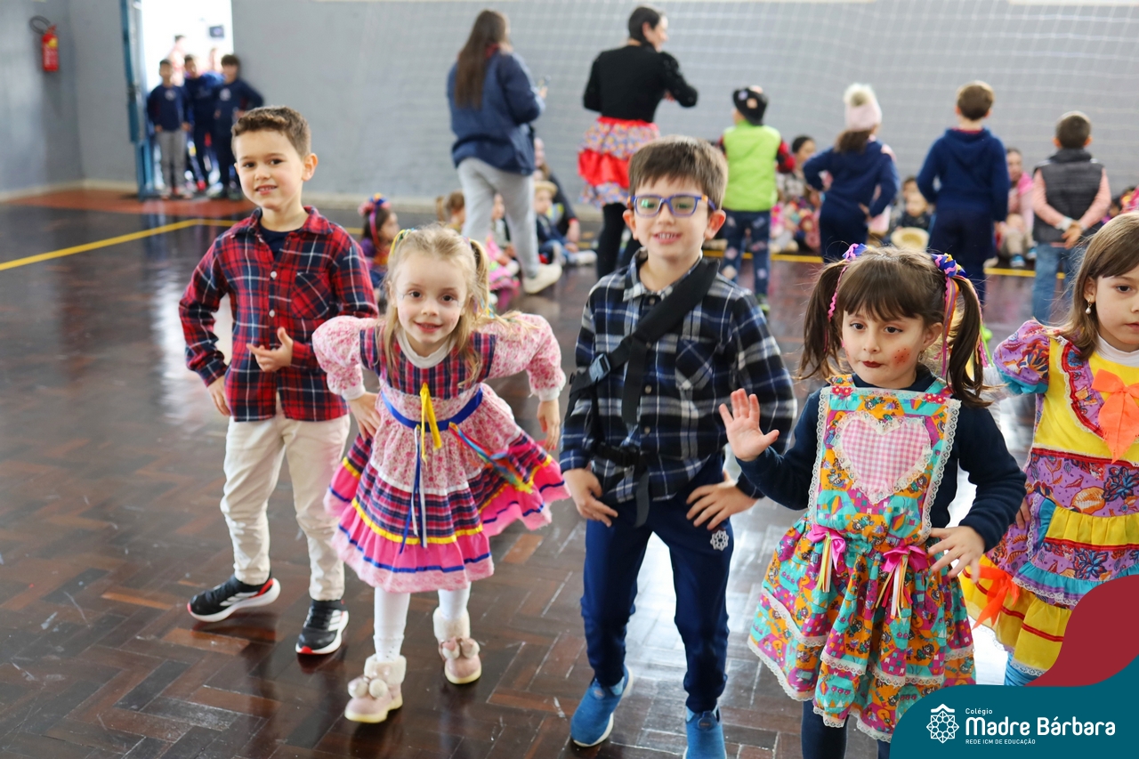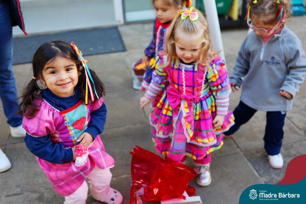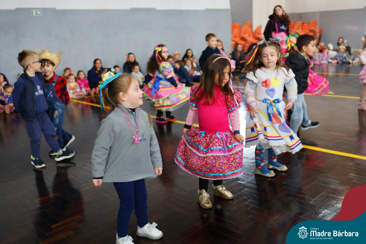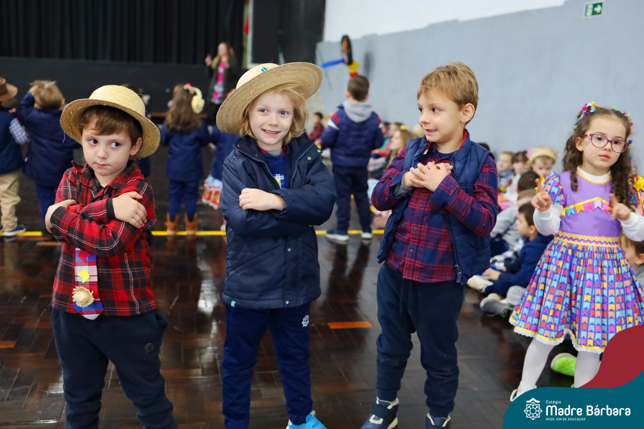 O Dia de São João foi muito celebrado no Colégio Madre Bárbara. Na Educação Infantil, ocorreu uma linda comemoração, cheia de alegria e animação! As crianças dos níveis 4 e 5 encantaram a todos com apresentações de danças juninas. Depois das danças, a festa continuou nas salas e pátios, que ficaram repletas de brincadeiras como pescaria, bola na boca do palhaço, derruba lata, entre outros momentos especiais.