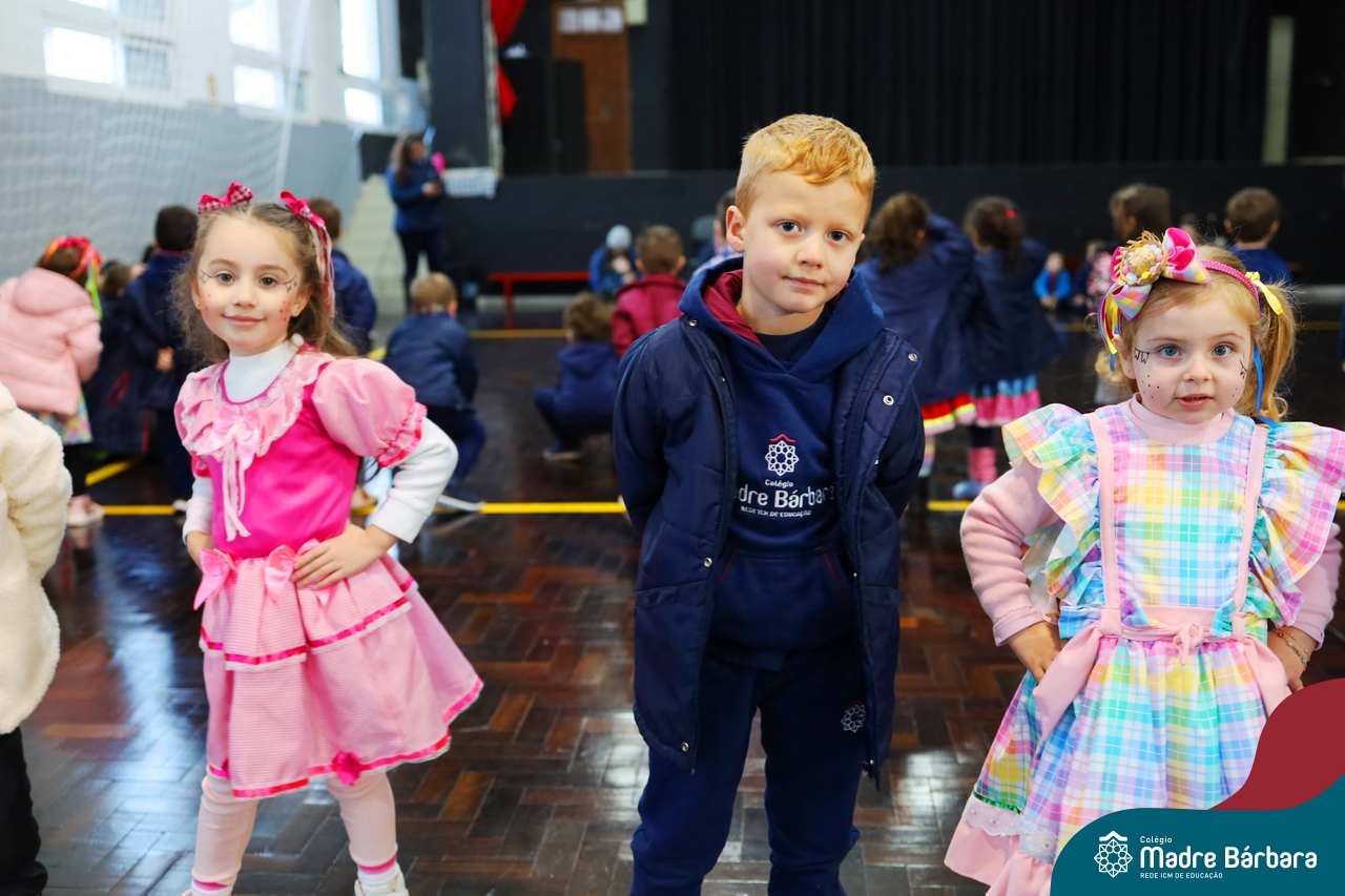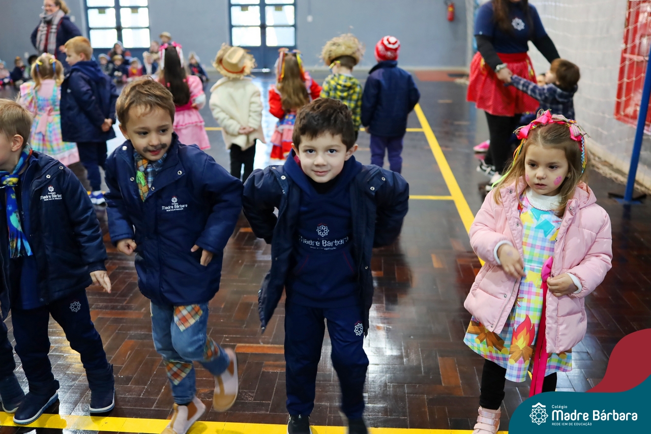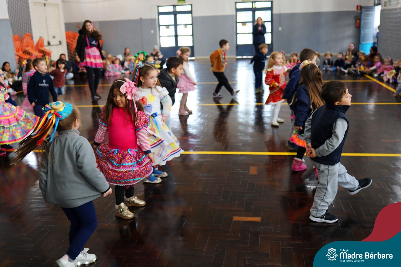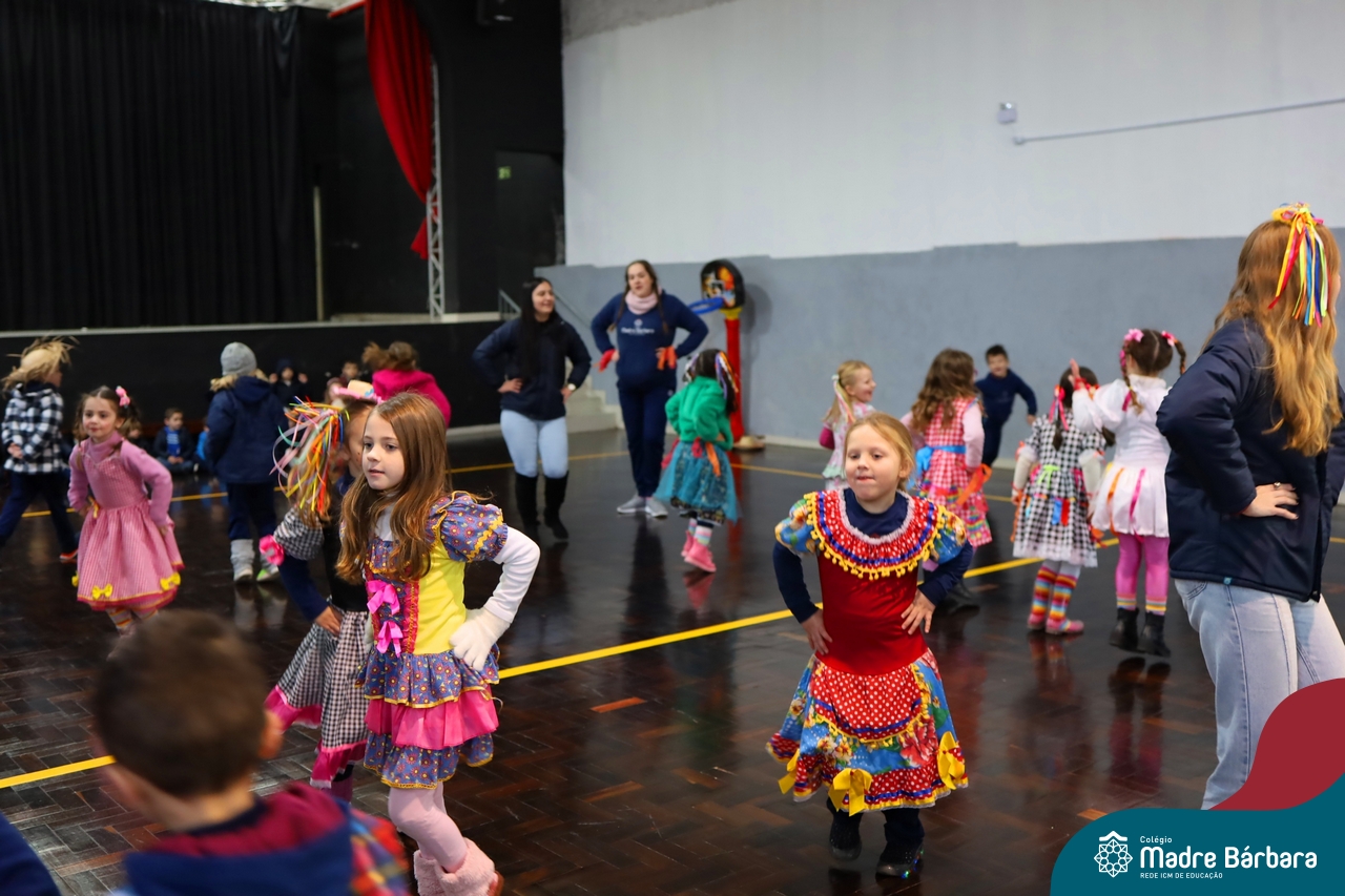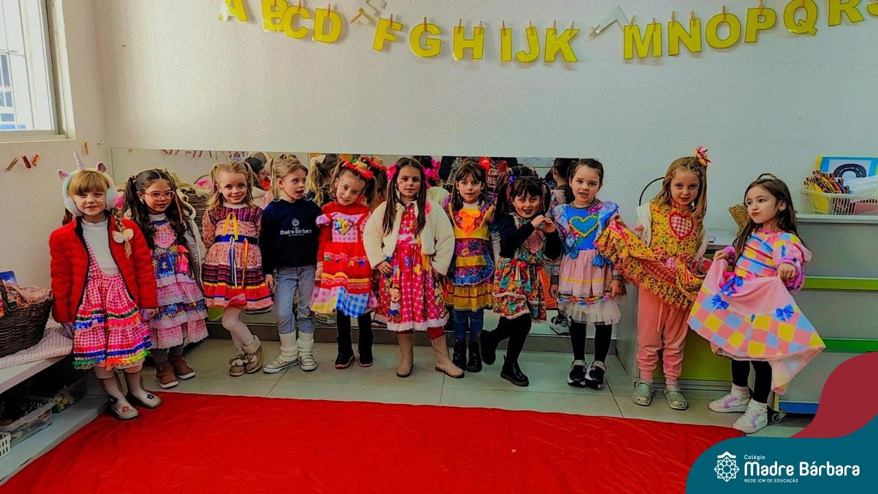 O Dia de São João foi muito celebrado no Colégio Madre Bárbara. Na Educação Infantil, ocorreu uma linda comemoração, cheia de alegria e animação! As crianças dos níveis 4 e 5 encantaram a todos com apresentações de danças juninas. Depois das danças, a festa continuou nas salas e pátios, que ficaram repletas de brincadeiras como pescaria, bola na boca do palhaço, derruba lata, entre outros momentos especiais.