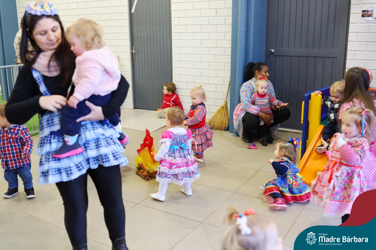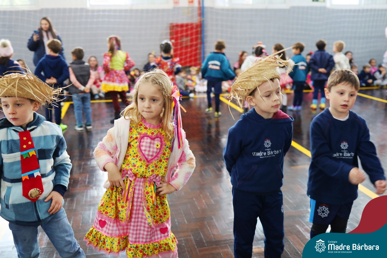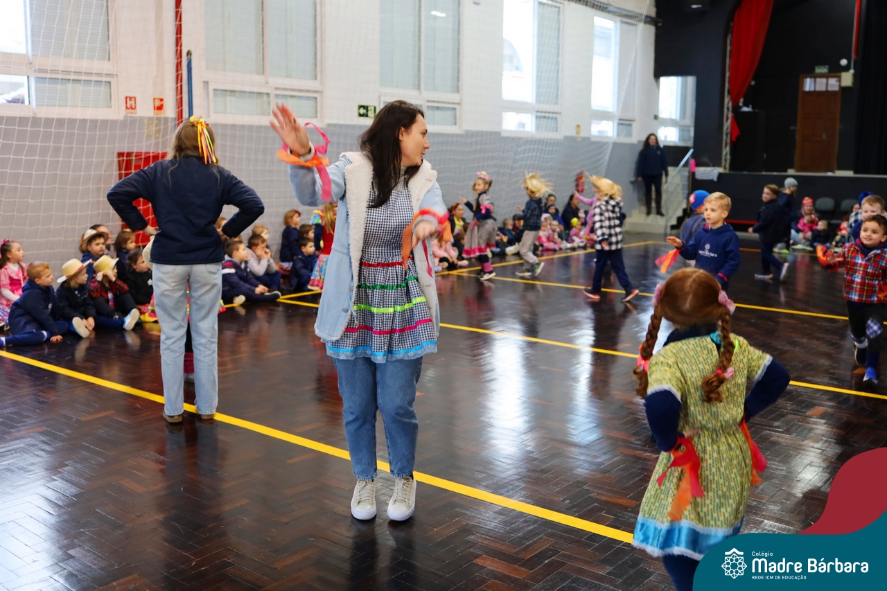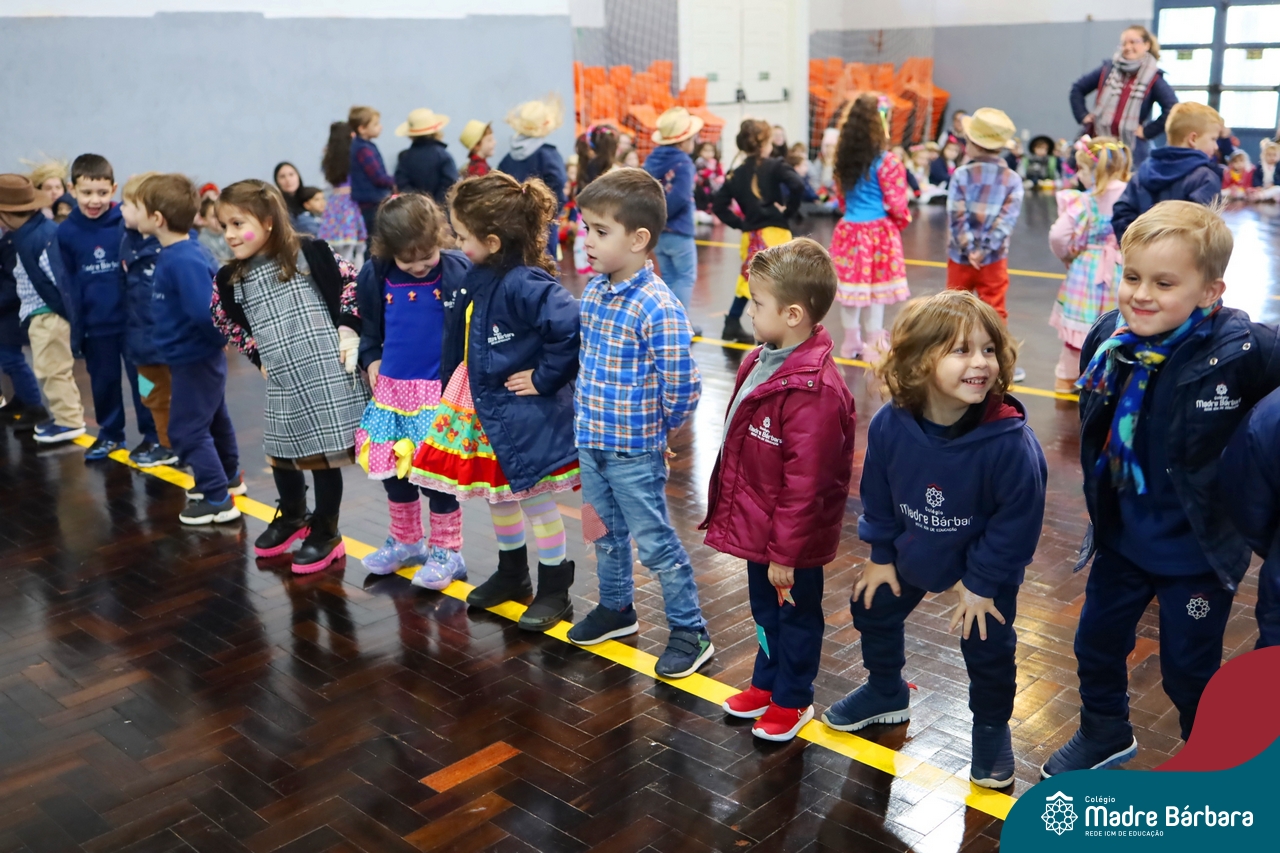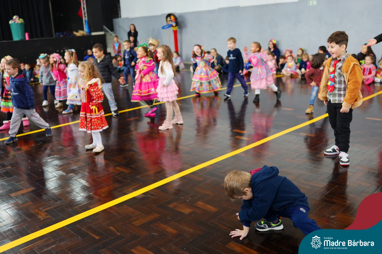 O Dia de São João foi muito celebrado no Colégio Madre Bárbara. Na Educação Infantil, ocorreu uma linda comemoração, cheia de alegria e animação! As crianças dos níveis 4 e 5 encantaram a todos com apresentações de danças juninas. Depois das danças, a festa continuou nas salas e pátios, que ficaram repletas de brincadeiras como pescaria, bola na boca do palhaço, derruba lata, entre outros momentos especiais.