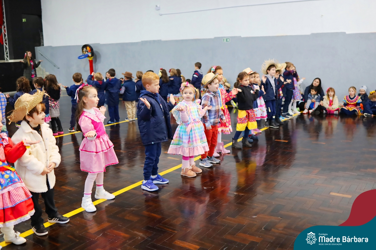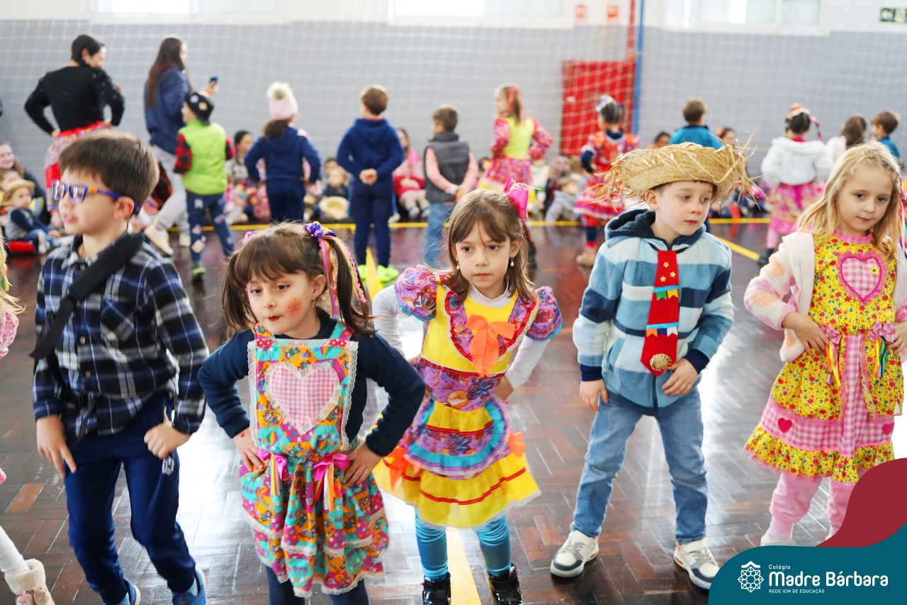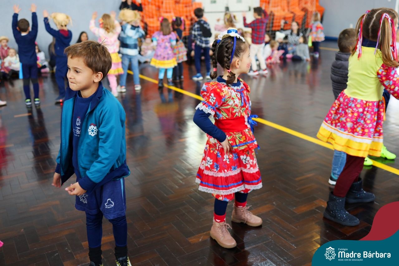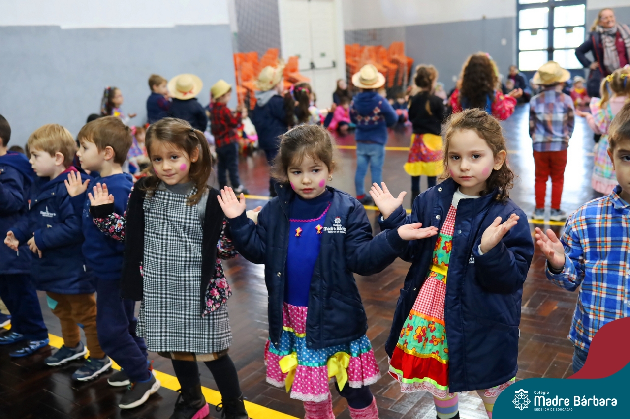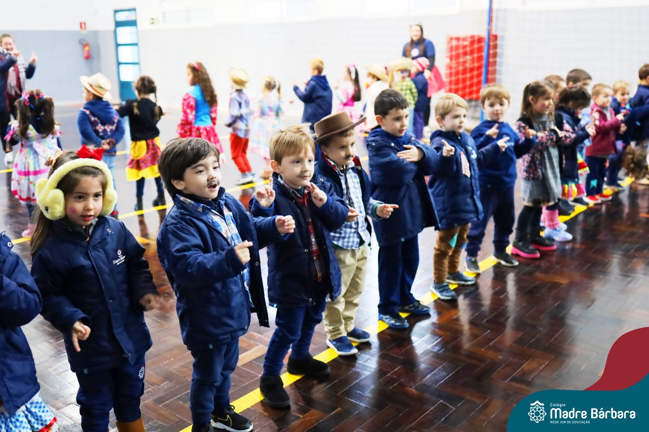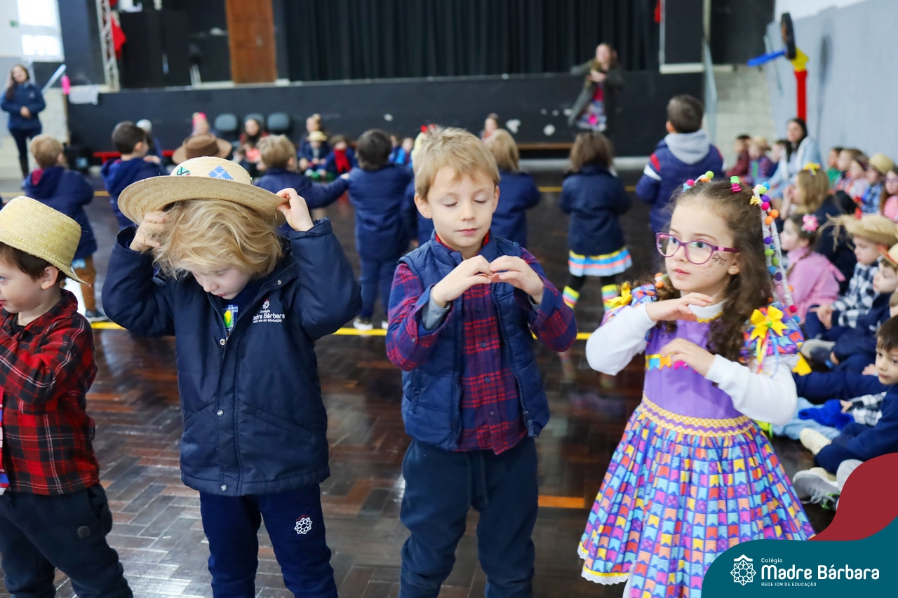 O Dia de São João foi muito celebrado no Colégio Madre Bárbara. Na Educação Infantil, ocorreu uma linda comemoração, cheia de alegria e animação! As crianças dos níveis 4 e 5 encantaram a todos com apresentações de danças juninas. Depois das danças, a festa continuou nas salas e pátios, que ficaram repletas de brincadeiras como pescaria, bola na boca do palhaço, derruba lata, entre outros momentos especiais.