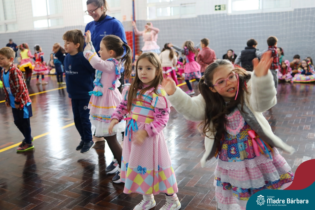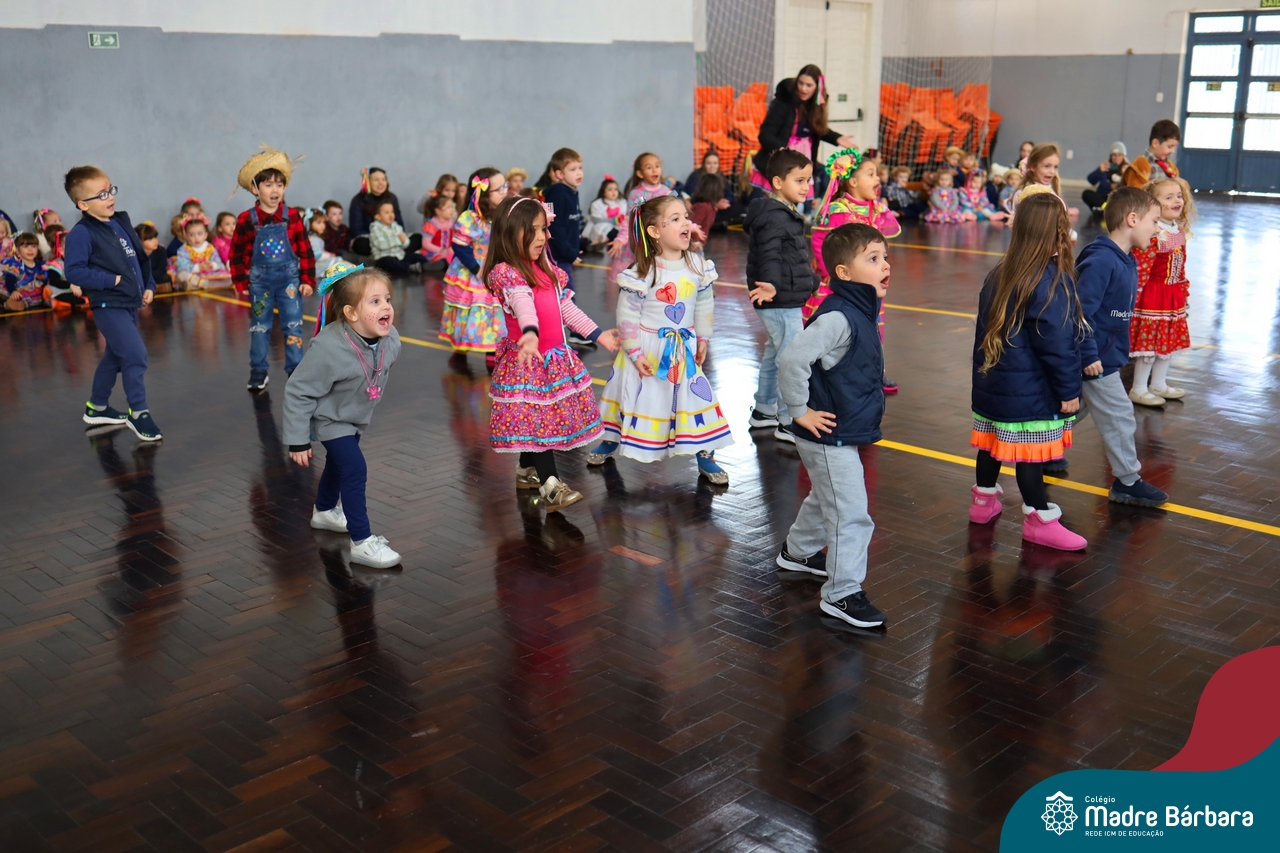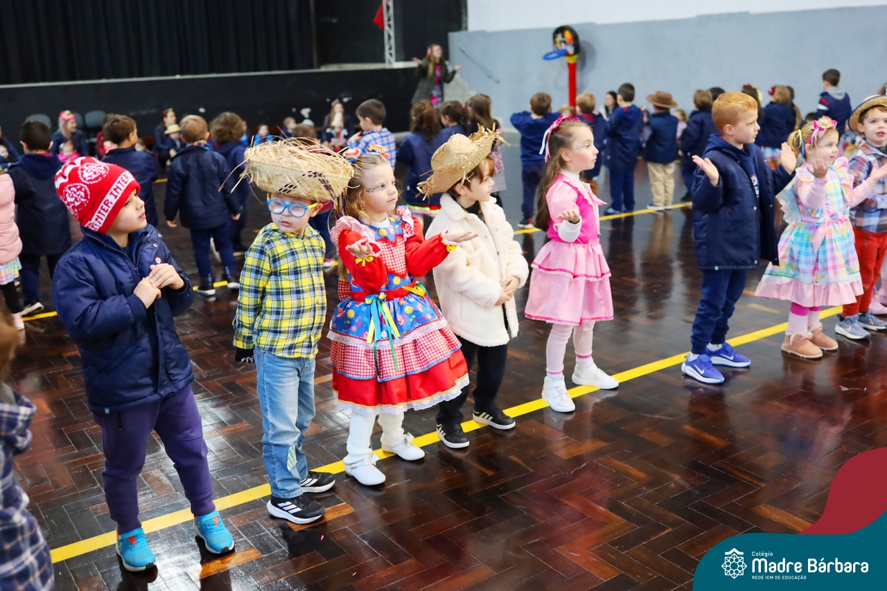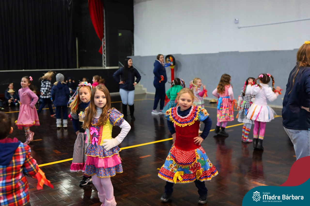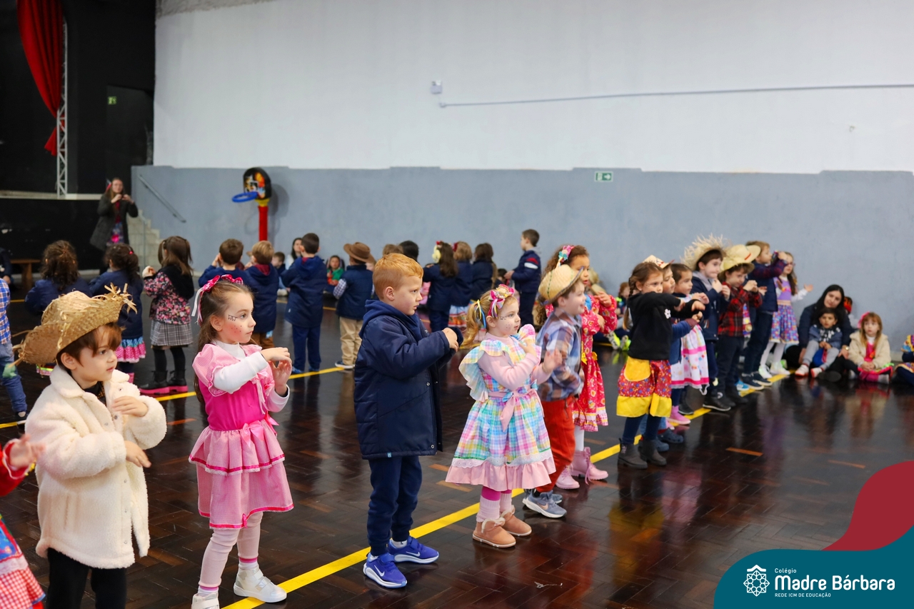 O Dia de São João foi muito celebrado no Colégio Madre Bárbara. Na Educação Infantil, ocorreu uma linda comemoração, cheia de alegria e animação! As crianças dos níveis 4 e 5 encantaram a todos com apresentações de danças juninas. Depois das danças, a festa continuou nas salas e pátios, que ficaram repletas de brincadeiras como pescaria, bola na boca do palhaço, derruba lata, entre outros momentos especiais.