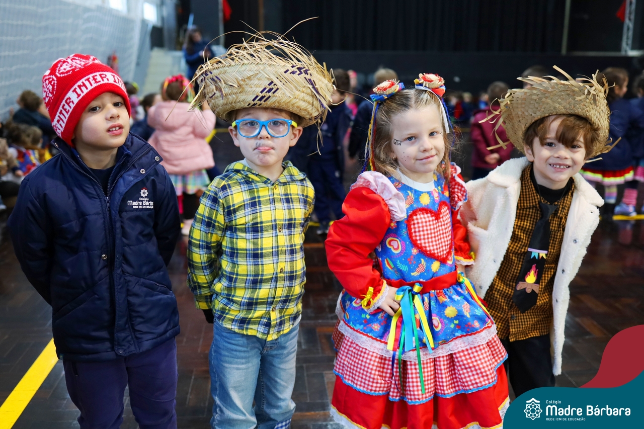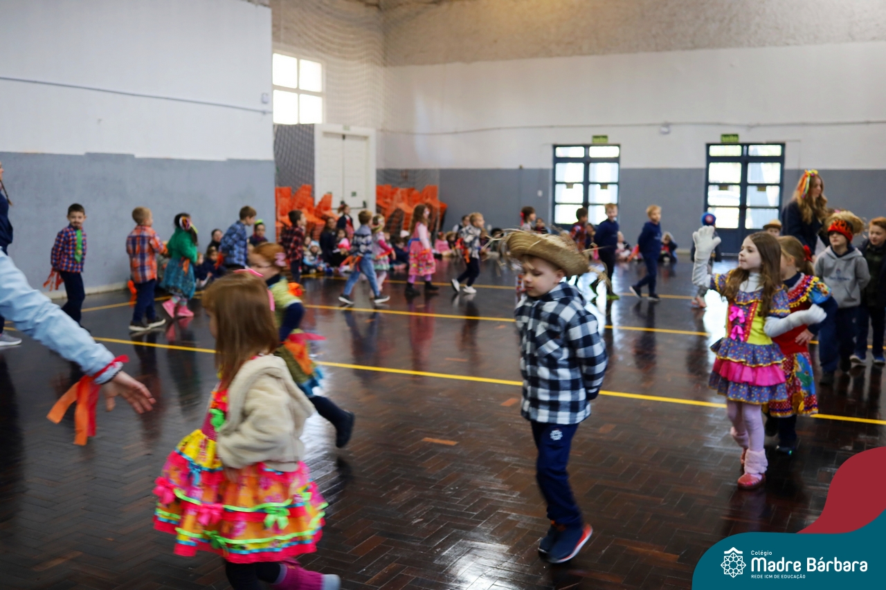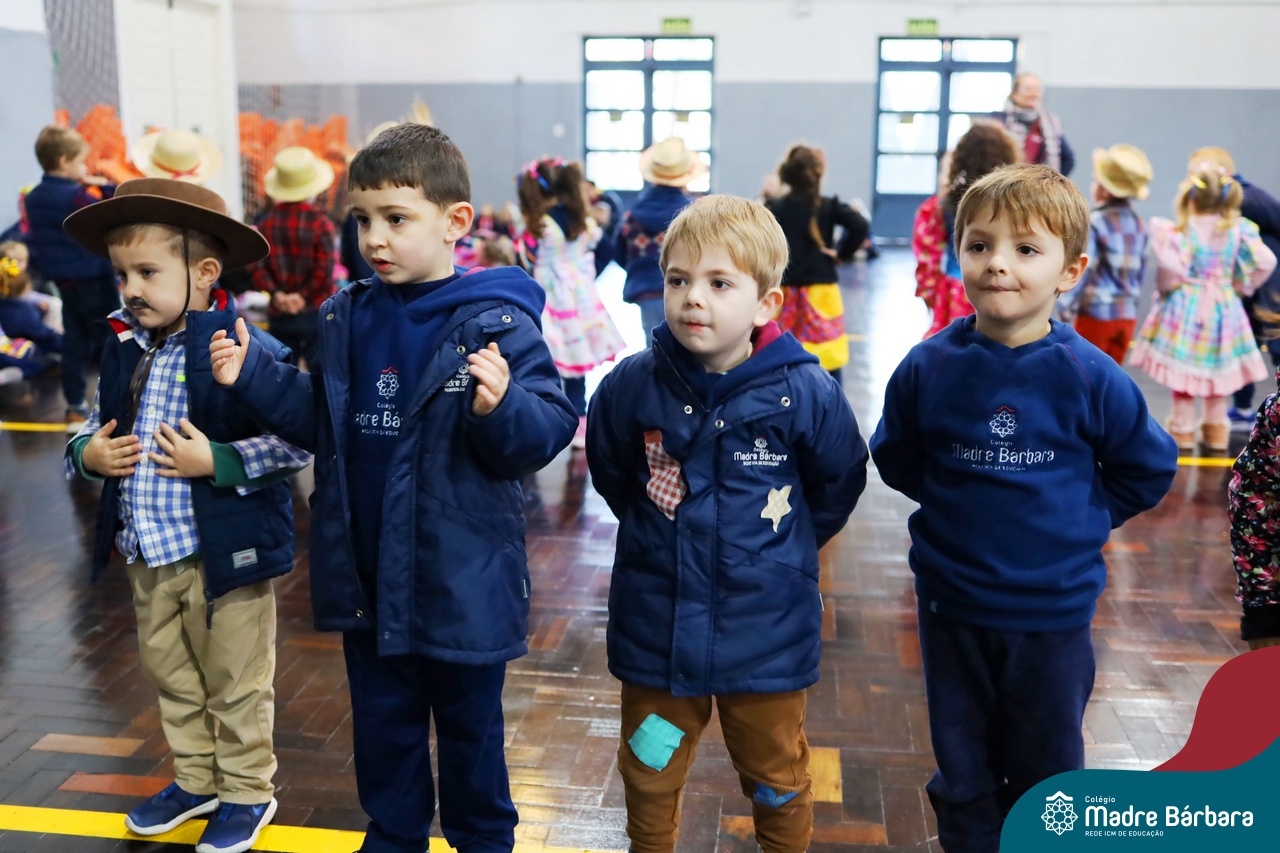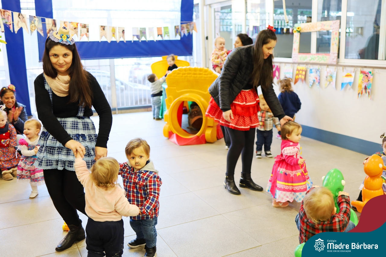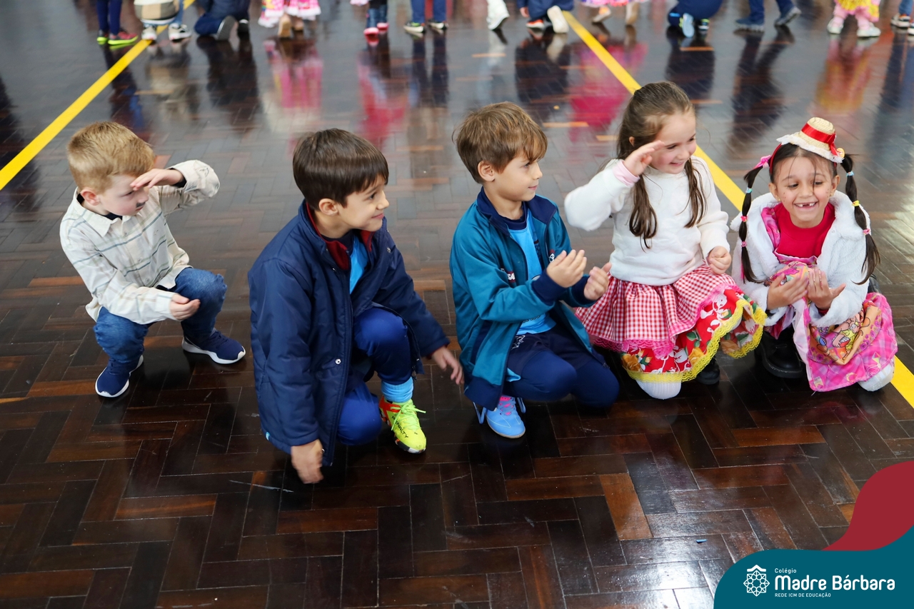O Dia de São João foi muito celebrado no Colégio Madre Bárbara. Na Educação Infantil, ocorreu uma linda comemoração, cheia de alegria e animação! As crianças dos níveis 4 e 5 encantaram a todos com apresentações de danças juninas. Depois das danças, a festa continuou nas salas e pátios, que ficaram repletas de brincadeiras como pescaria, bola na boca do palhaço, derruba lata, entre outros momentos especiais.