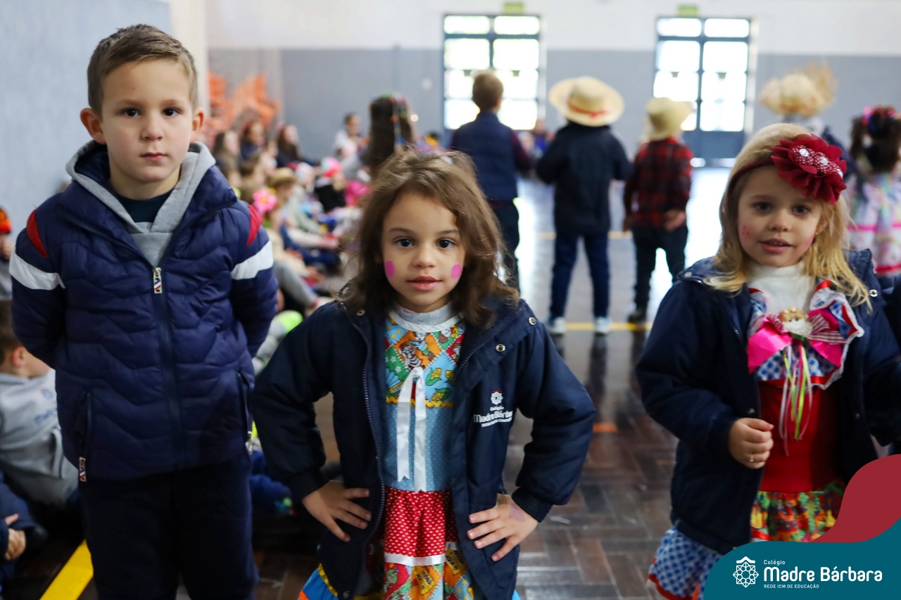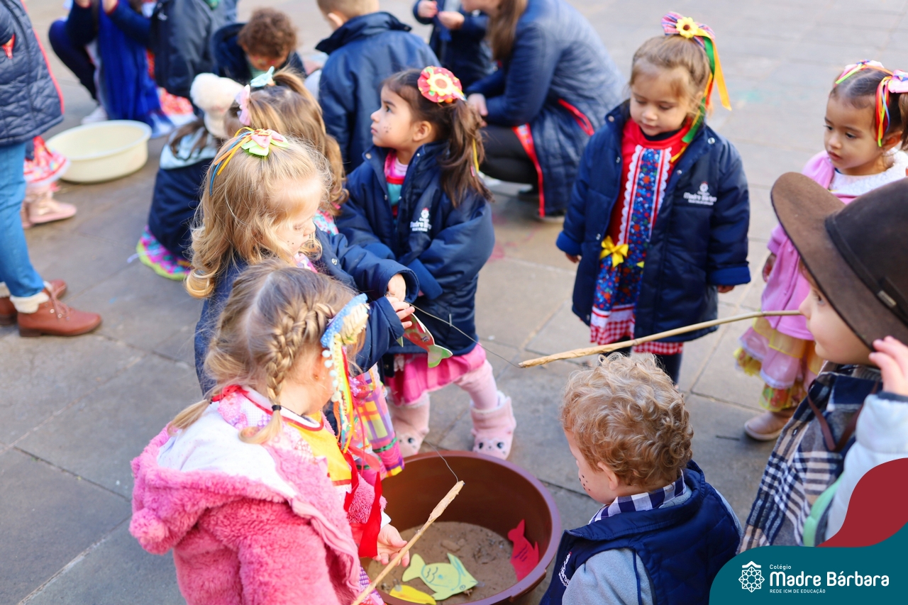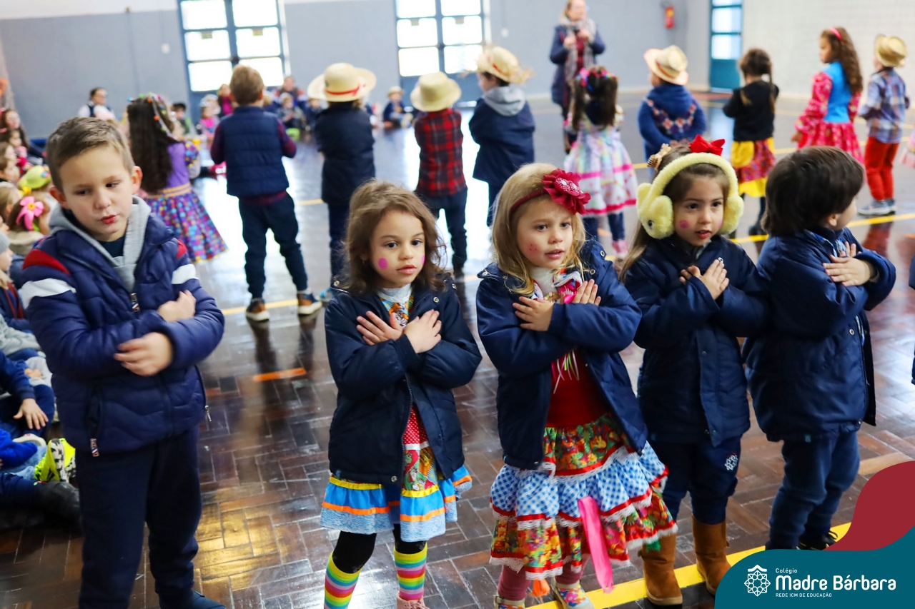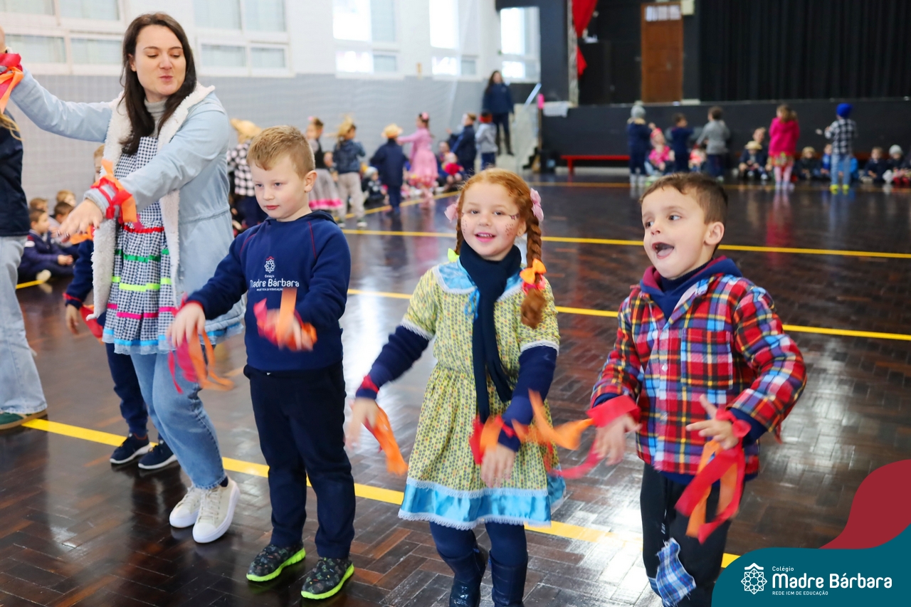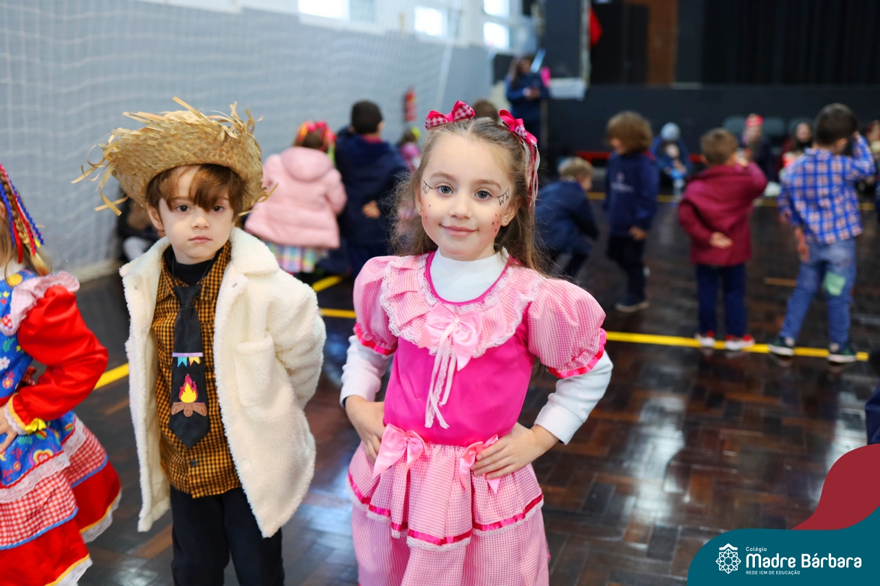 O Dia de São João foi muito celebrado no Colégio Madre Bárbara. Na Educação Infantil, ocorreu uma linda comemoração, cheia de alegria e animação! As crianças dos níveis 4 e 5 encantaram a todos com apresentações de danças juninas. Depois das danças, a festa continuou nas salas e pátios, que ficaram repletas de brincadeiras como pescaria, bola na boca do palhaço, derruba lata, entre outros momentos especiais.
