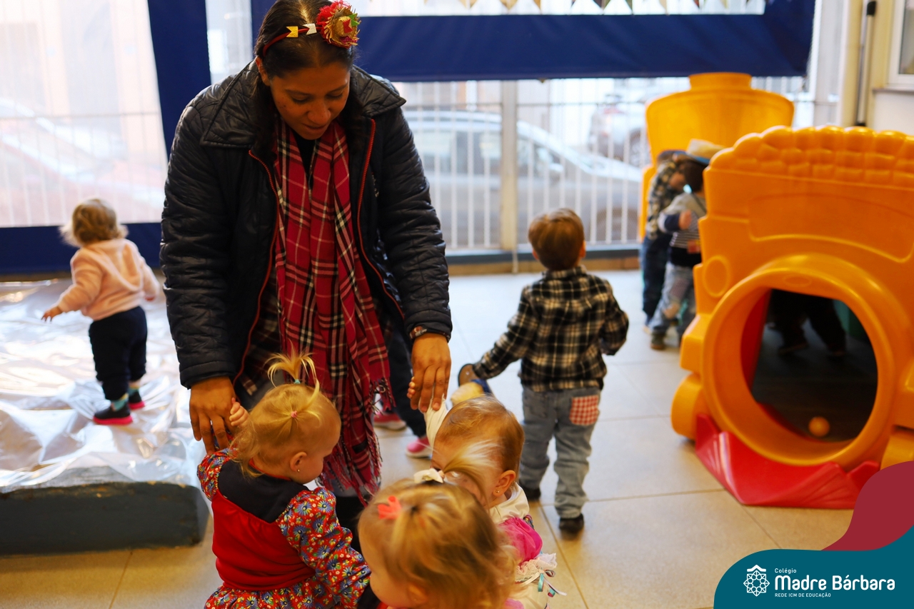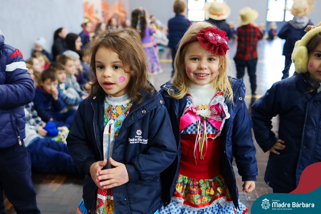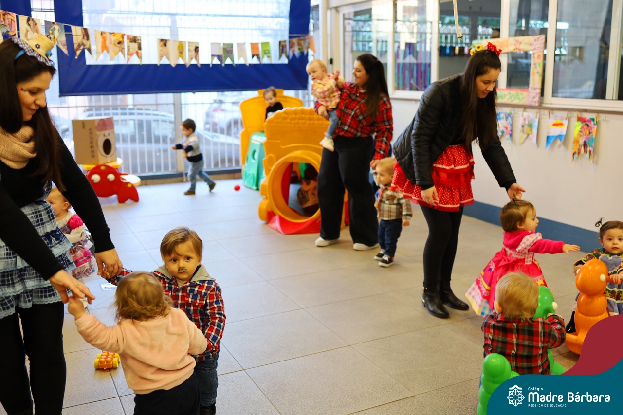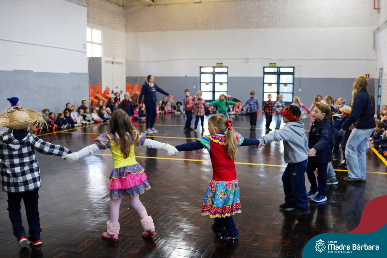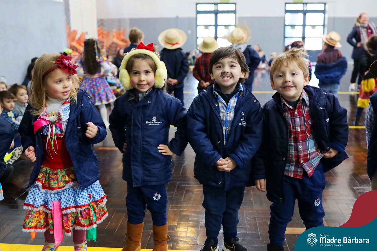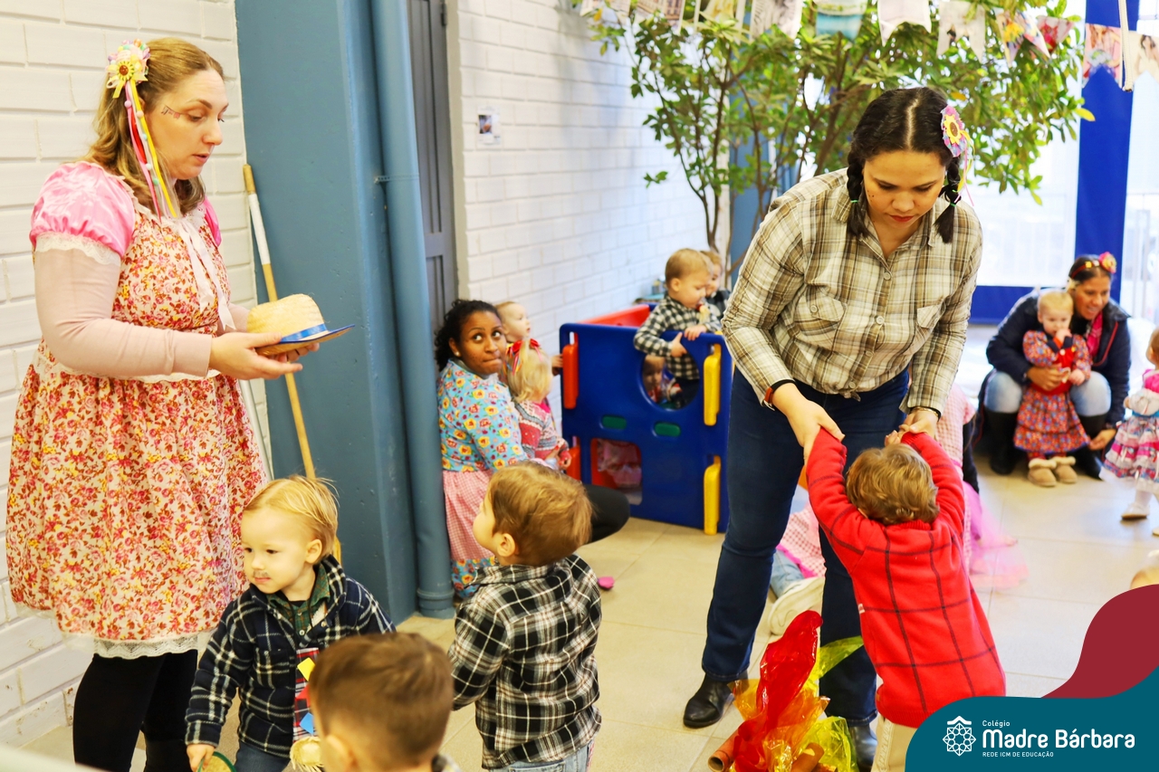 O Dia de São João foi muito celebrado no Colégio Madre Bárbara. Na Educação Infantil, ocorreu uma linda comemoração, cheia de alegria e animação! As crianças dos níveis 4 e 5 encantaram a todos com apresentações de danças juninas. Depois das danças, a festa continuou nas salas e pátios, que ficaram repletas de brincadeiras como pescaria, bola na boca do palhaço, derruba lata, entre outros momentos especiais.