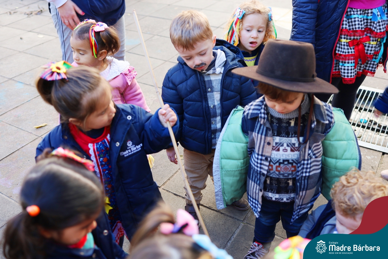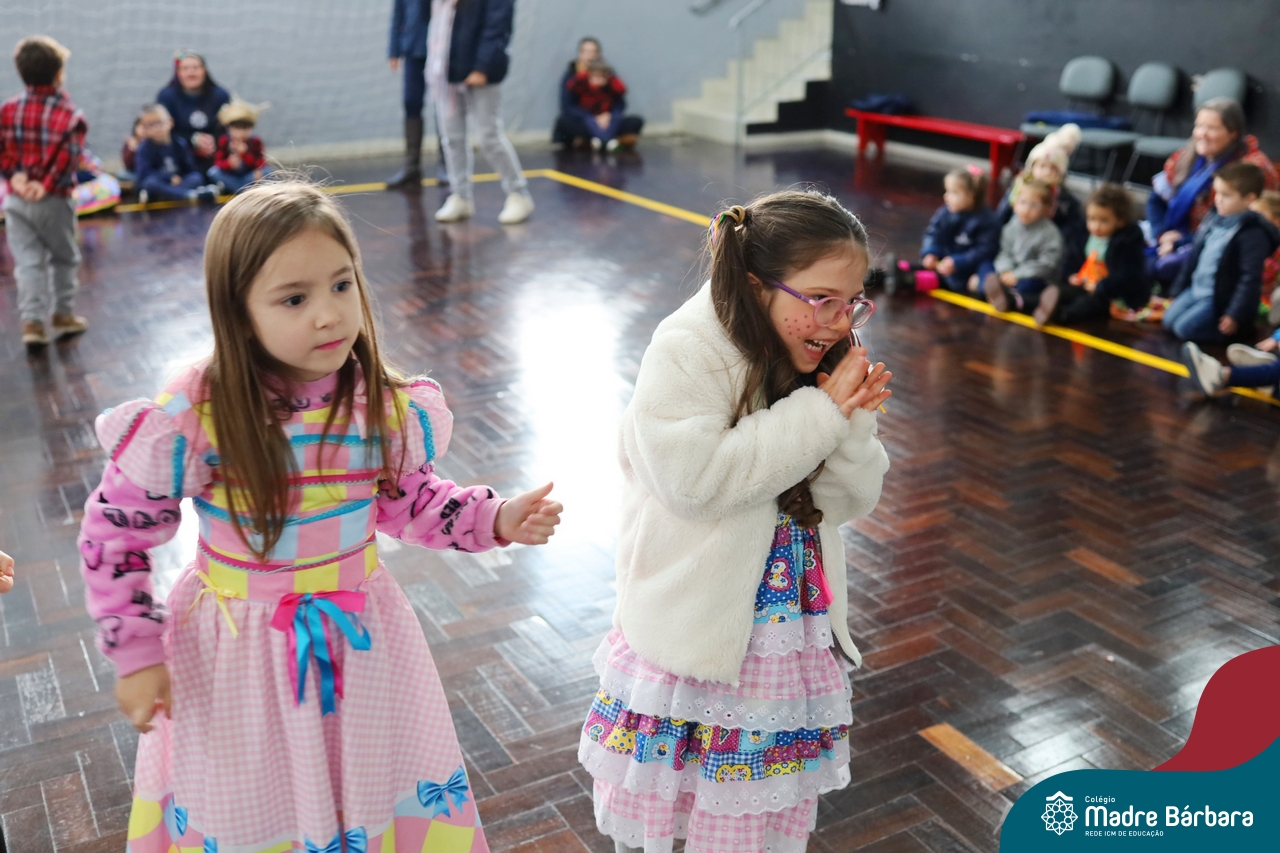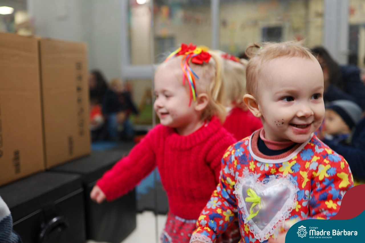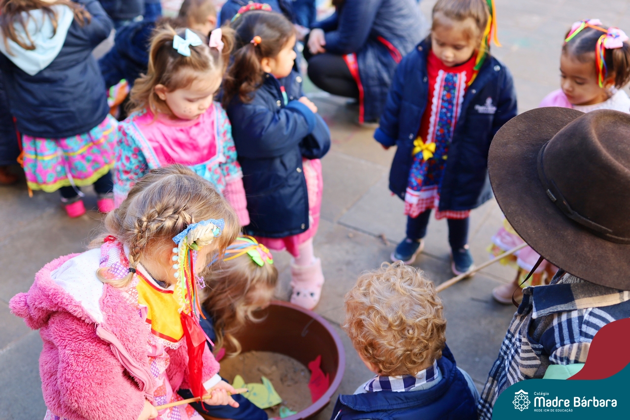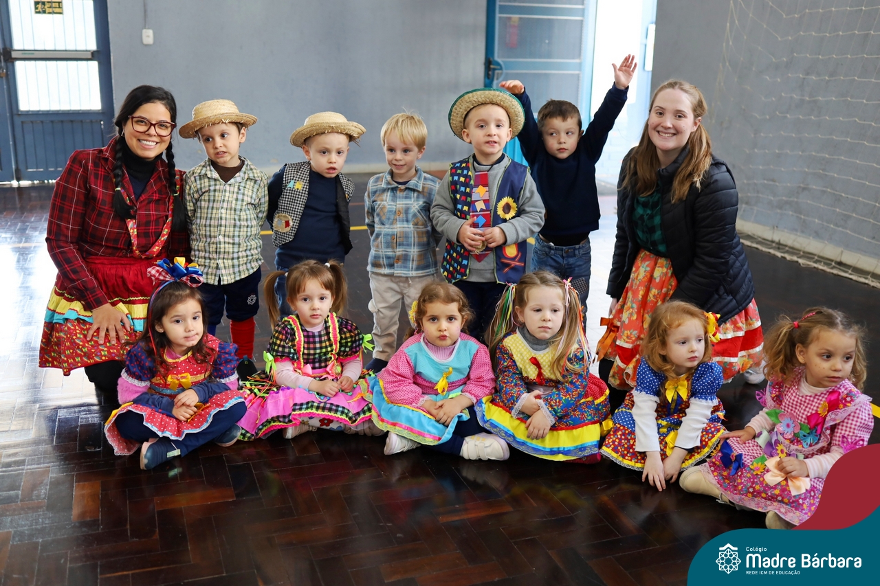 O Dia de São João foi muito celebrado no Colégio Madre Bárbara. Na Educação Infantil, ocorreu uma linda comemoração, cheia de alegria e animação! As crianças dos níveis 4 e 5 encantaram a todos com apresentações de danças juninas. Depois das danças, a festa continuou nas salas e pátios, que ficaram repletas de brincadeiras como pescaria, bola na boca do palhaço, derruba lata, entre outros momentos especiais.