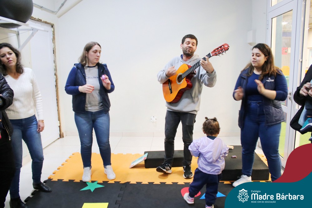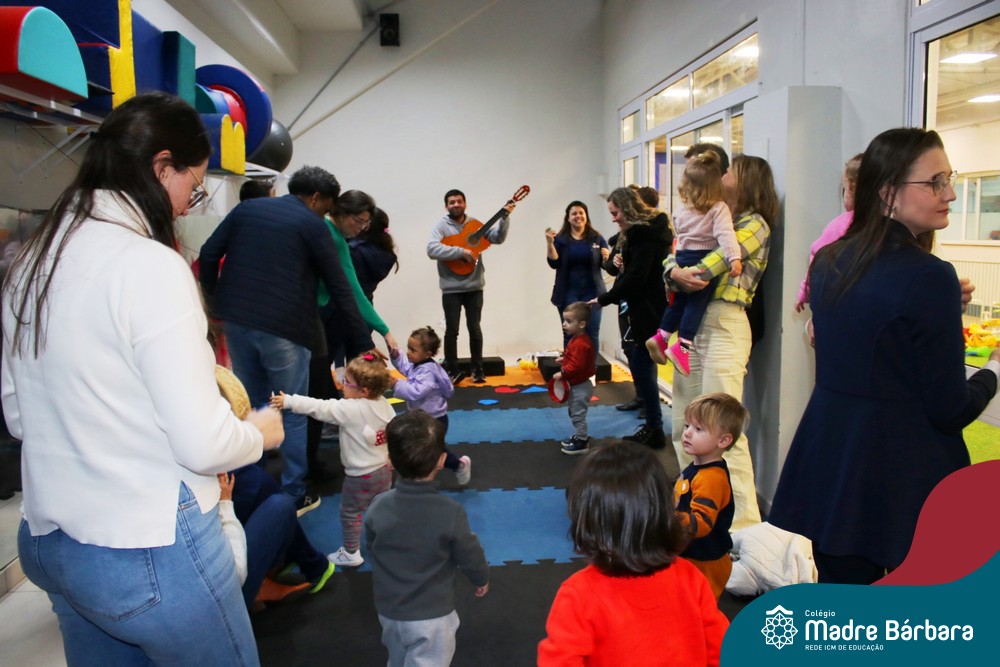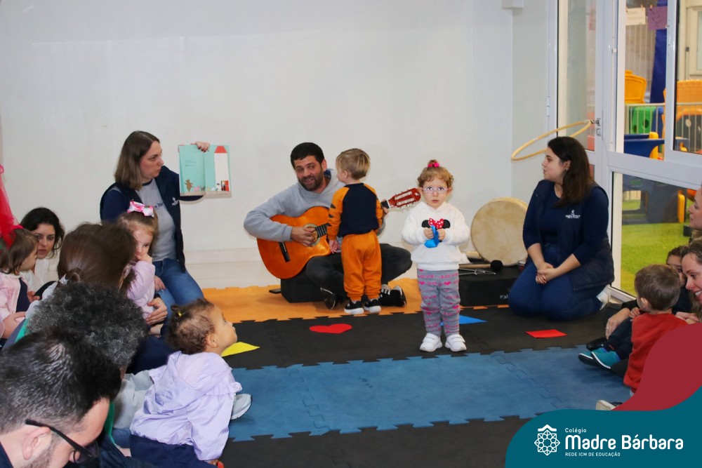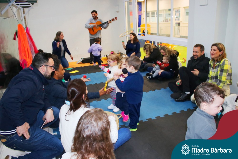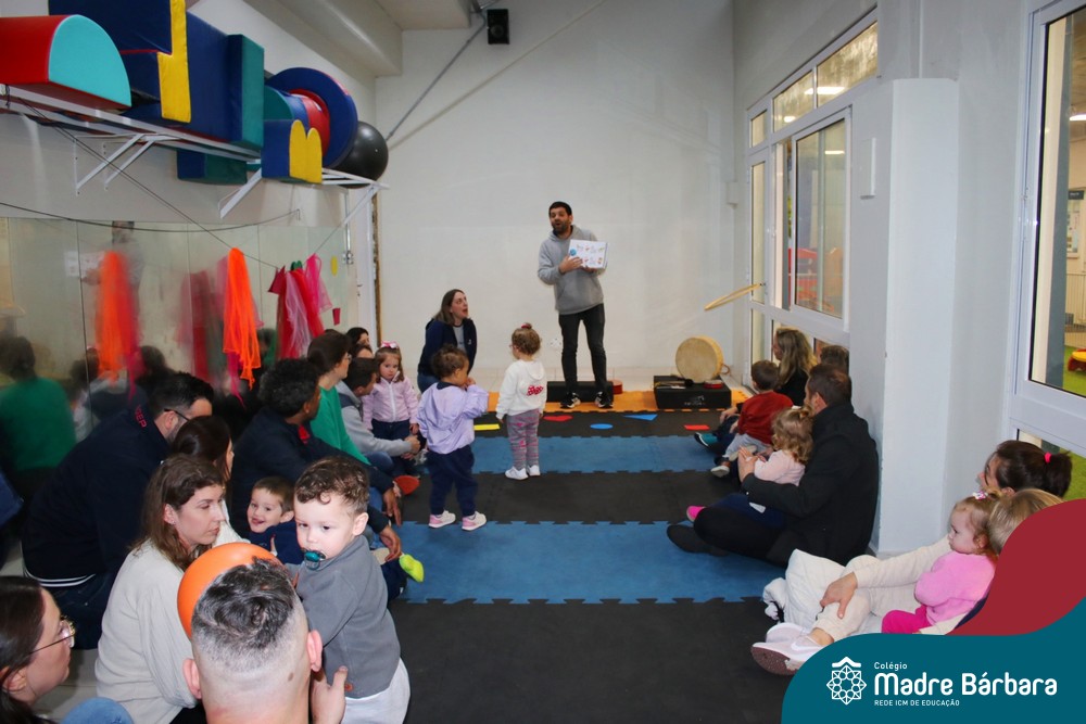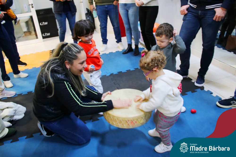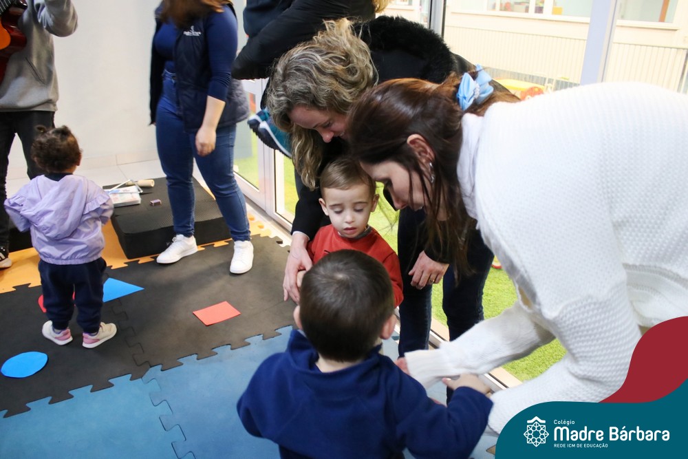 No finalzinho da tarde da última terça-feira, 16.07, as crianças do Nível 1E professoras e o professor de música, receberam suas famílias para um momento muito especial: uma VIVÊNCIA MUSICAL. Todos foram envolvidos em músicas, histórias e instrumentos musicais que integraram e encantaram, a partir do ritmo, da sonoridade e do movimento corporal! Não precisamos dizer que a grande atração foi observar o envolvimento das crianças, cada uma do seu jeitinho. Esta vivência e muitas outras, integram o projeto “Matematicando no 1E”.