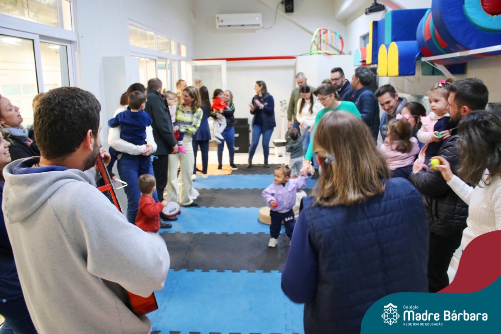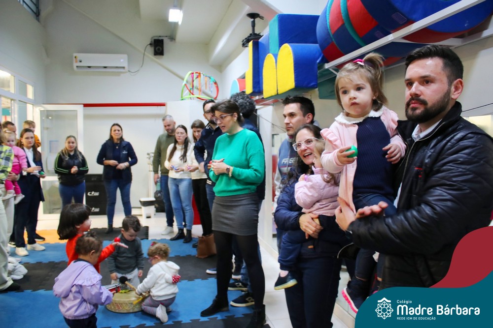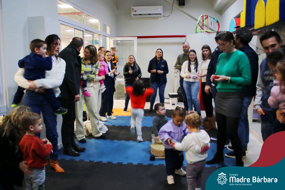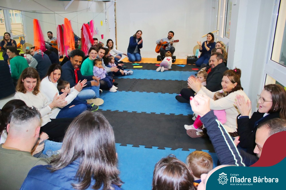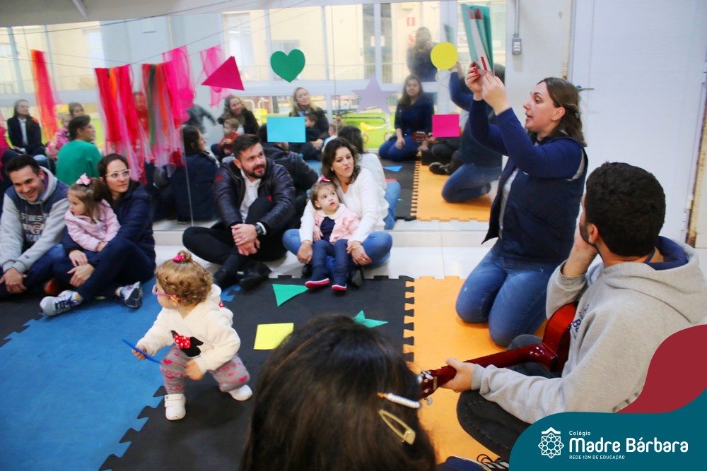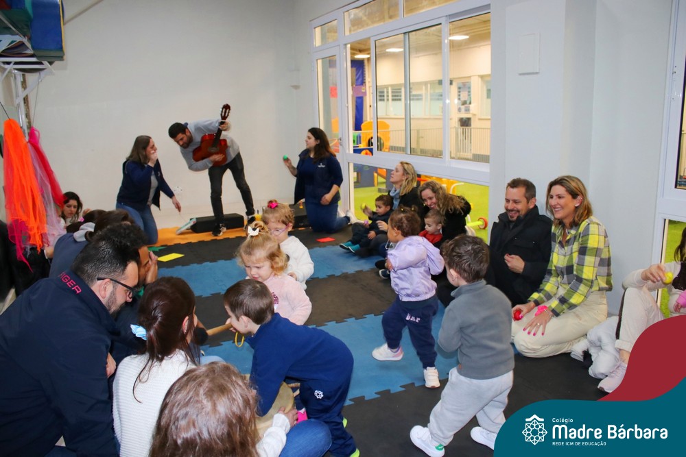 No finalzinho da tarde da última terça-feira, 16.07, as crianças do Nível 1E professoras e o professor de música, receberam suas famílias para um momento muito especial: uma VIVÊNCIA MUSICAL. Todos foram envolvidos em músicas, histórias e instrumentos musicais que integraram e encantaram, a partir do ritmo, da sonoridade e do movimento corporal! Não precisamos dizer que a grande atração foi observar o envolvimento das crianças, cada uma do seu jeitinho. Esta vivência e muitas outras, integram o projeto “Matematicando no 1E”.