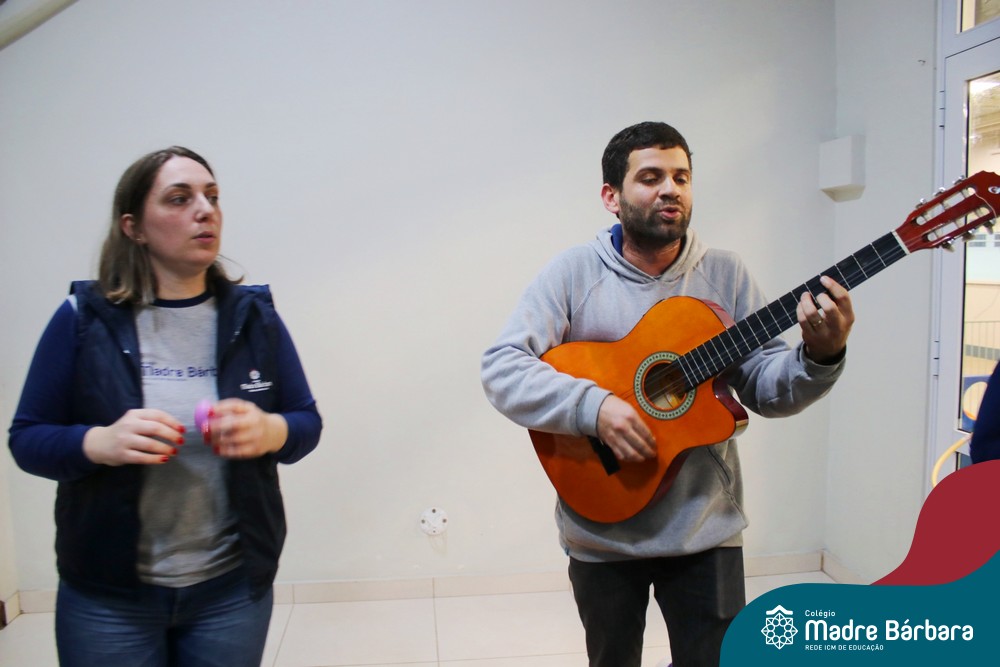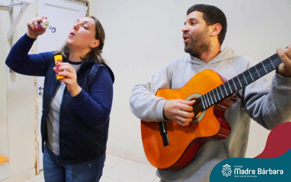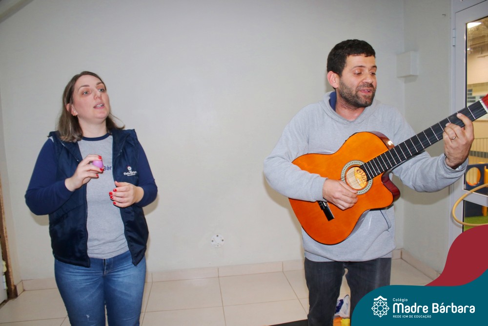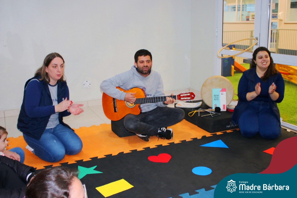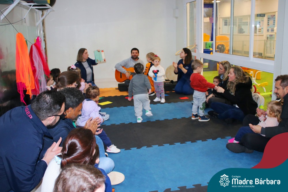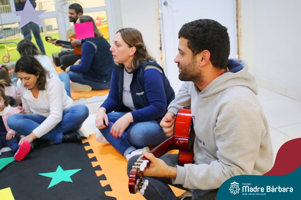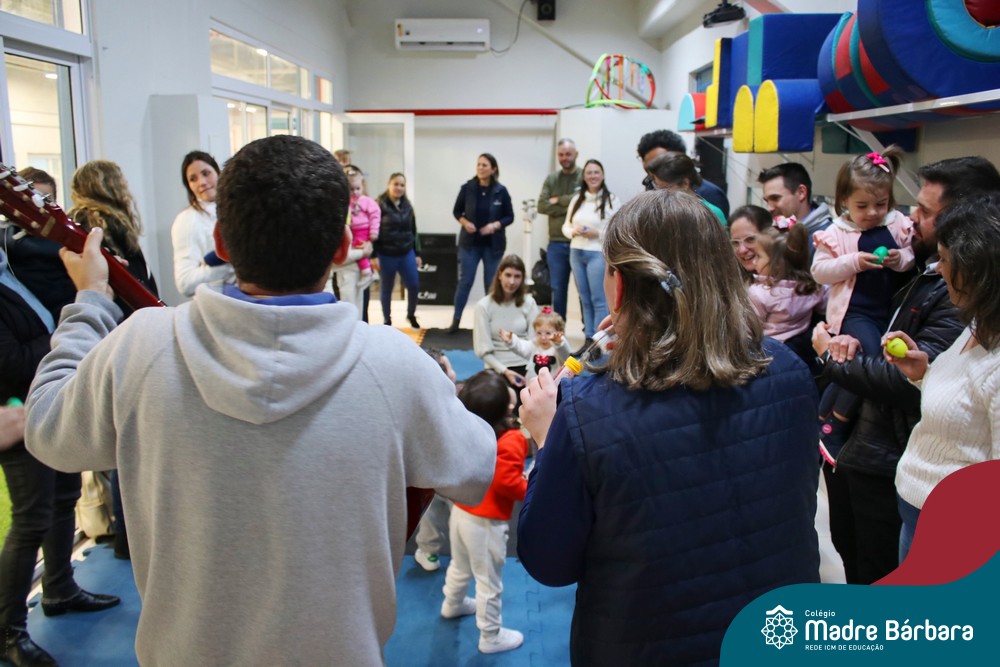 No finalzinho da tarde da última terça-feira, 16.07, as crianças do Nível 1E professoras e o professor de música, receberam suas famílias para um momento muito especial: uma VIVÊNCIA MUSICAL. Todos foram envolvidos em músicas, histórias e instrumentos musicais que integraram e encantaram, a partir do ritmo, da sonoridade e do movimento corporal! Não precisamos dizer que a grande atração foi observar o envolvimento das crianças, cada uma do seu jeitinho. Esta vivência e muitas outras, integram o projeto “Matematicando no 1E”.
