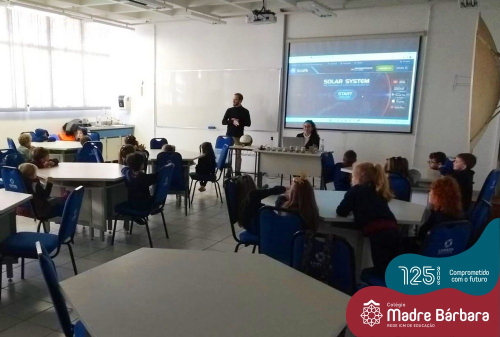 Na tarde do dia 30 de Junho a turma Nível 4D Da Educação Infantil realizou uma visita ao Planetário da Univates para conhecer o espaço e também para participar de uma oficina. Foram abordados temas como fenômenos astronômicos, o Sistema Solar, astros celestes, entre outros. As crianças, acompanhadas pela professora Fabiani e monitoras Cristiane e Daniely, vivenciaram situações de aprendizagem diferentes, agregando mais conhecimentos ao projeto “3…2…1…decolar! Uma viagem pelo universo!”, que está em desenvolvimento na turma.