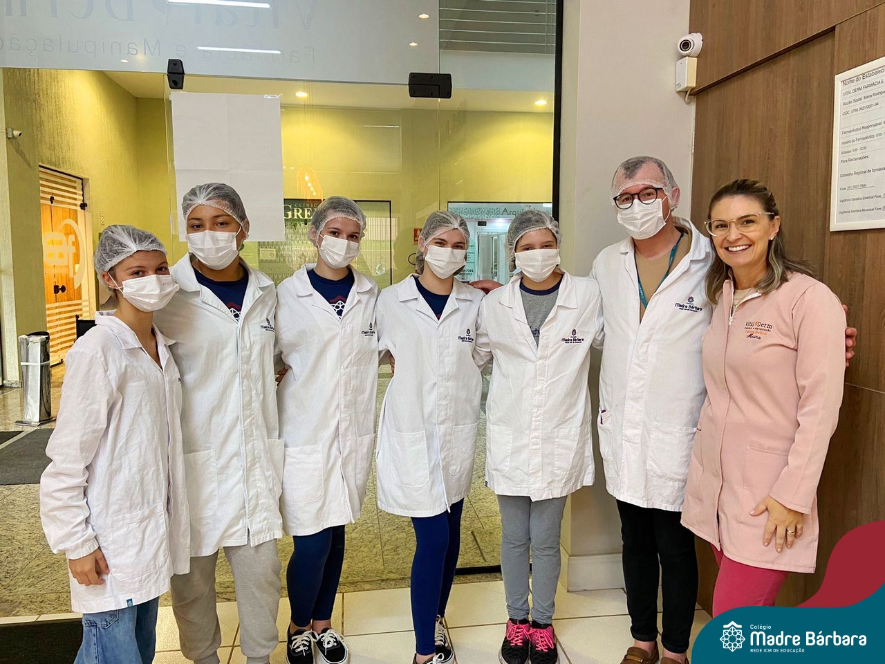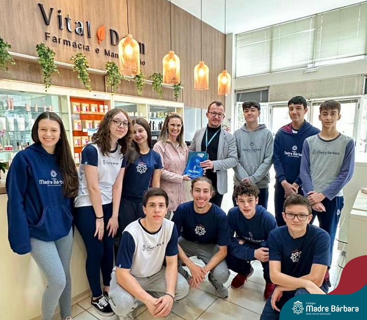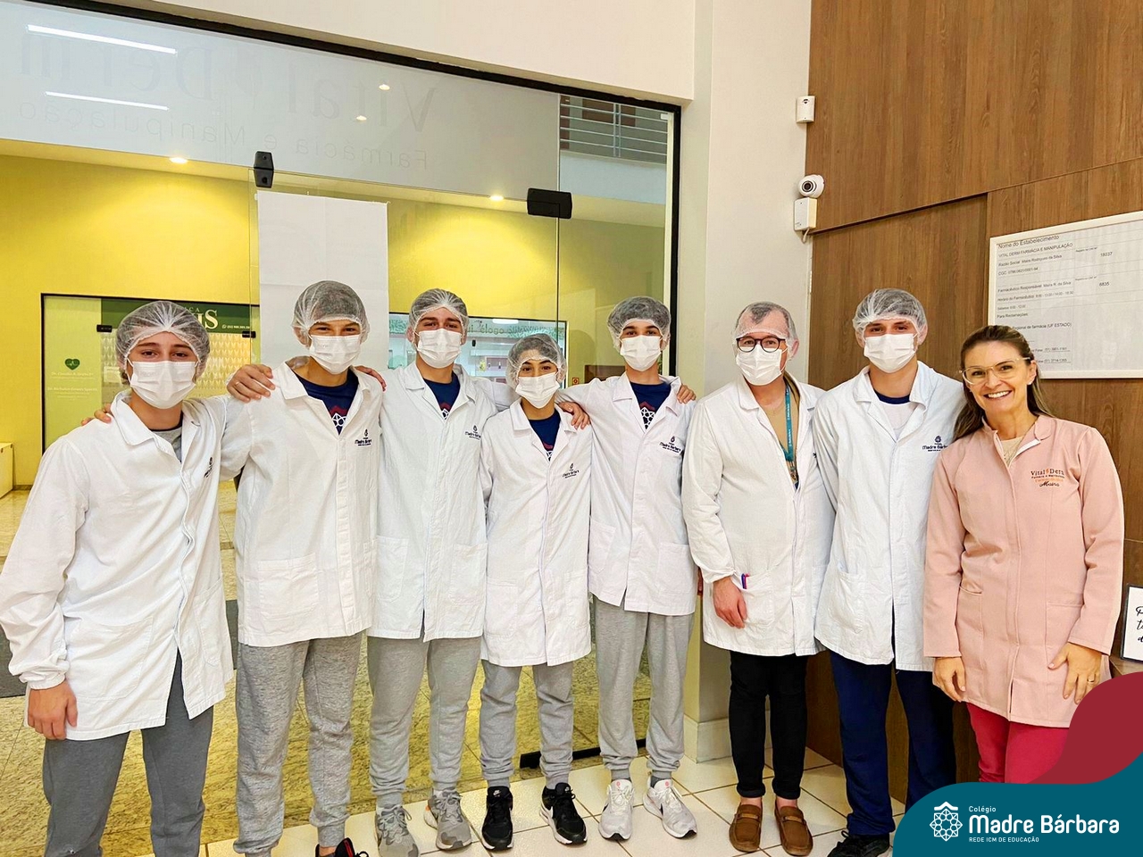 Os estudantes do itinerário Formativo Investigação Científica: da Cosmetologia à Farmácia, conhecem! Com o objetivo de demonstrar na prática, os conceitos teóricos estudados em sala de aula, os estudantes da 1ª série do Novo Ensino Médio conheceram todas as etapas envolvidas no controle de qualidade e na manipulação de cosméticos e de fármacos, desde a aquisição da matéria prima até o produto final, desenvolvidos pela Vital Derm. A proposta é desenvolvida pelo professor Aliar Jung.
