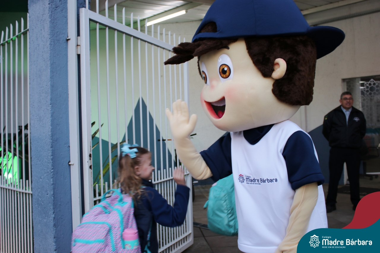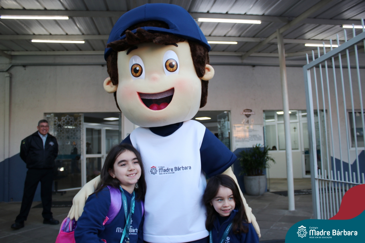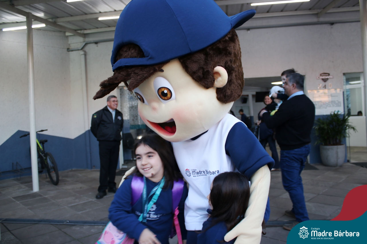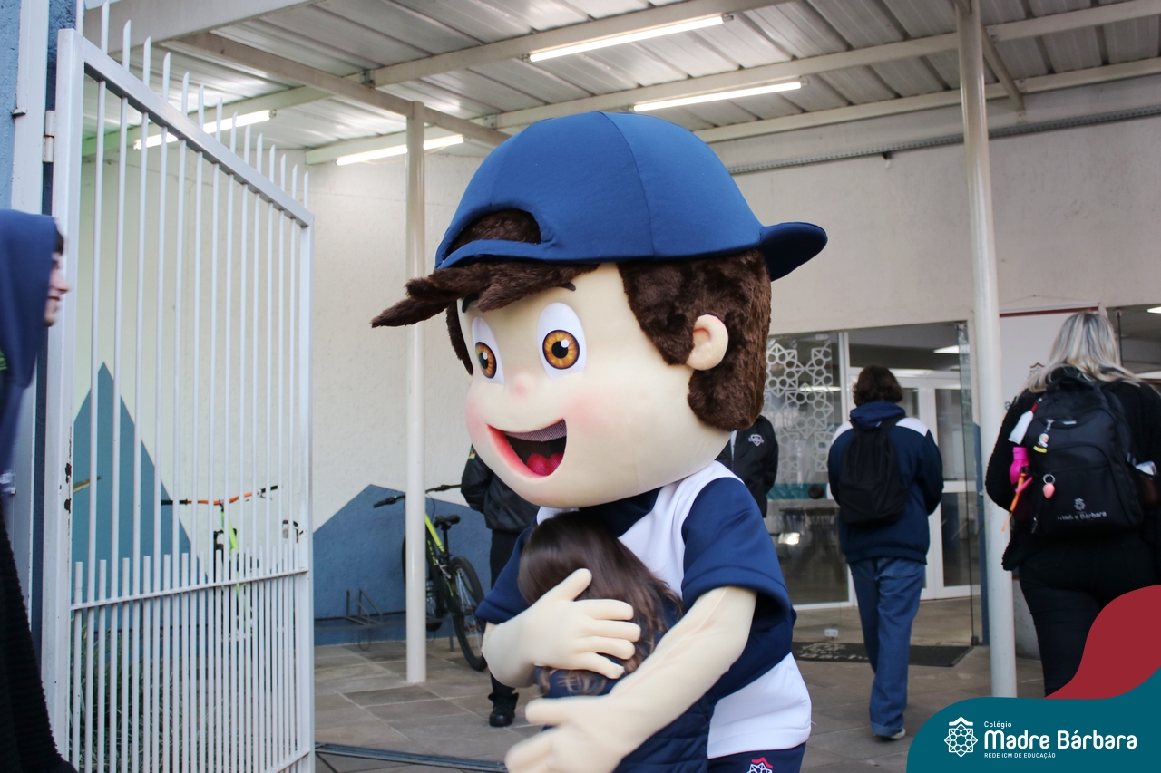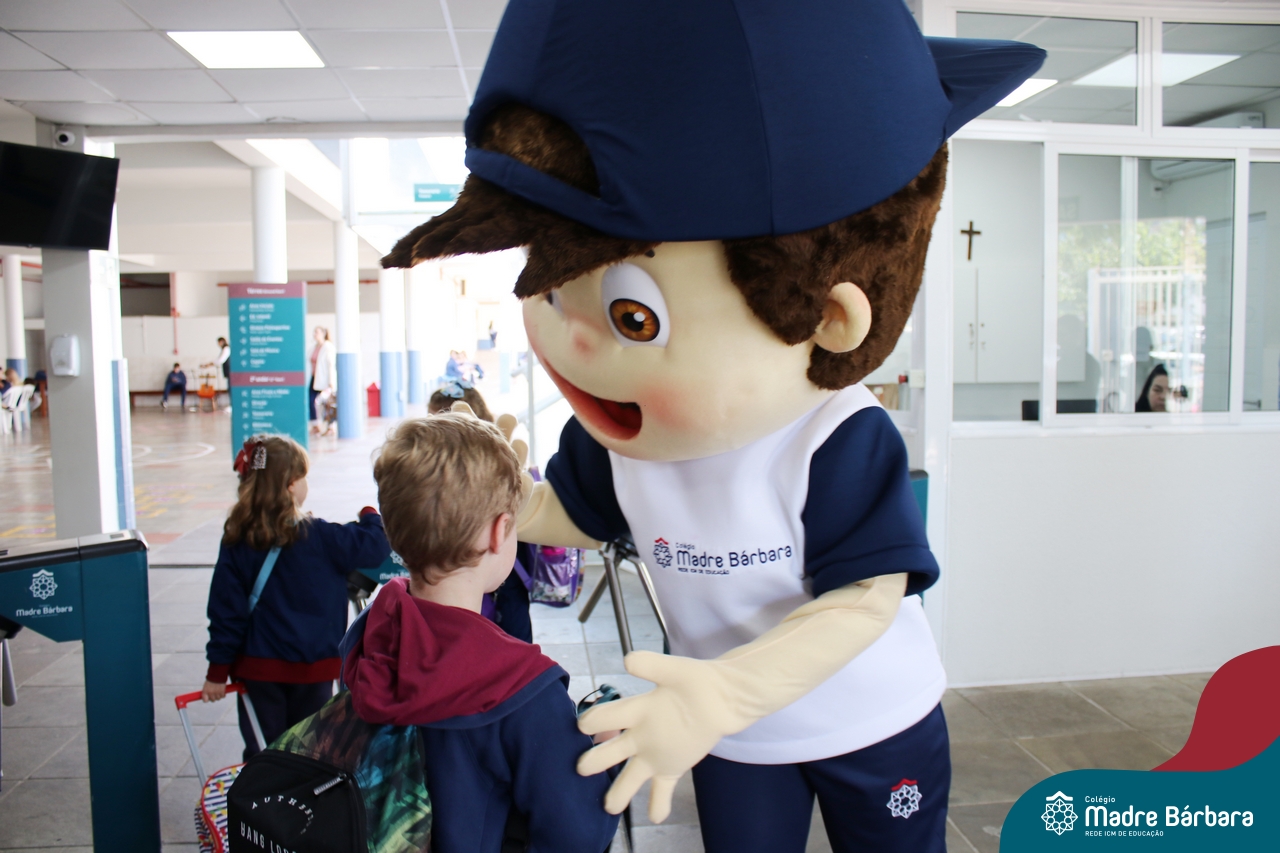 A segunda-feira (31.07) foi dia de retorno às aulas no Colégio Madre Bárbara – Rede ICM. Os estudantes foram recepcionados pelo novo Mascote, que a partir de agora, estará presente nos eventos e atividades da instituição, animando e divertindo os estudantes e famílias. O Mascote, ainda não tem nome! Em breve, será lançado um desafio com com a comunidade escolar para um processo de seleção com sugestões de nomes/significados para ele. Bem-vindo, Mascote! Com certeza serás muito bem acolhido pela Família Madre Bárbara.