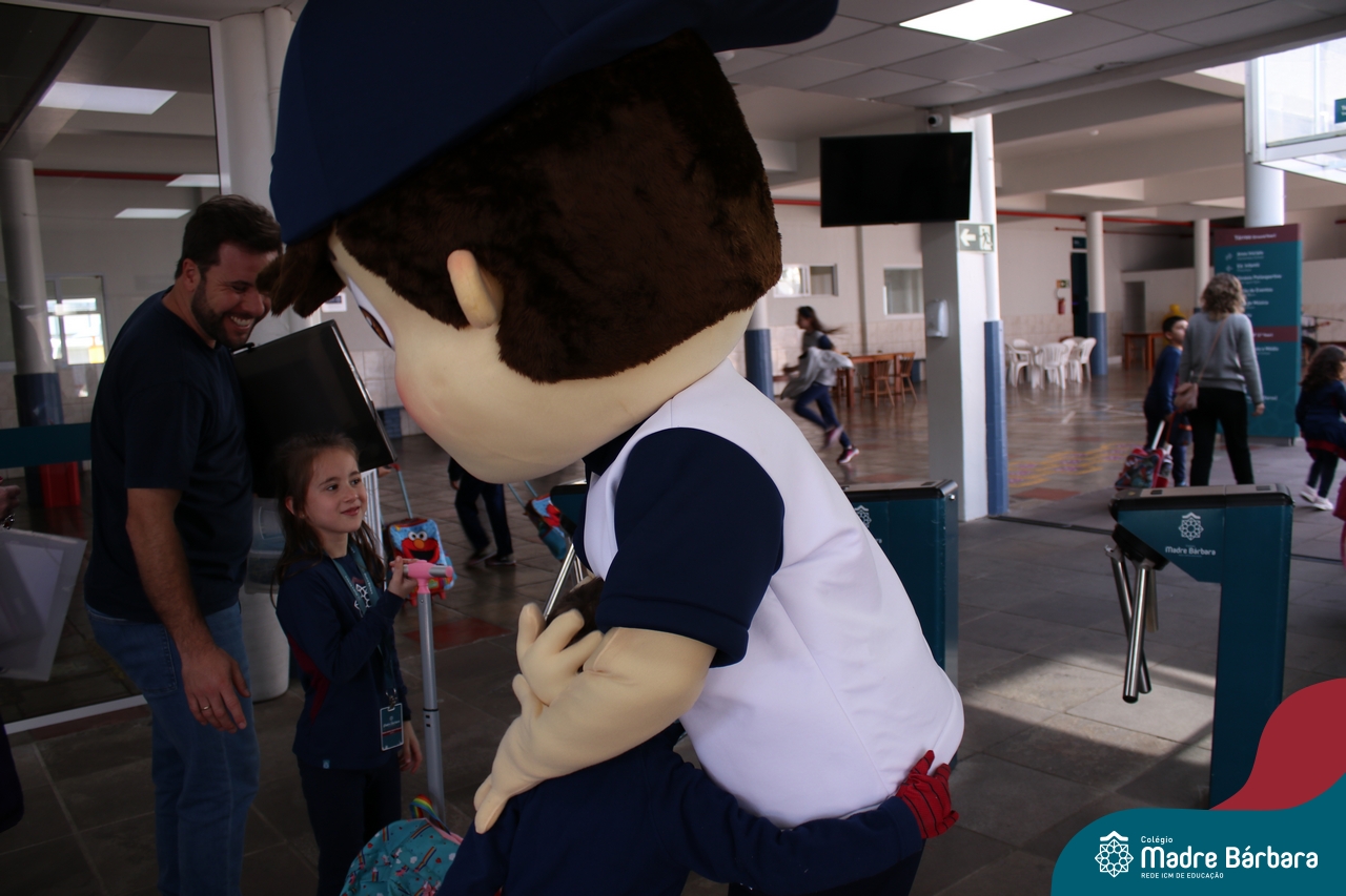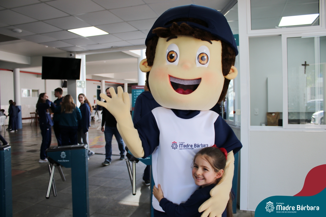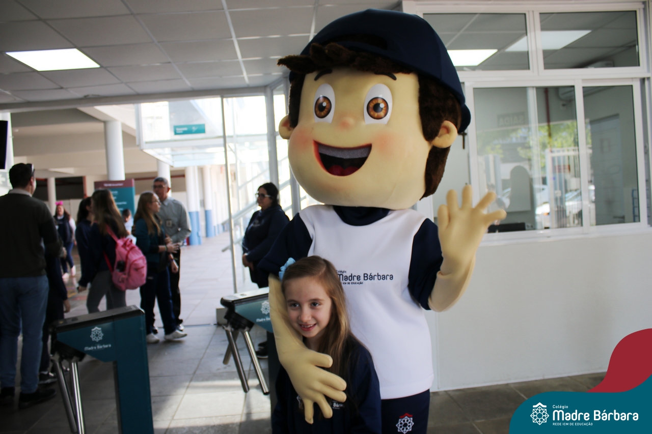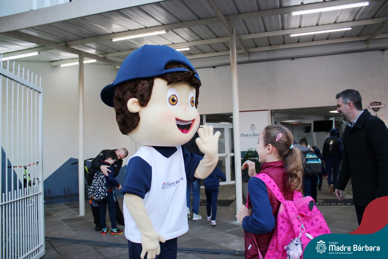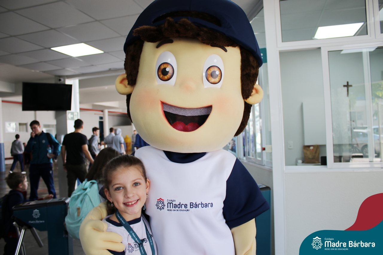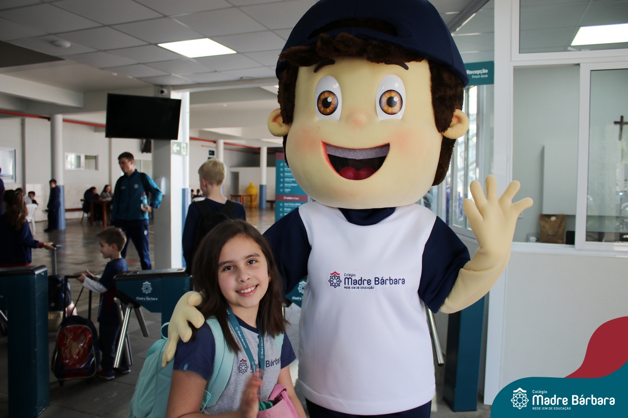 A segunda-feira (31.07) foi dia de retorno às aulas no Colégio Madre Bárbara – Rede ICM. Os estudantes foram recepcionados pelo novo Mascote, que a partir de agora, estará presente nos eventos e atividades da instituição, animando e divertindo os estudantes e famílias. O Mascote, ainda não tem nome! Em breve, será lançado um desafio com com a comunidade escolar para um processo de seleção com sugestões de nomes/significados para ele. Bem-vindo, Mascote! Com certeza serás muito bem acolhido pela Família Madre Bárbara.