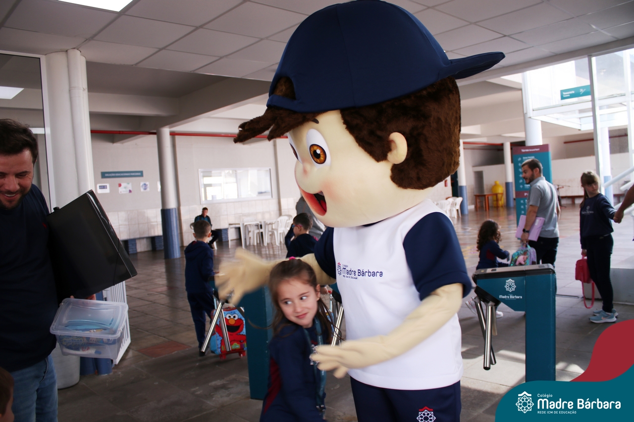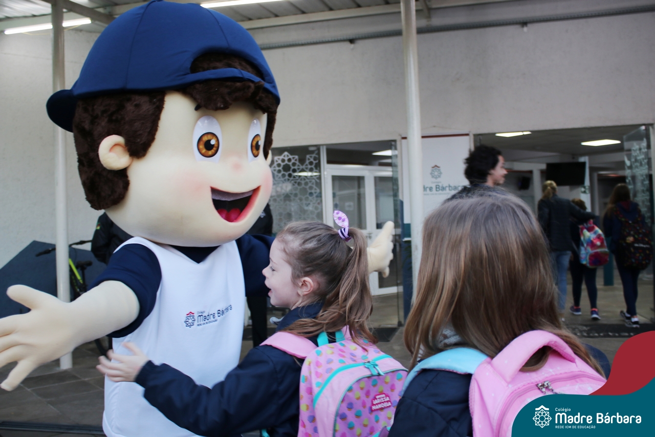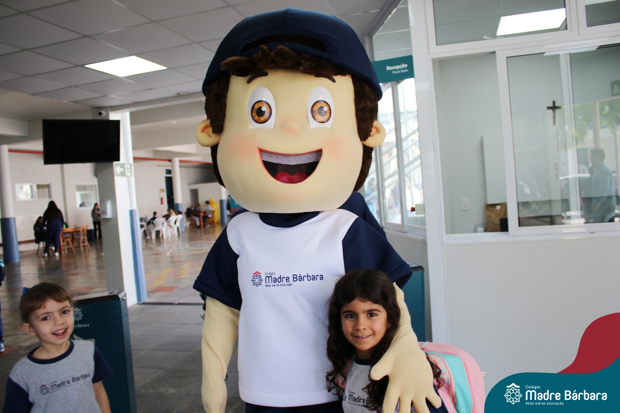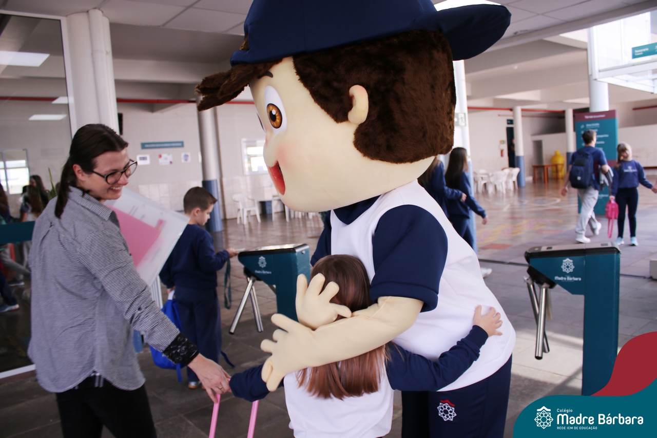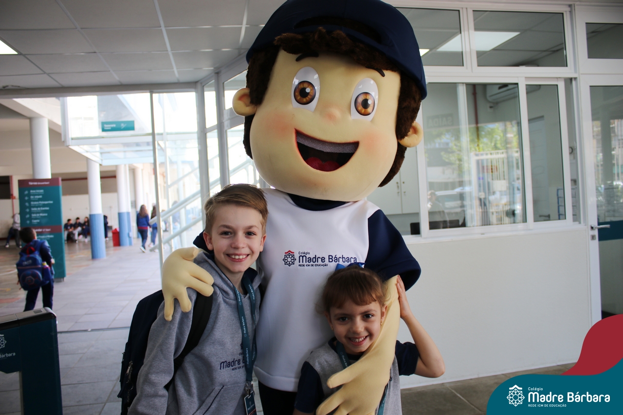 A segunda-feira (31.07) foi dia de retorno às aulas no Colégio Madre Bárbara – Rede ICM. Os estudantes foram recepcionados pelo novo Mascote, que a partir de agora, estará presente nos eventos e atividades da instituição, animando e divertindo os estudantes e famílias. O Mascote, ainda não tem nome! Em breve, será lançado um desafio com com a comunidade escolar para um processo de seleção com sugestões de nomes/significados para ele. Bem-vindo, Mascote! Com certeza serás muito bem acolhido pela Família Madre Bárbara.