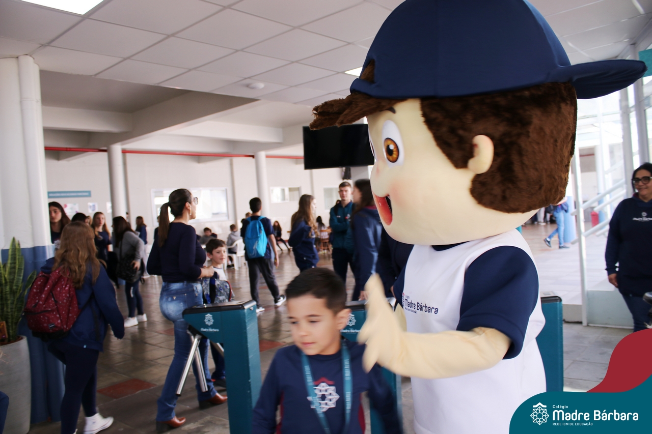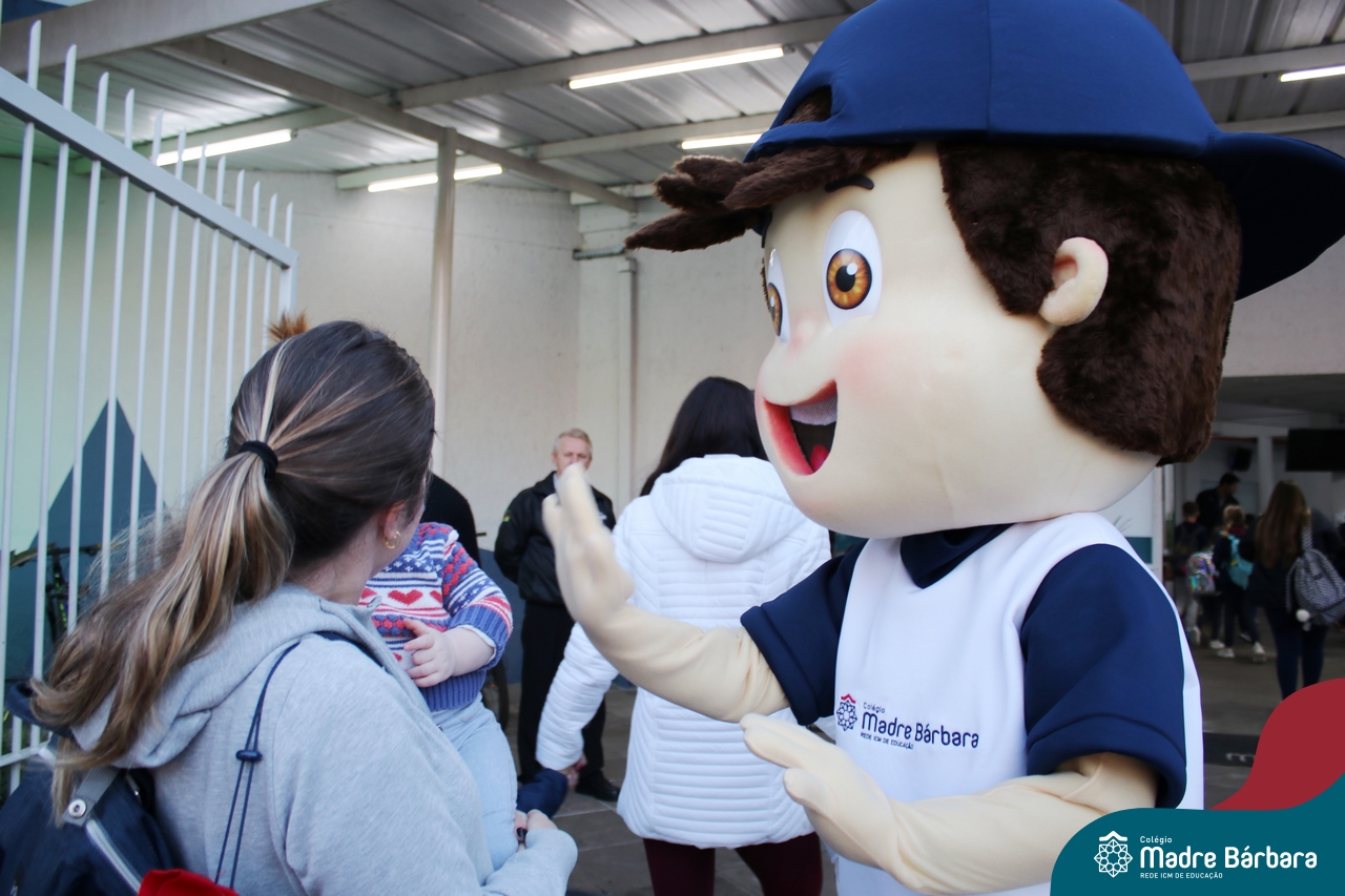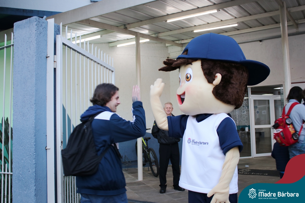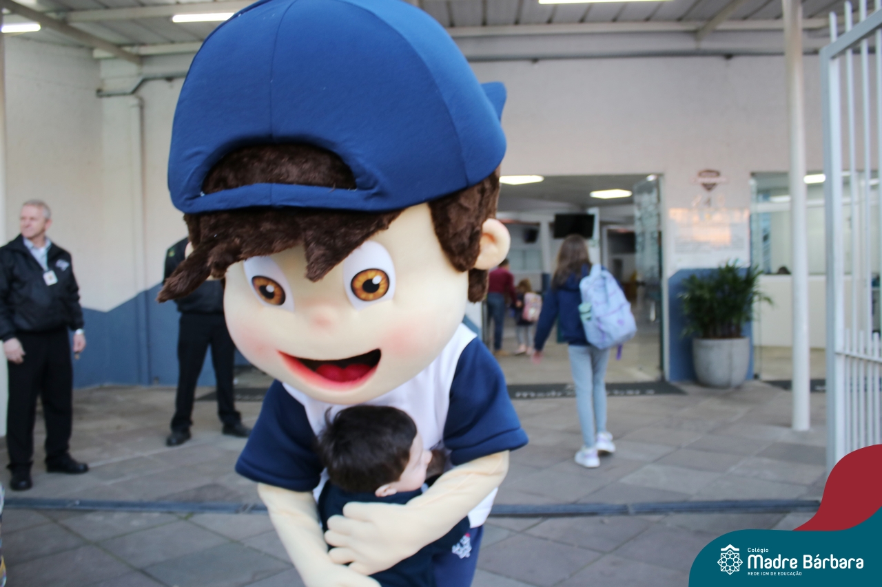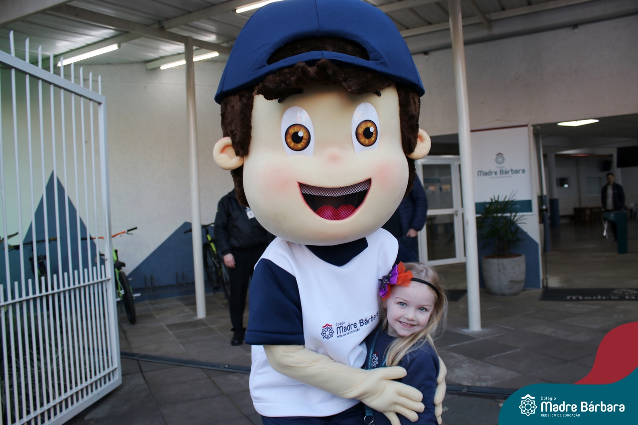 A segunda-feira (31.07) foi dia de retorno às aulas no Colégio Madre Bárbara – Rede ICM. Os estudantes foram recepcionados pelo novo Mascote, que a partir de agora, estará presente nos eventos e atividades da instituição, animando e divertindo os estudantes e famílias. O Mascote, ainda não tem nome! Em breve, será lançado um desafio com com a comunidade escolar para um processo de seleção com sugestões de nomes/significados para ele. Bem-vindo, Mascote! Com certeza serás muito bem acolhido pela Família Madre Bárbara.