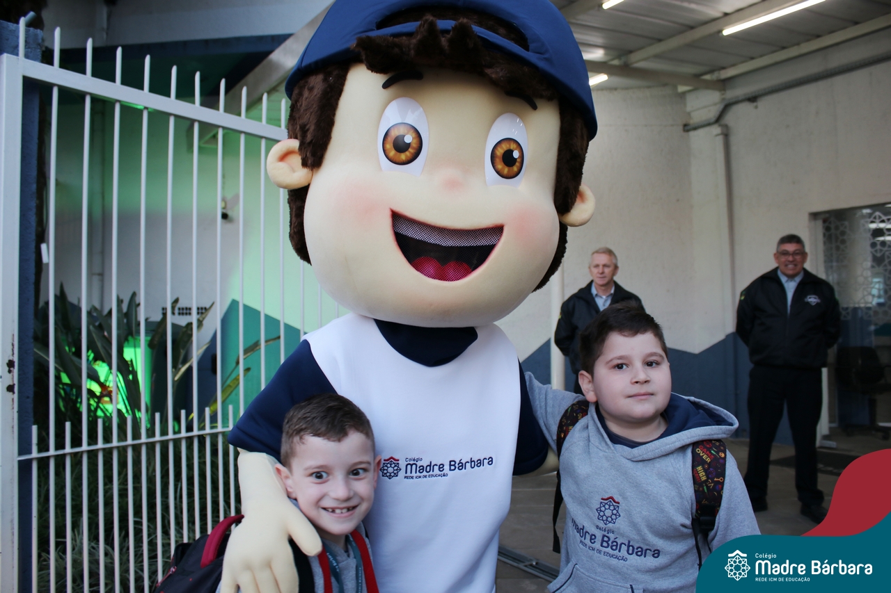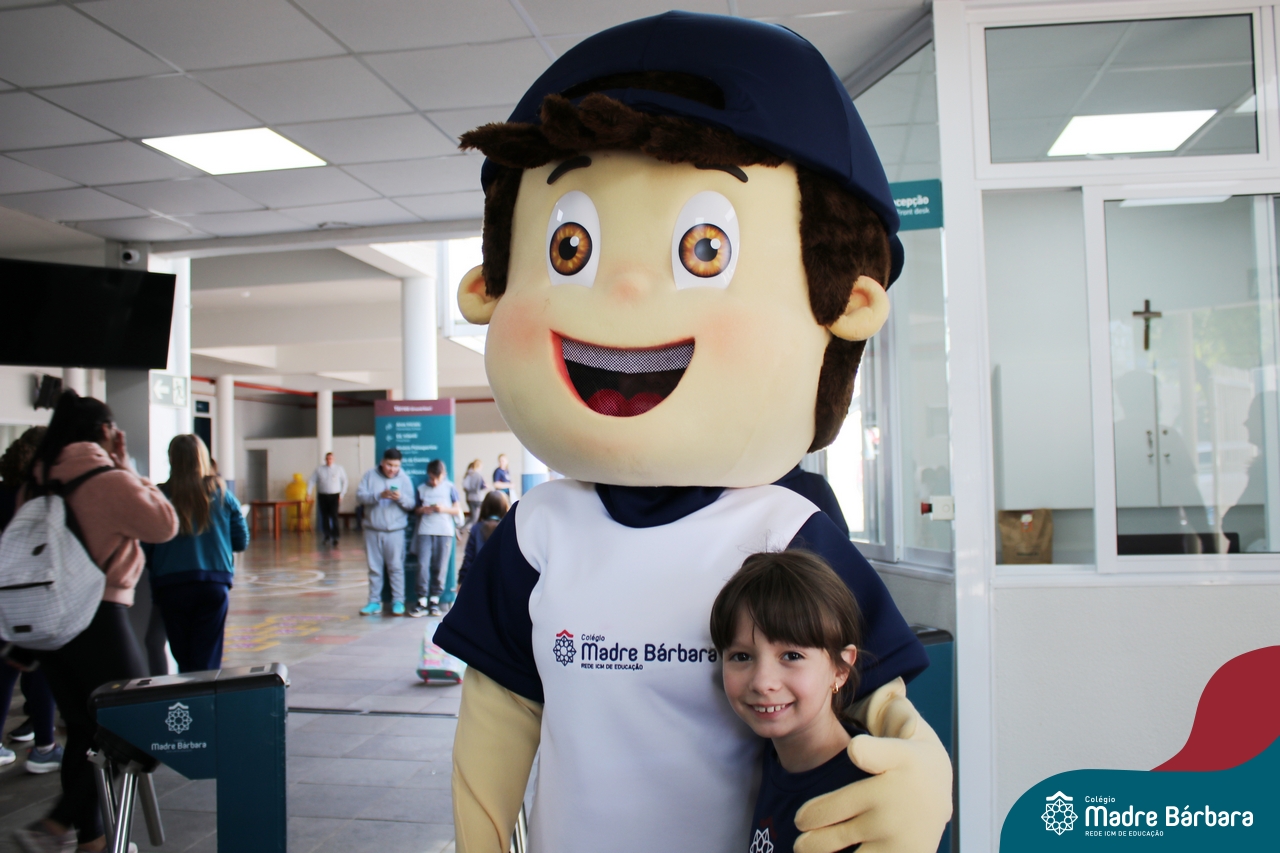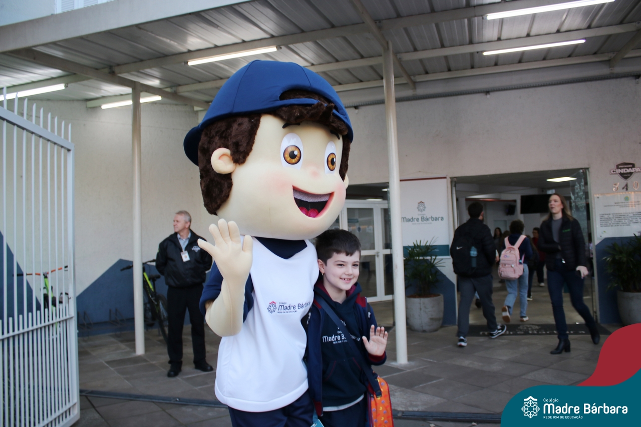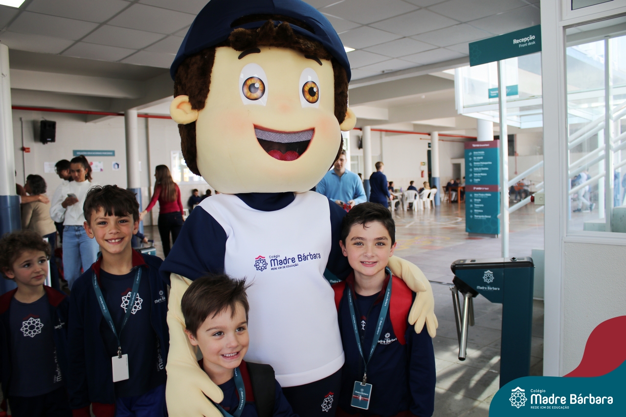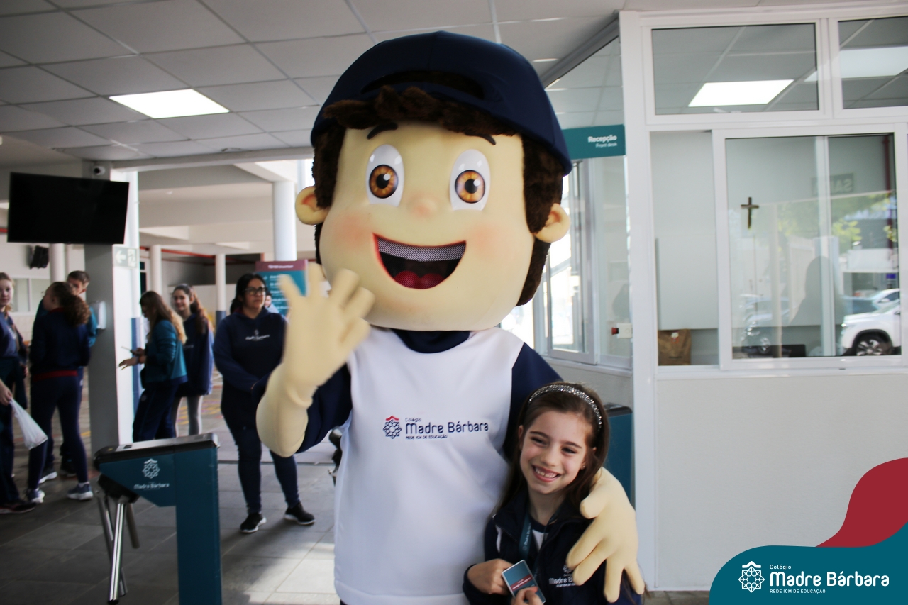 A segunda-feira (31.07) foi dia de retorno às aulas no Colégio Madre Bárbara – Rede ICM. Os estudantes foram recepcionados pelo novo Mascote, que a partir de agora, estará presente nos eventos e atividades da instituição, animando e divertindo os estudantes e famílias. O Mascote, ainda não tem nome! Em breve, será lançado um desafio com com a comunidade escolar para um processo de seleção com sugestões de nomes/significados para ele. Bem-vindo, Mascote! Com certeza serás muito bem acolhido pela Família Madre Bárbara.