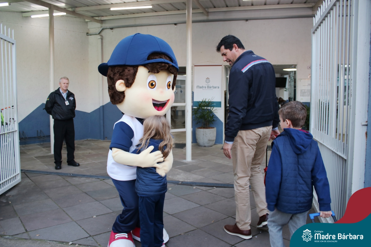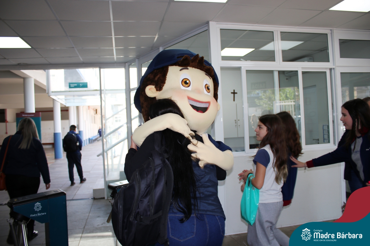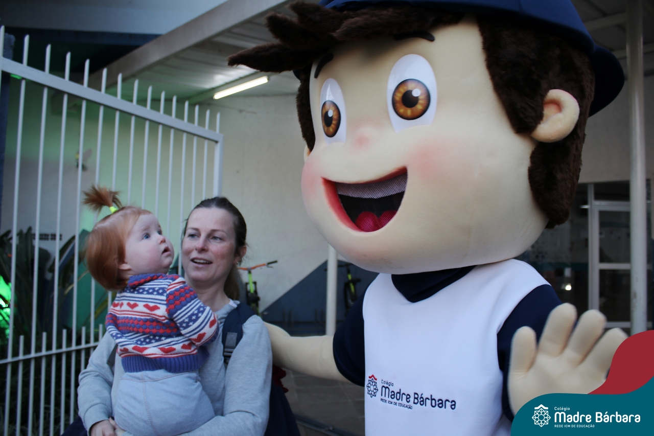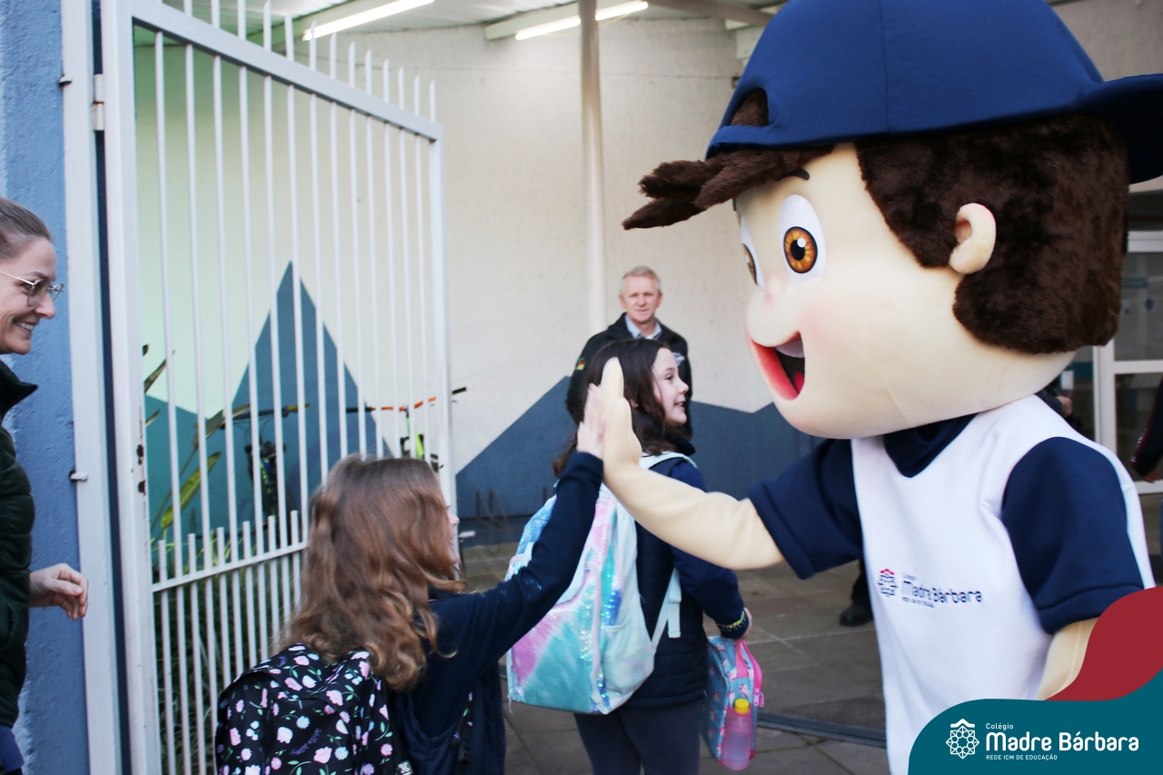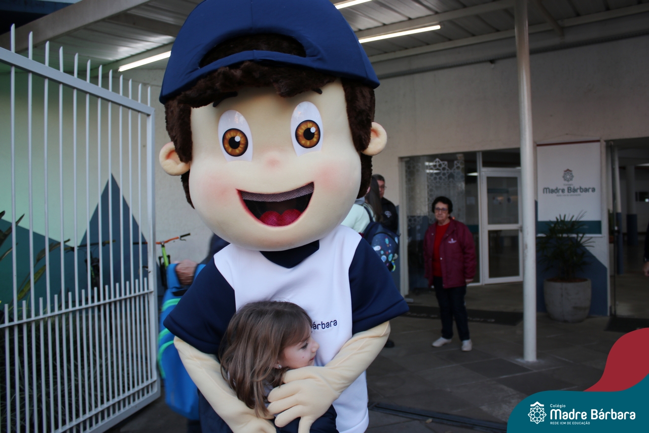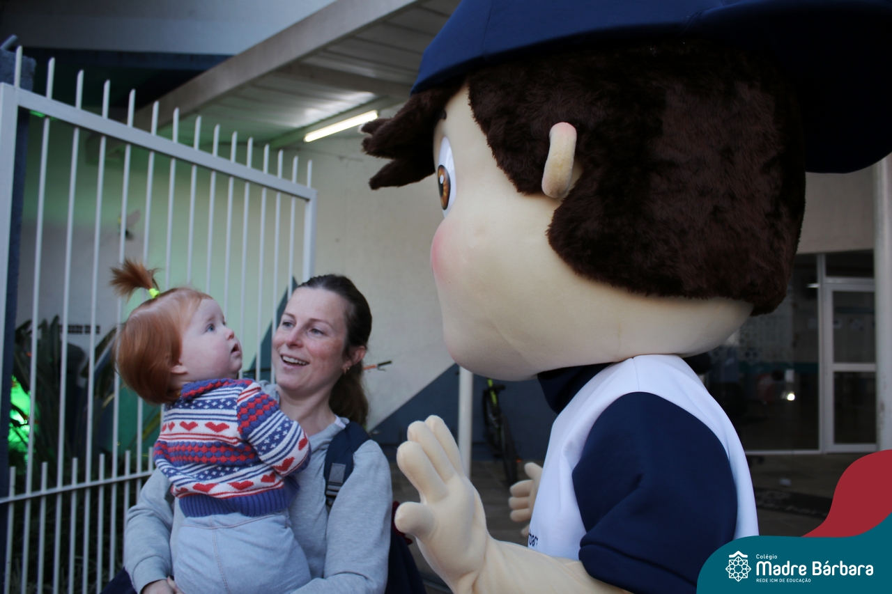 A segunda-feira (31.07) foi dia de retorno às aulas no Colégio Madre Bárbara – Rede ICM. Os estudantes foram recepcionados pelo novo Mascote, que a partir de agora, estará presente nos eventos e atividades da instituição, animando e divertindo os estudantes e famílias. O Mascote, ainda não tem nome! Em breve, será lançado um desafio com com a comunidade escolar para um processo de seleção com sugestões de nomes/significados para ele. Bem-vindo, Mascote! Com certeza serás muito bem acolhido pela Família Madre Bárbara.