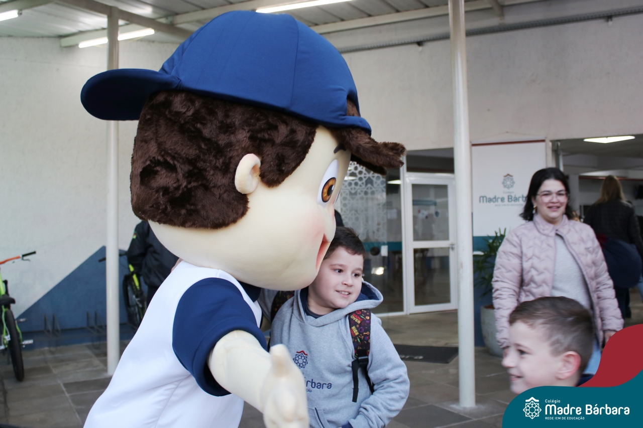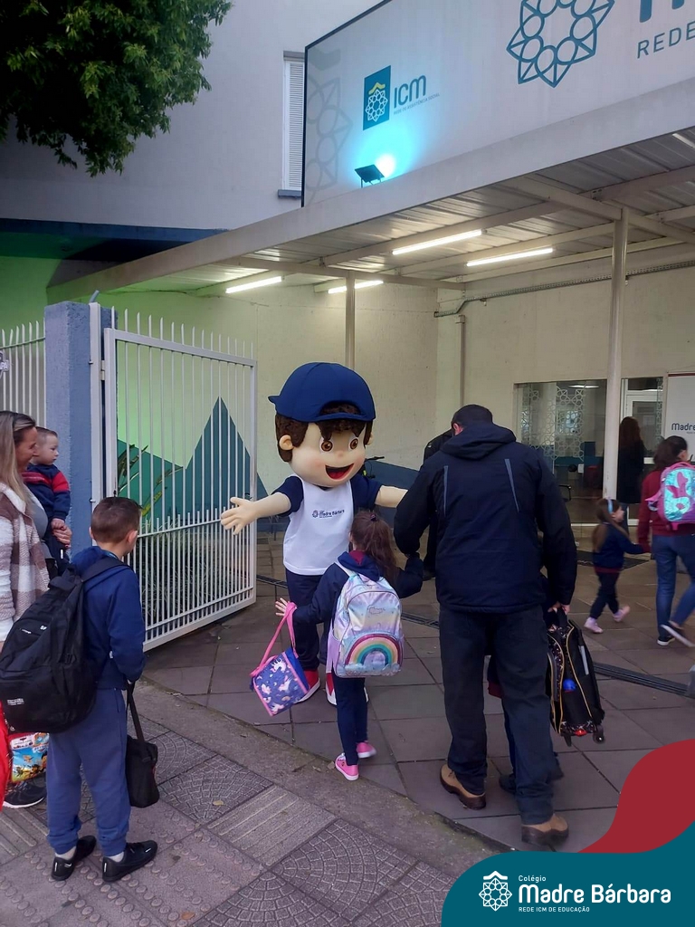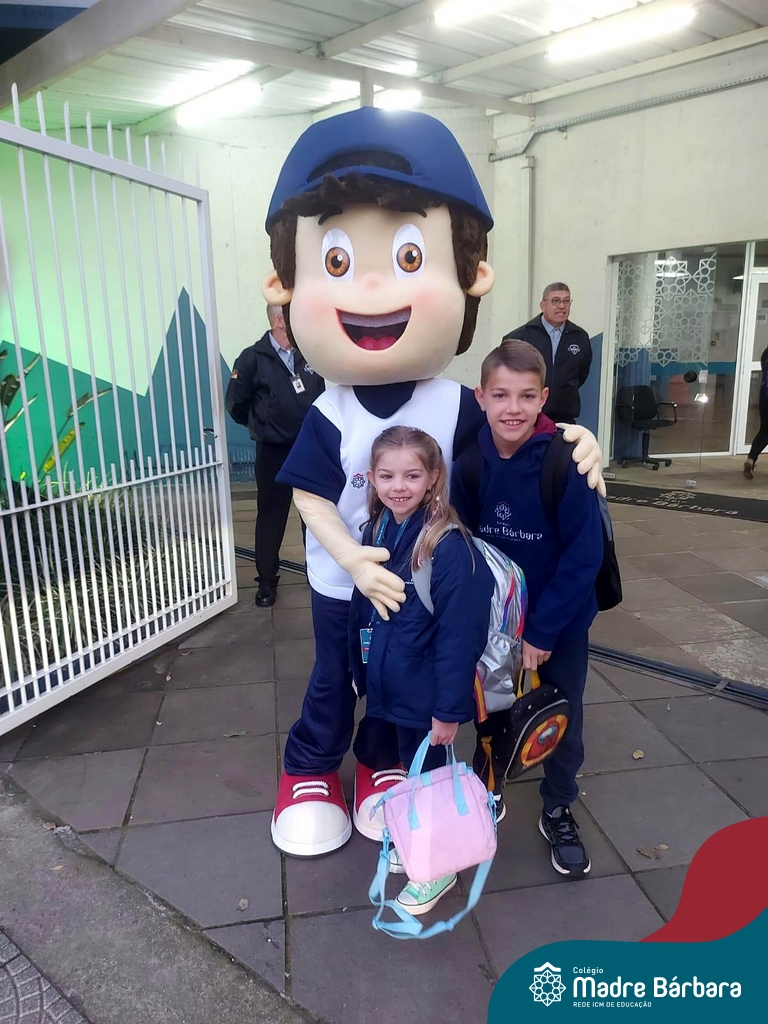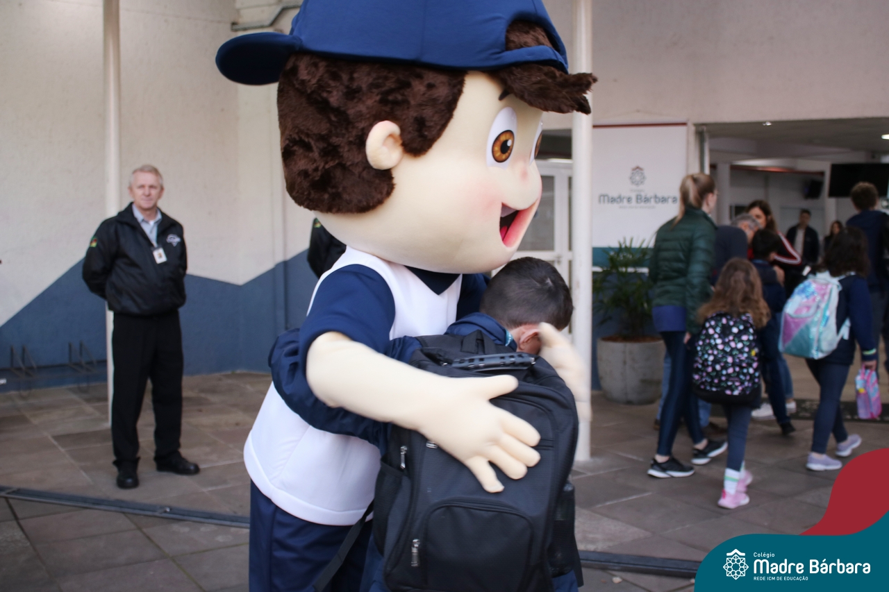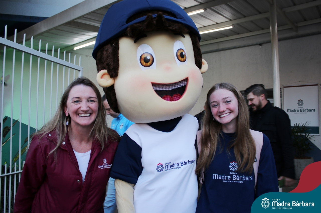 A segunda-feira (31.07) foi dia de retorno às aulas no Colégio Madre Bárbara – Rede ICM. Os estudantes foram recepcionados pelo novo Mascote, que a partir de agora, estará presente nos eventos e atividades da instituição, animando e divertindo os estudantes e famílias. O Mascote, ainda não tem nome! Em breve, será lançado um desafio com com a comunidade escolar para um processo de seleção com sugestões de nomes/significados para ele. Bem-vindo, Mascote! Com certeza serás muito bem acolhido pela Família Madre Bárbara.