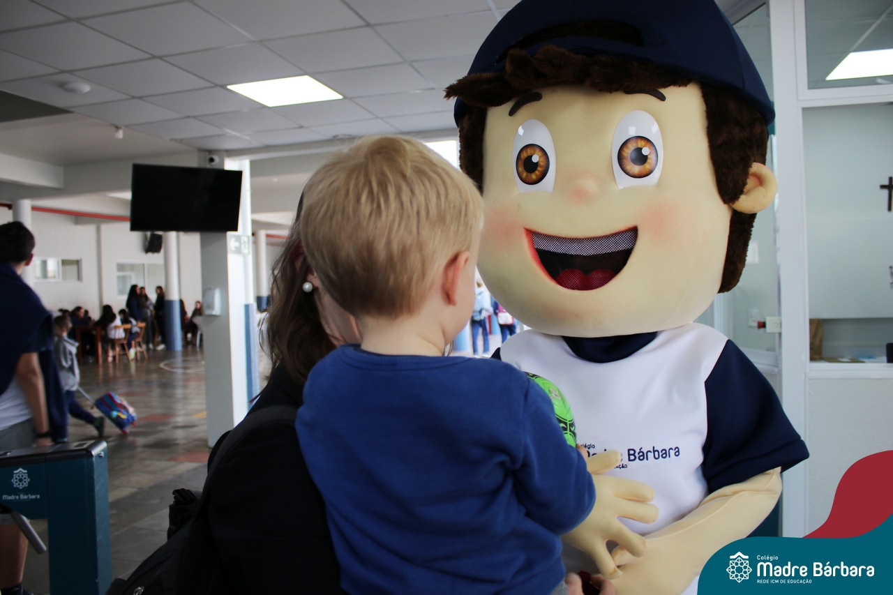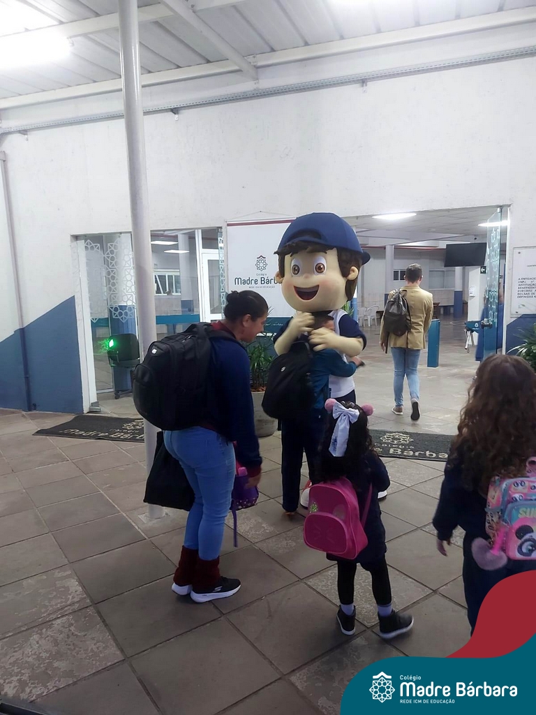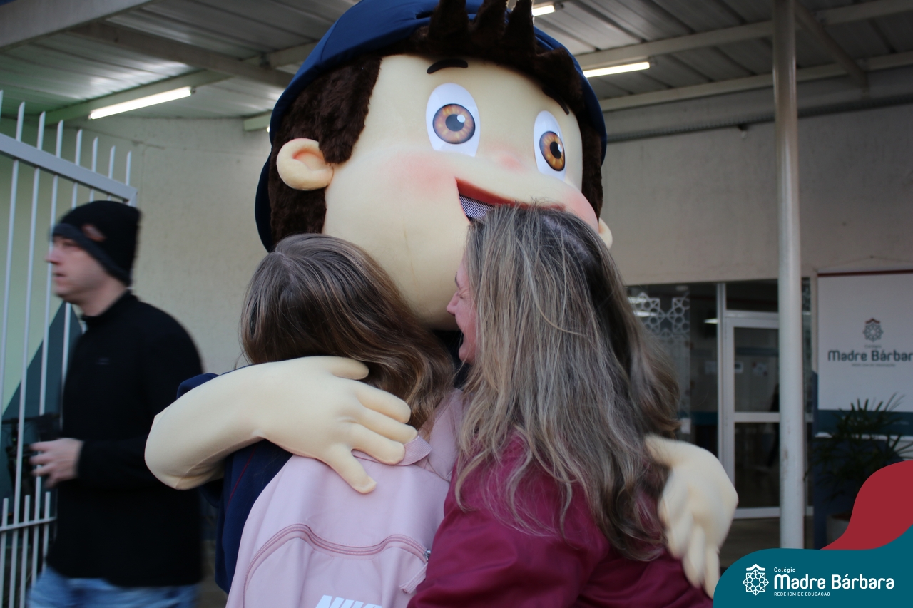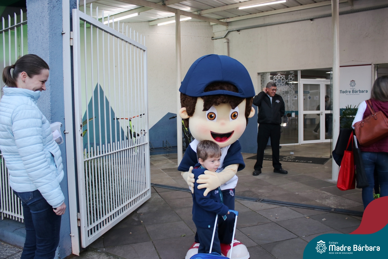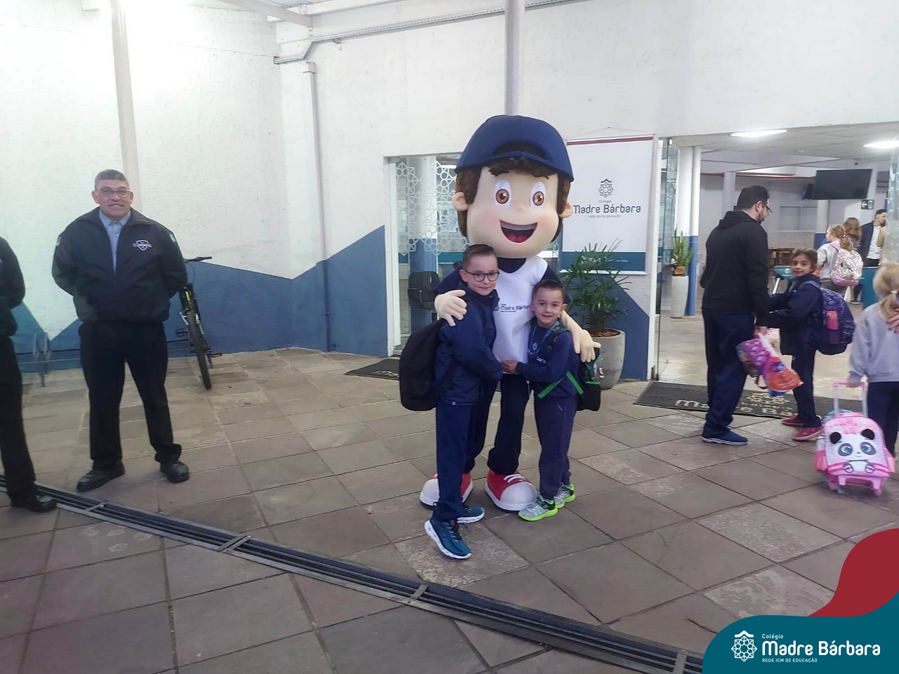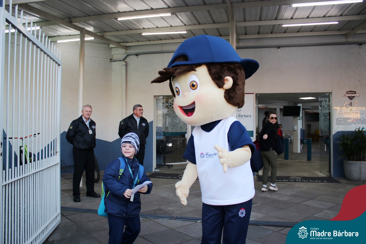 A segunda-feira (31.07) foi dia de retorno às aulas no Colégio Madre Bárbara – Rede ICM. Os estudantes foram recepcionados pelo novo Mascote, que a partir de agora, estará presente nos eventos e atividades da instituição, animando e divertindo os estudantes e famílias. O Mascote, ainda não tem nome! Em breve, será lançado um desafio com com a comunidade escolar para um processo de seleção com sugestões de nomes/significados para ele. Bem-vindo, Mascote! Com certeza serás muito bem acolhido pela Família Madre Bárbara.