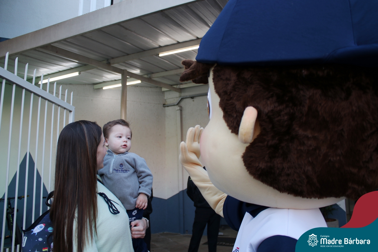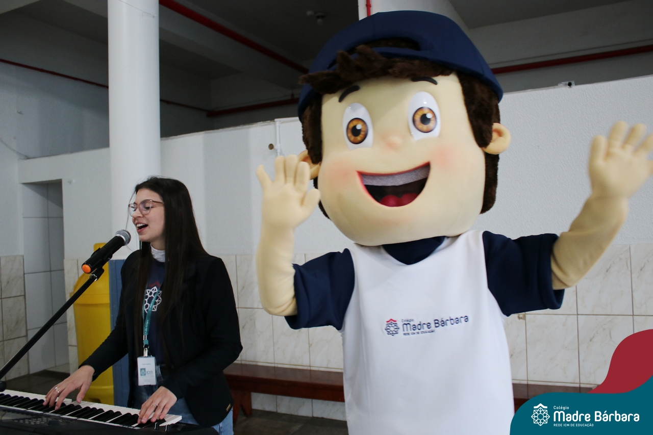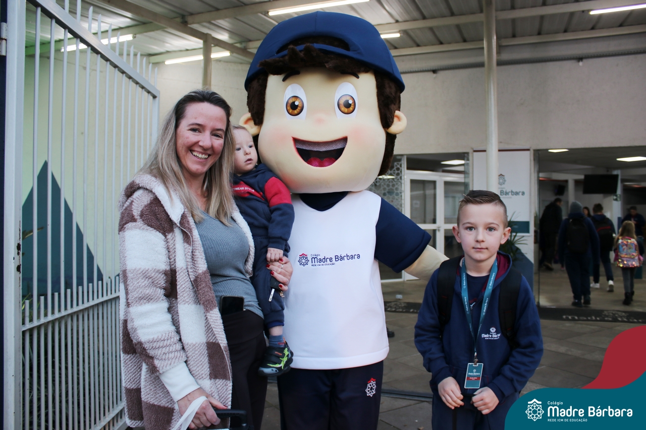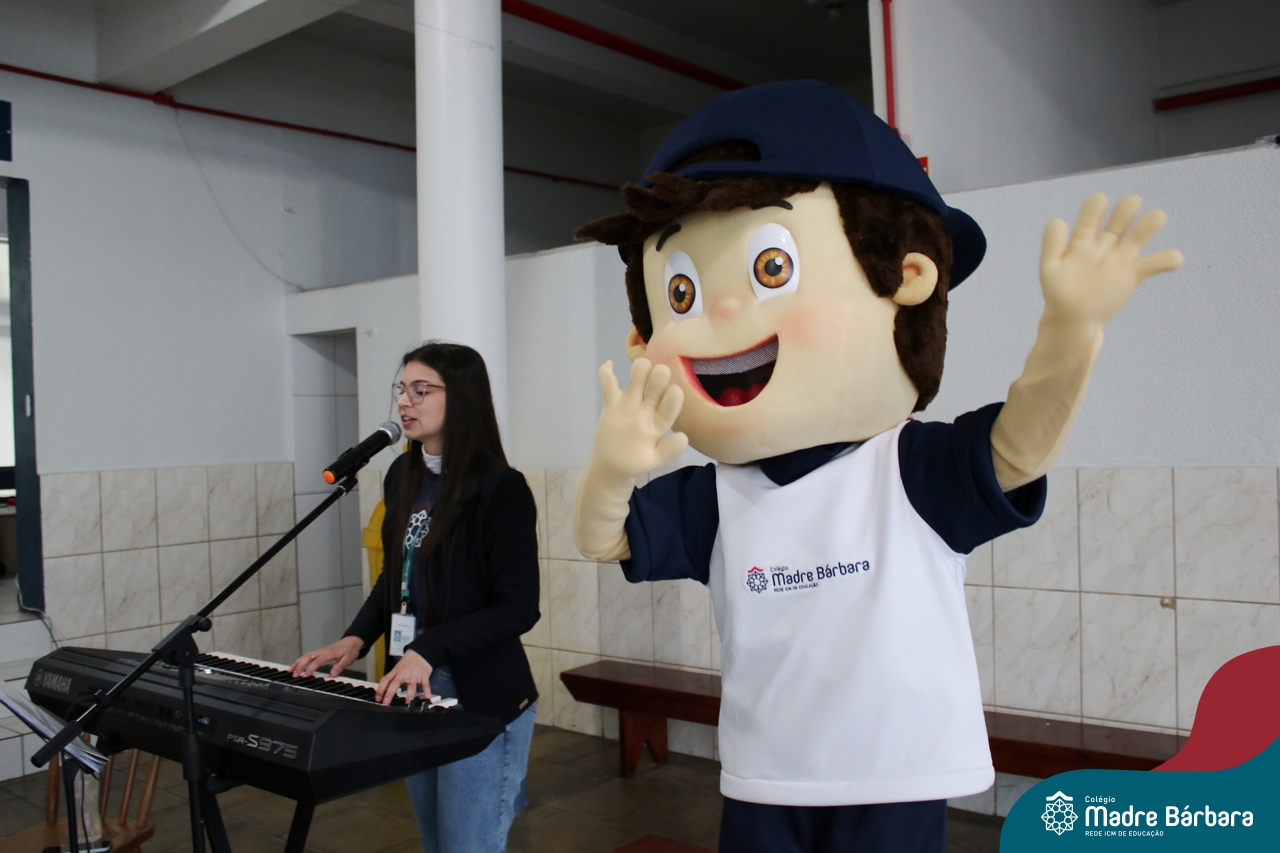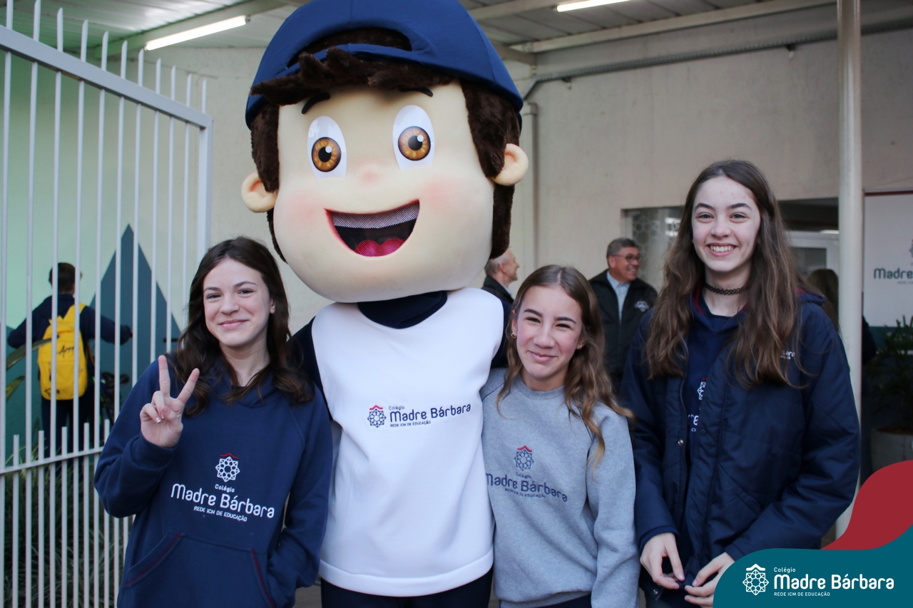 A segunda-feira (31.07) foi dia de retorno às aulas no Colégio Madre Bárbara – Rede ICM. Os estudantes foram recepcionados pelo novo Mascote, que a partir de agora, estará presente nos eventos e atividades da instituição, animando e divertindo os estudantes e famílias. O Mascote, ainda não tem nome! Em breve, será lançado um desafio com com a comunidade escolar para um processo de seleção com sugestões de nomes/significados para ele. Bem-vindo, Mascote! Com certeza serás muito bem acolhido pela Família Madre Bárbara.