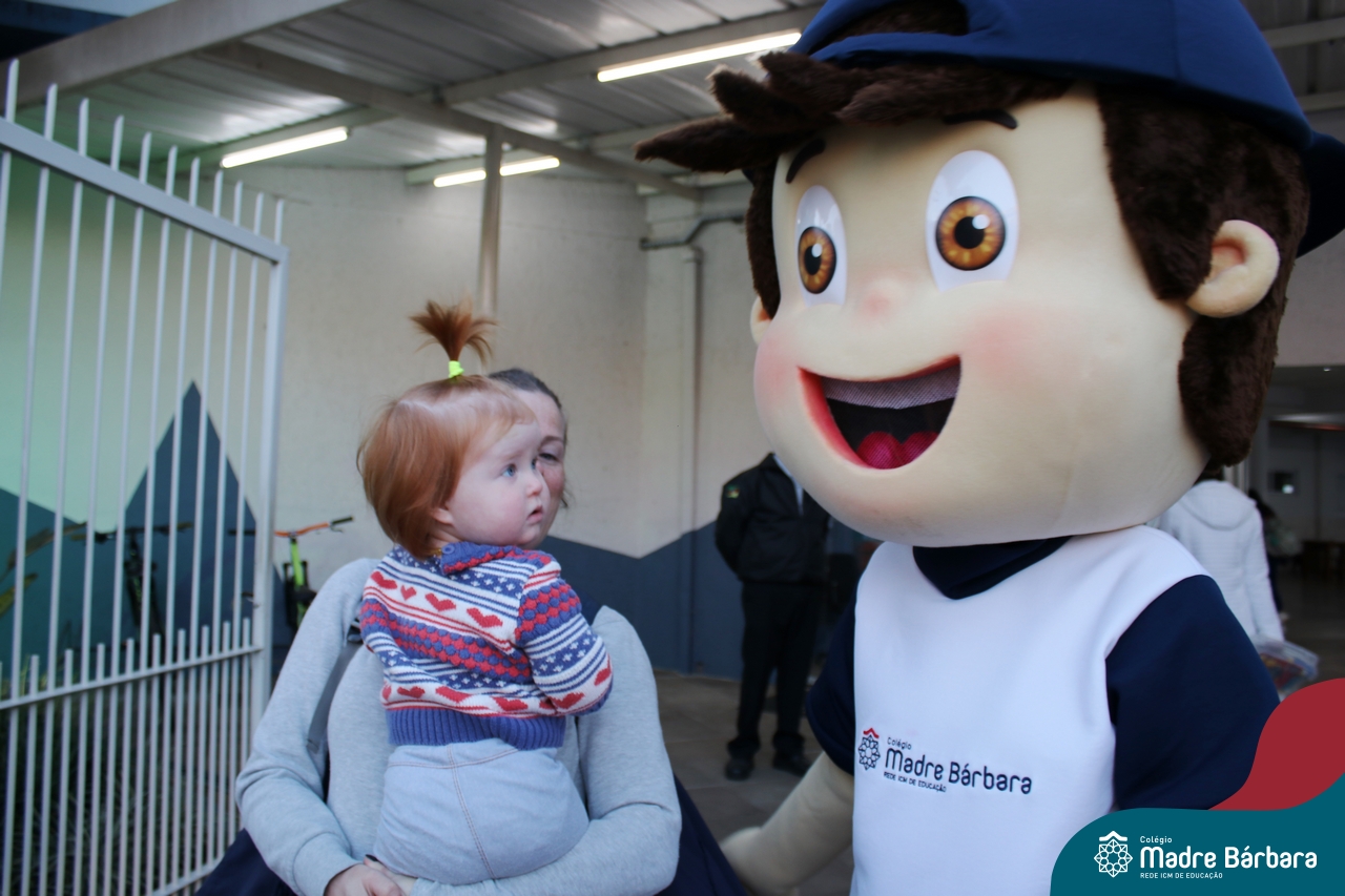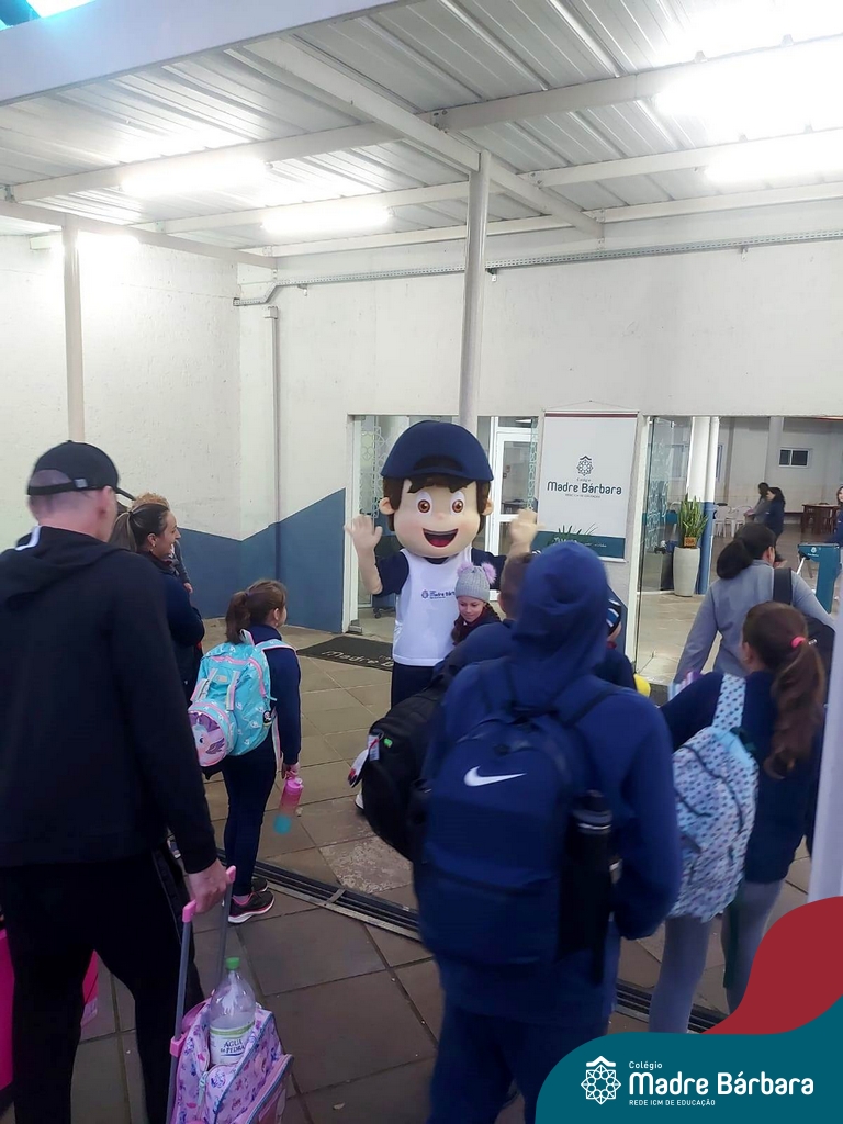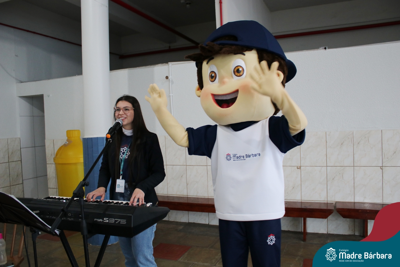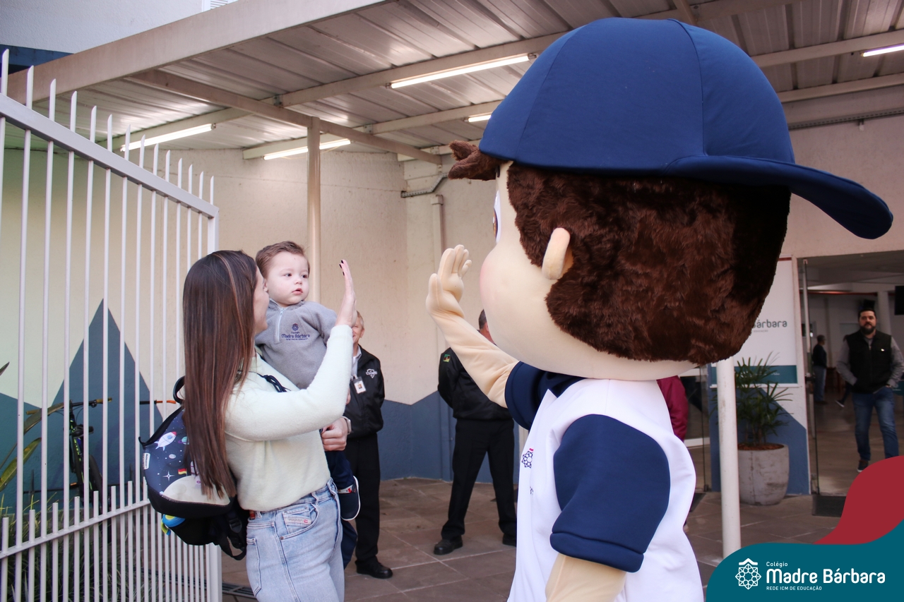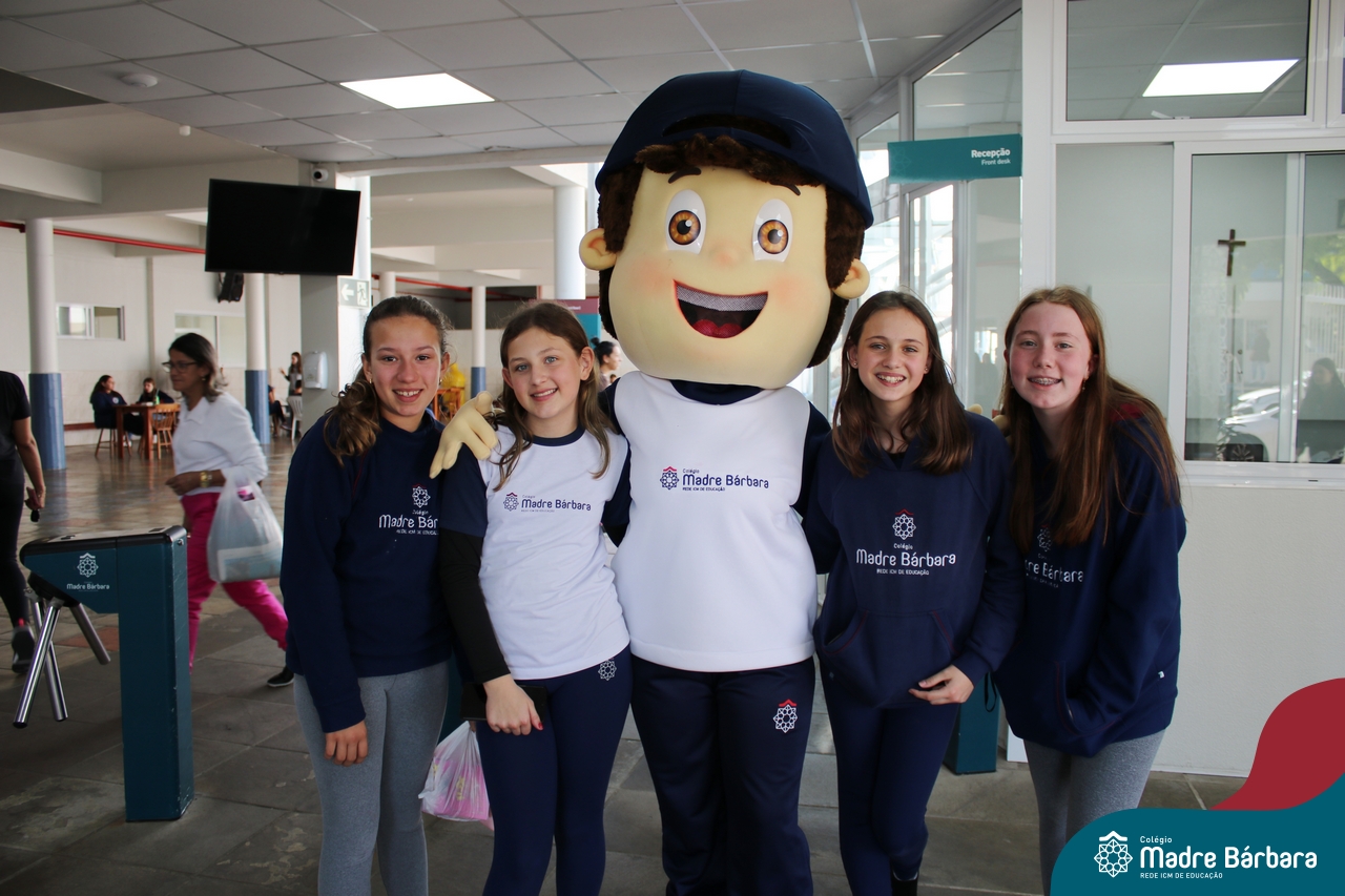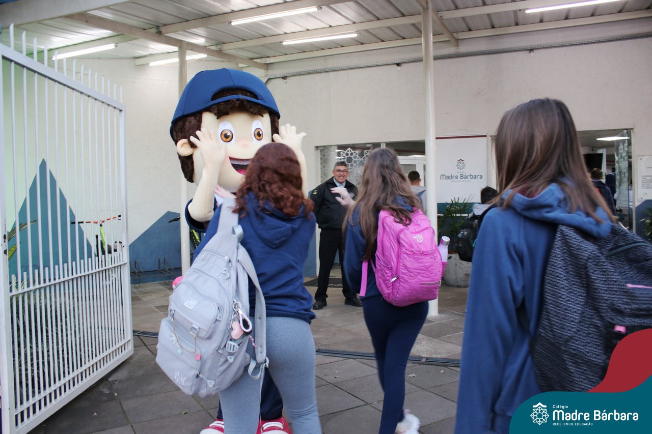 A segunda-feira (31.07) foi dia de retorno às aulas no Colégio Madre Bárbara – Rede ICM. Os estudantes foram recepcionados pelo novo Mascote, que a partir de agora, estará presente nos eventos e atividades da instituição, animando e divertindo os estudantes e famílias. O Mascote, ainda não tem nome! Em breve, será lançado um desafio com com a comunidade escolar para um processo de seleção com sugestões de nomes/significados para ele. Bem-vindo, Mascote! Com certeza serás muito bem acolhido pela Família Madre Bárbara.