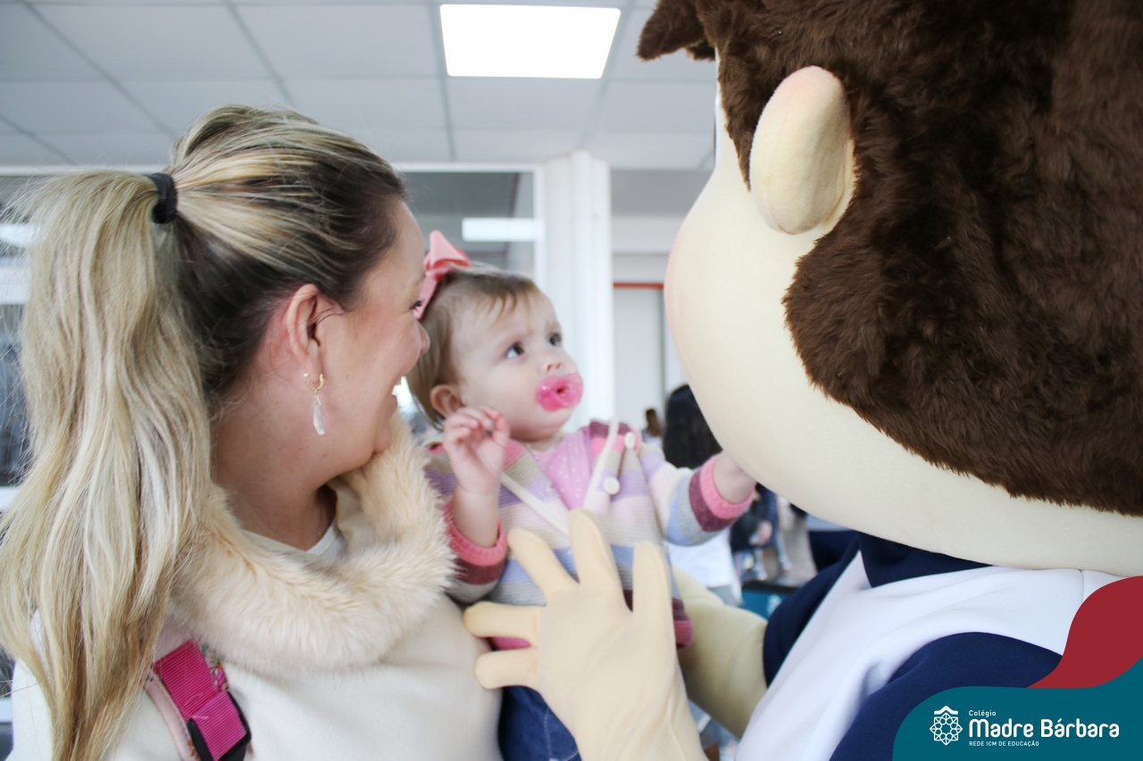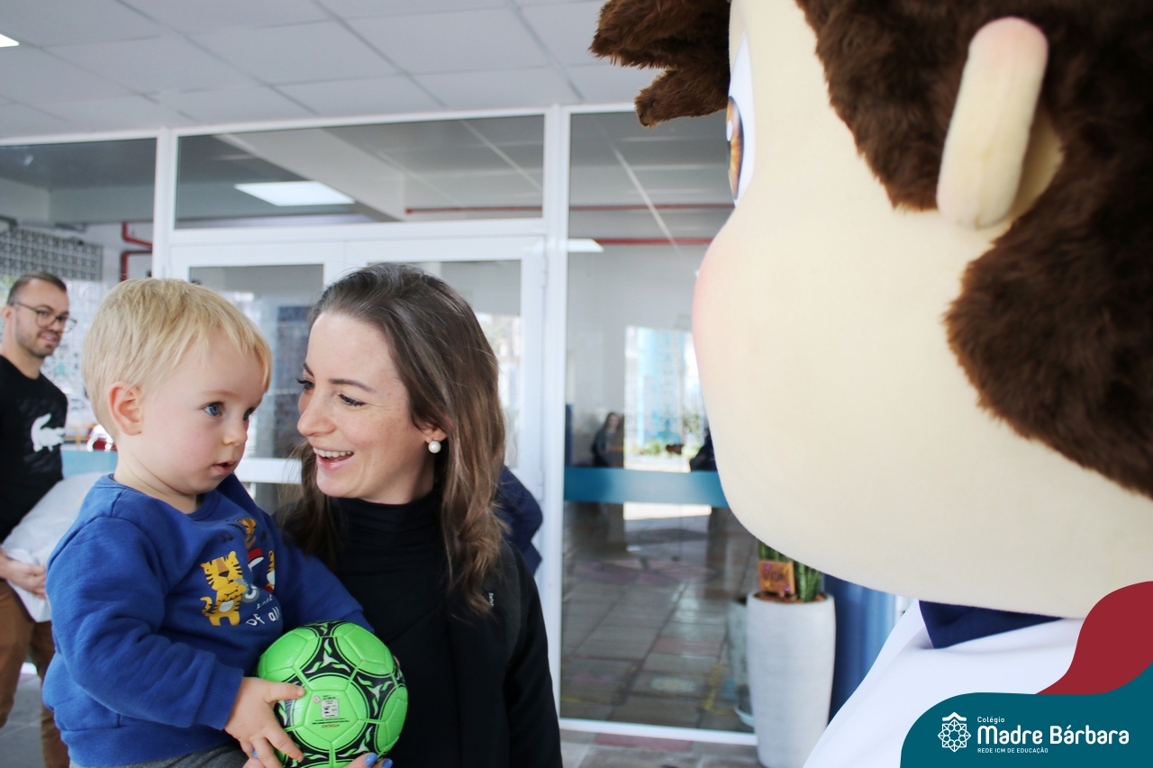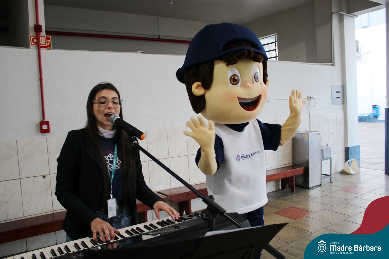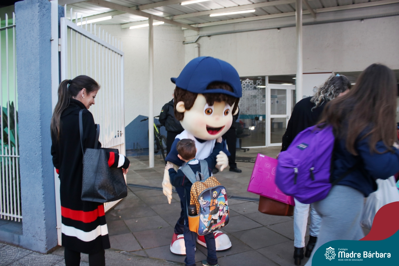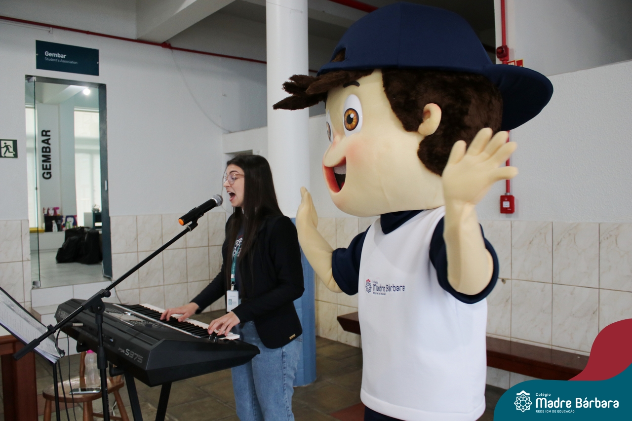A segunda-feira (31.07) foi dia de retorno às aulas no Colégio Madre Bárbara – Rede ICM. Os estudantes foram recepcionados pelo novo Mascote, que a partir de agora, estará presente nos eventos e atividades da instituição, animando e divertindo os estudantes e famílias. O Mascote, ainda não tem nome! Em breve, será lançado um desafio com com a comunidade escolar para um processo de seleção com sugestões de nomes/significados para ele. Bem-vindo, Mascote! Com certeza serás muito bem acolhido pela Família Madre Bárbara.