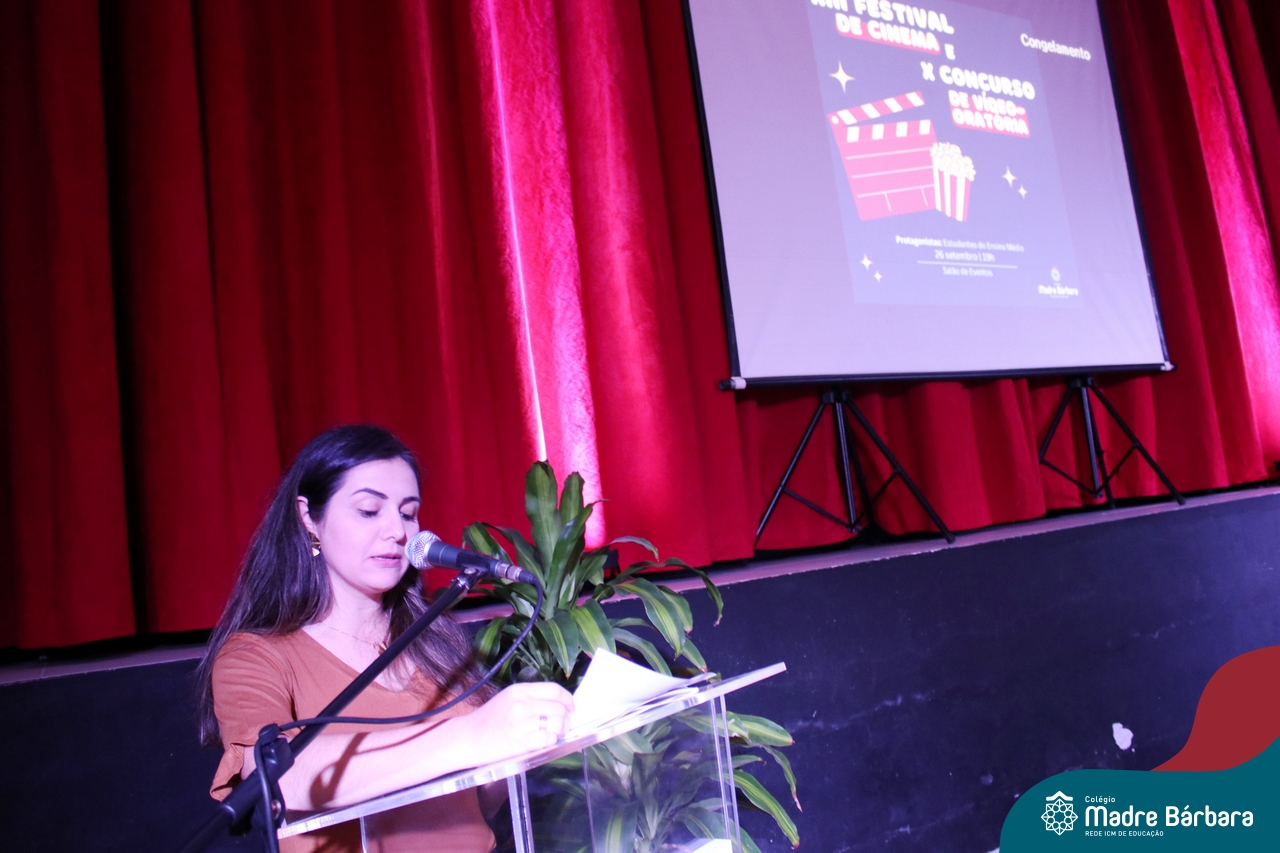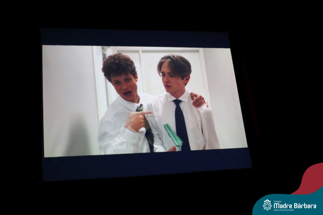 Foi noite de superestreias e entrega de troféus do Oscar. Na noite de terça-feira (26.09), aqueles que estiveram no lançamento dos nossos curtas já estão dando spoiler que as produções estavam demais! No evento, ocorreu o XIII Festival de Cinema com estudantes dos 2ºs anos, que apresentaram curtas com textos literários sobre “Comédias da vida real”. Na categoria 3ºs anos do Ensino Médio, os estudantes protagonizaram curtas em Língua Inglesa e Espanhola. Já os 1ºs anos participaram do Concurso de Vídeo-oratória com a temática “Casos e causos: histórias da vida adolescente”. As professoras responsáveis pelo evento são: Aline Konrath (Concurso de Vídeo-oratória), Beatriz Freire (Festival de Cinema em Línguas), Eliséte Laste (Festival de Cinema em Línguas) e Francieli Winck (Festival de Cinema).