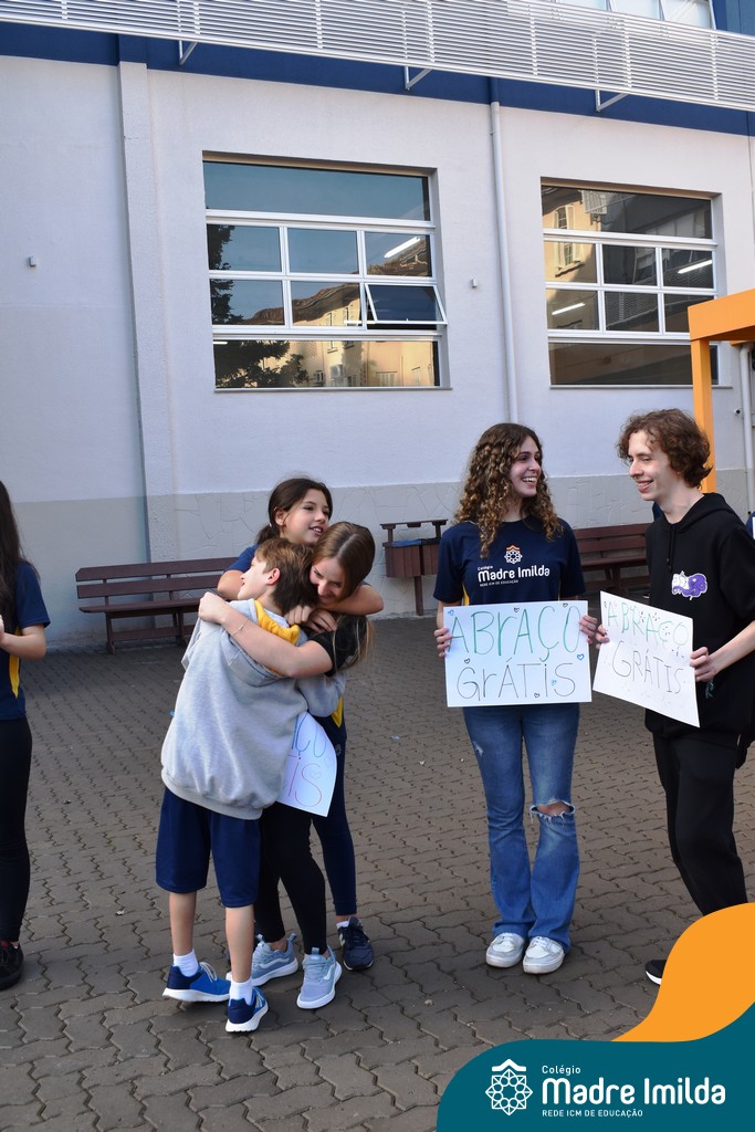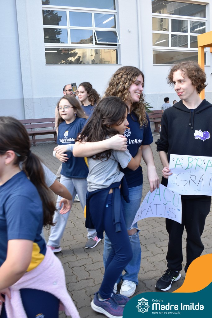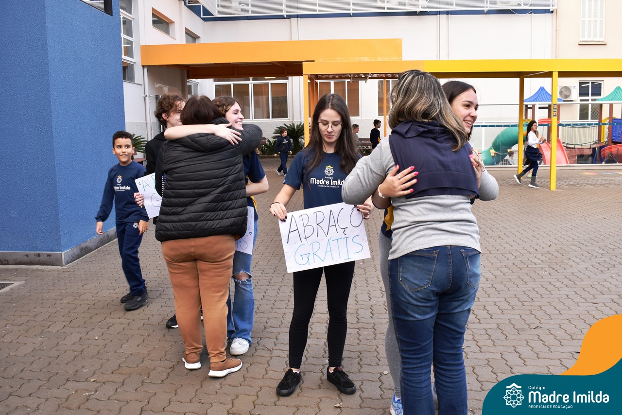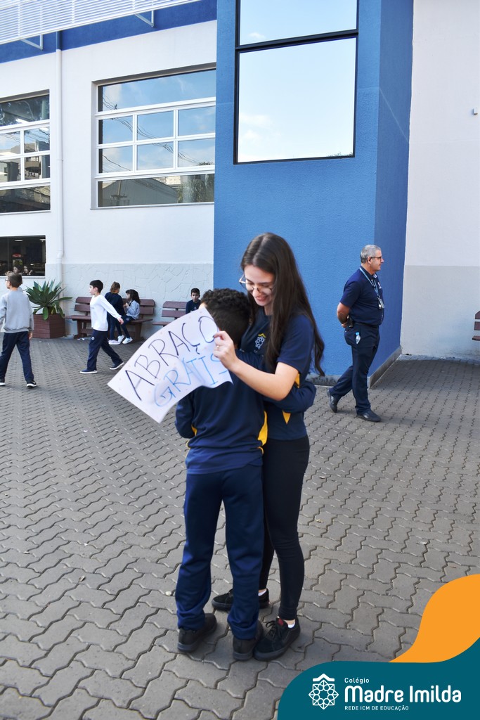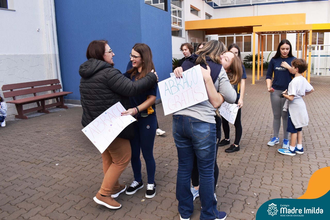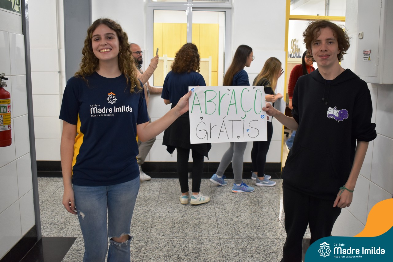 Na última ação promovida pelo programa de voluntariado, os alunos mostraram que um gesto simples pode fazer toda a diferença na vida das pessoas. No espírito do Dia do Abraço, eles decidiram espalhar amor e carinho de uma forma tão única quanto especial: distribuindo abraços grátis!